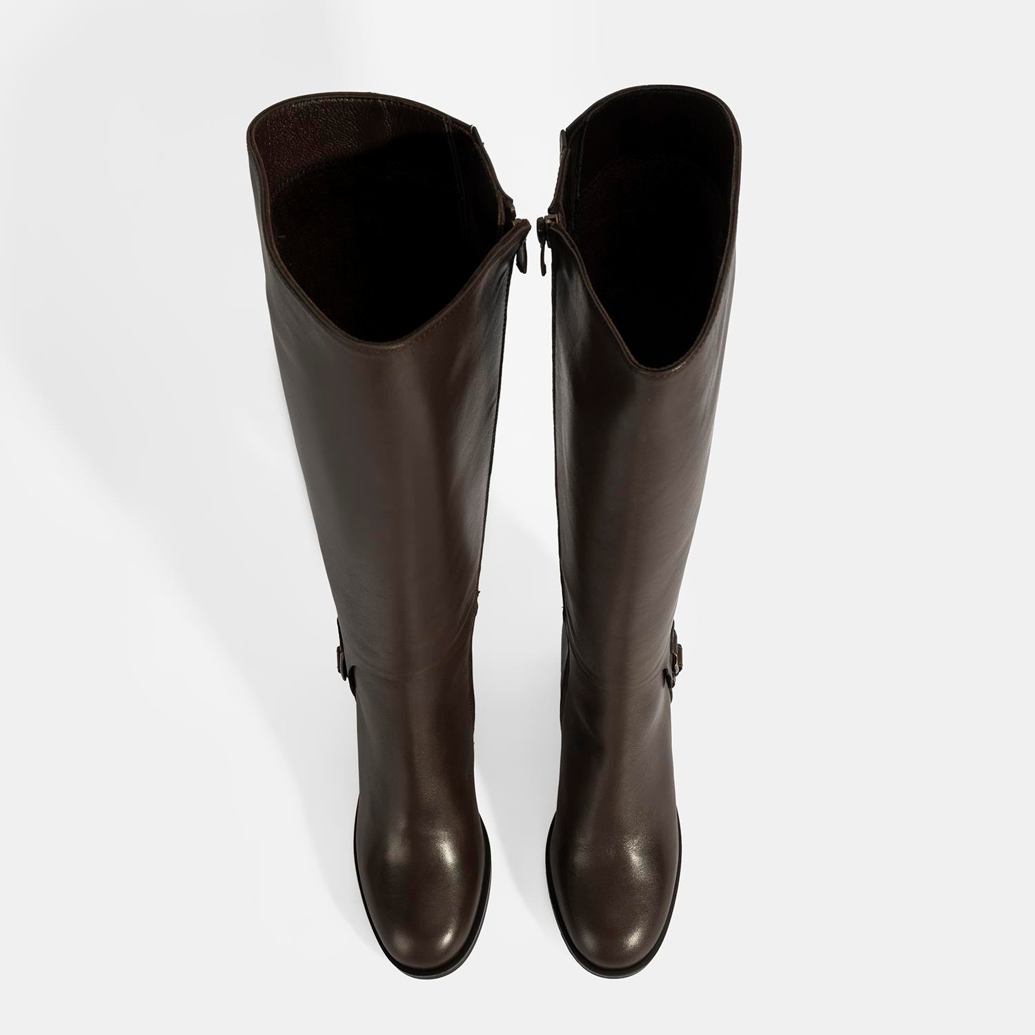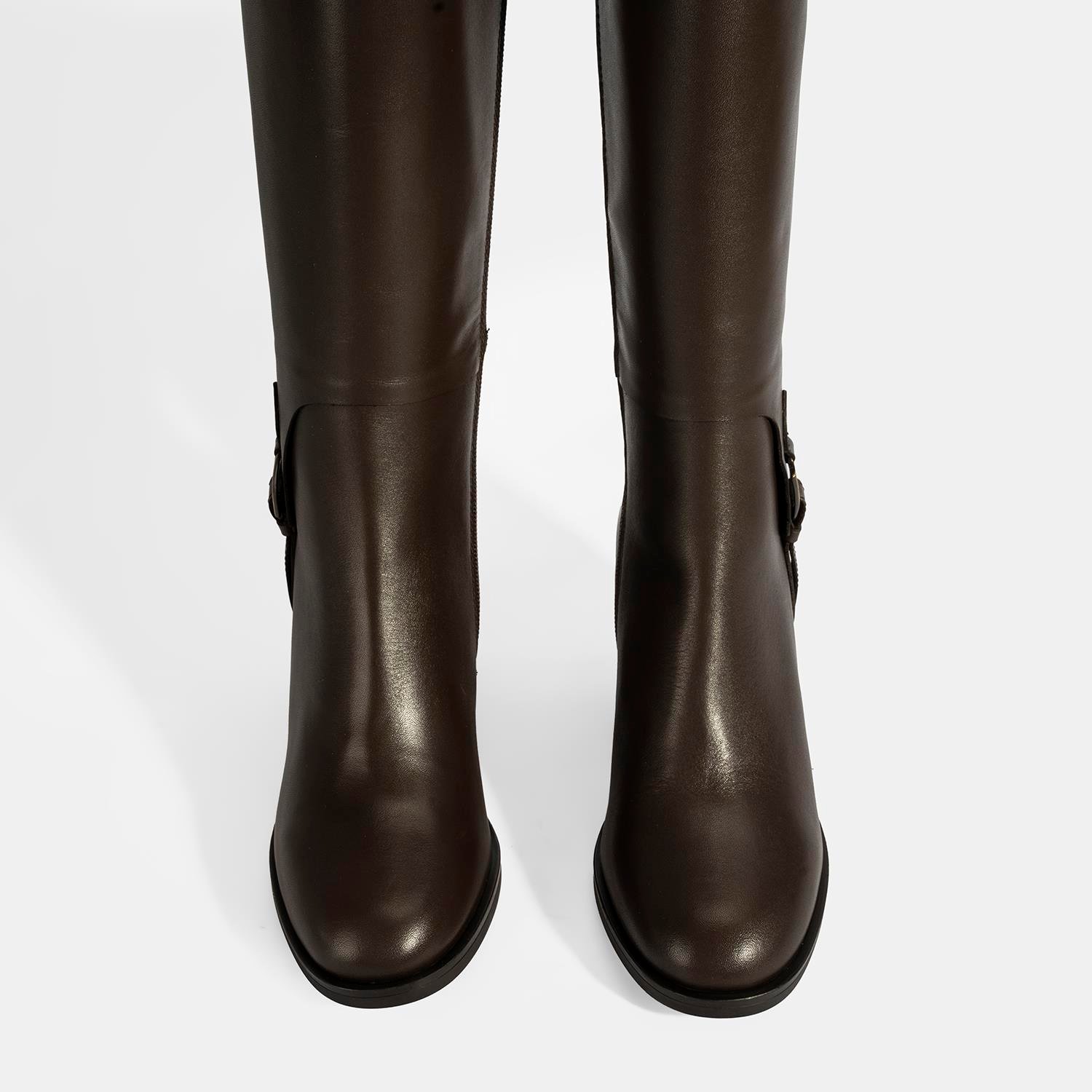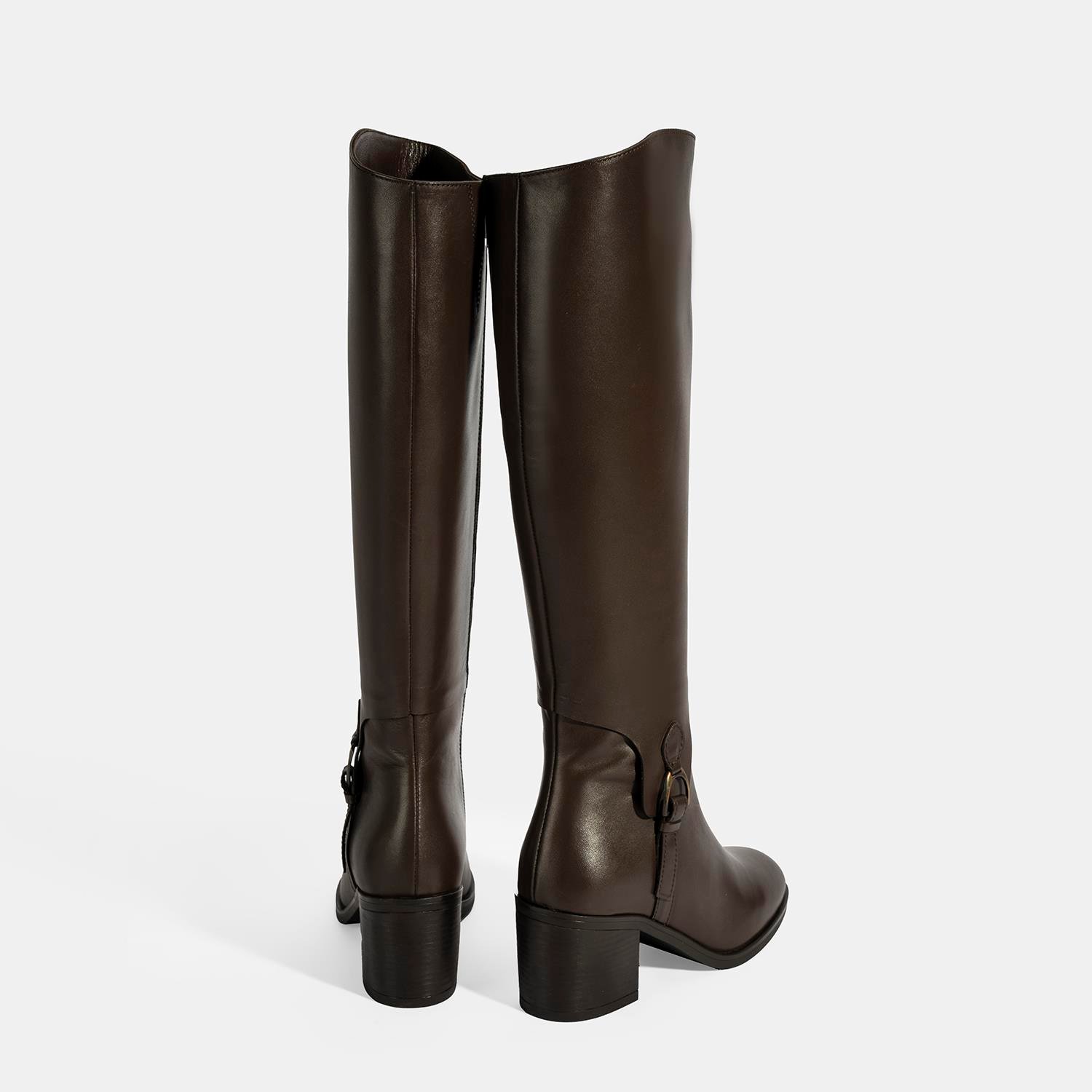 Kadın Kahve Kalın Topuklu Deri Çizme