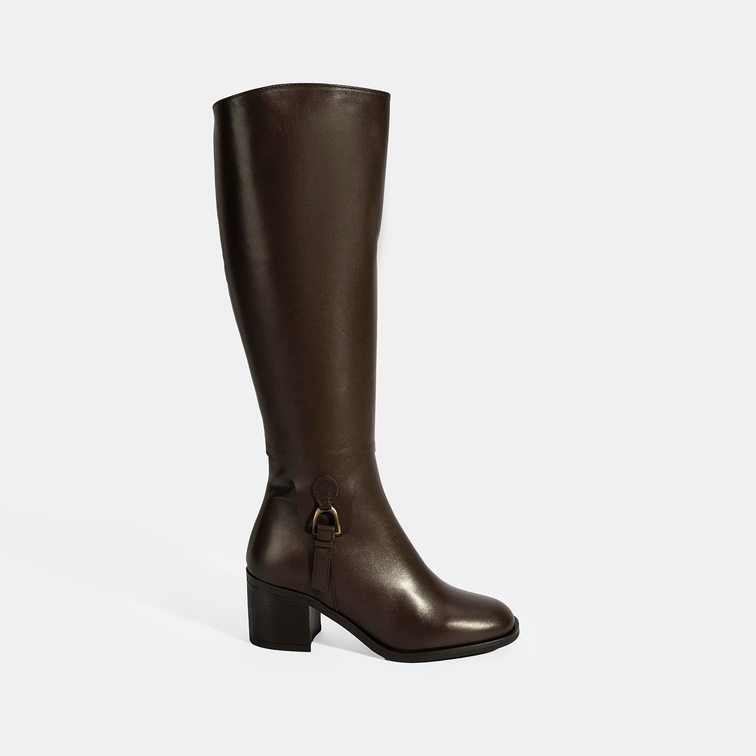%100 deri, deri mostra, Neolit tabanlı, metal aksesuar detaylı kadın çizme.