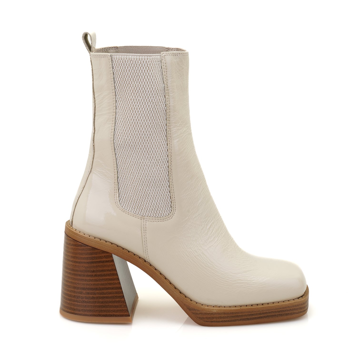%100 deri, deri iç tabanlı, tekstil iç astarlı, lastik detaylı, neolit tabanlı, platform topuklu kadın bot.