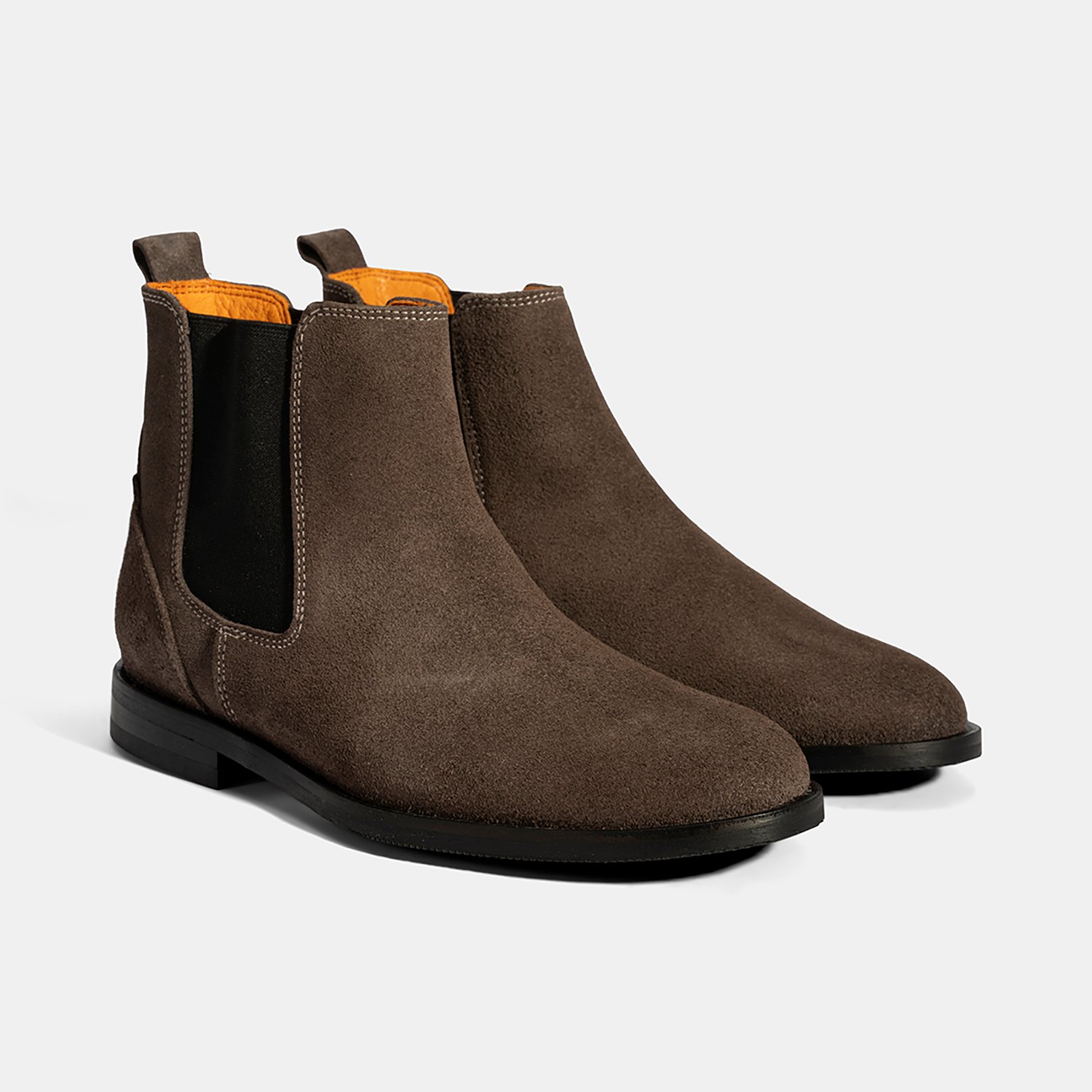 %100 Süet deri, %100 deri astarlı, deri iç tabanlı, TPU tabanlı, lastikli kadın bot. Topuk yüksekliği: 2 cm.