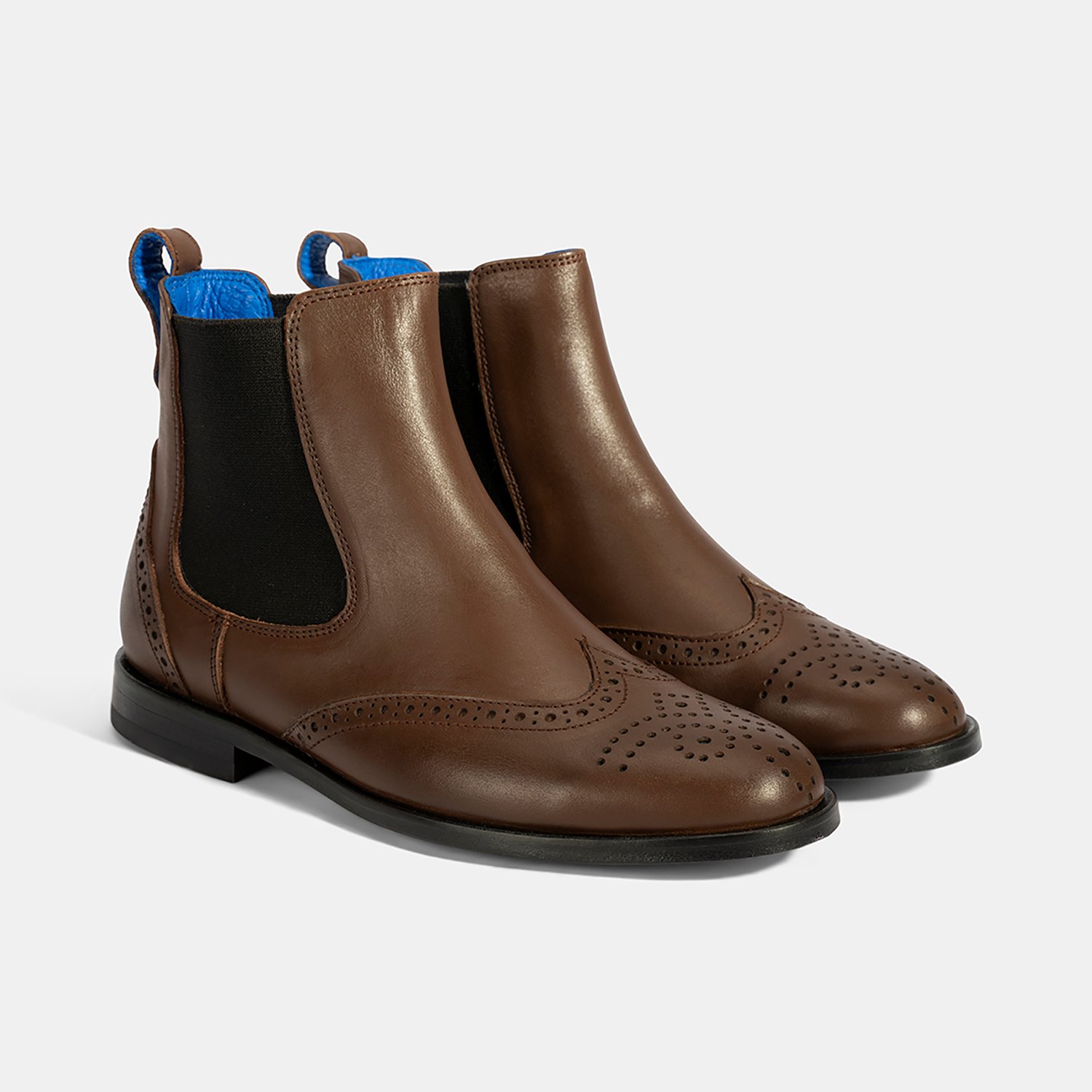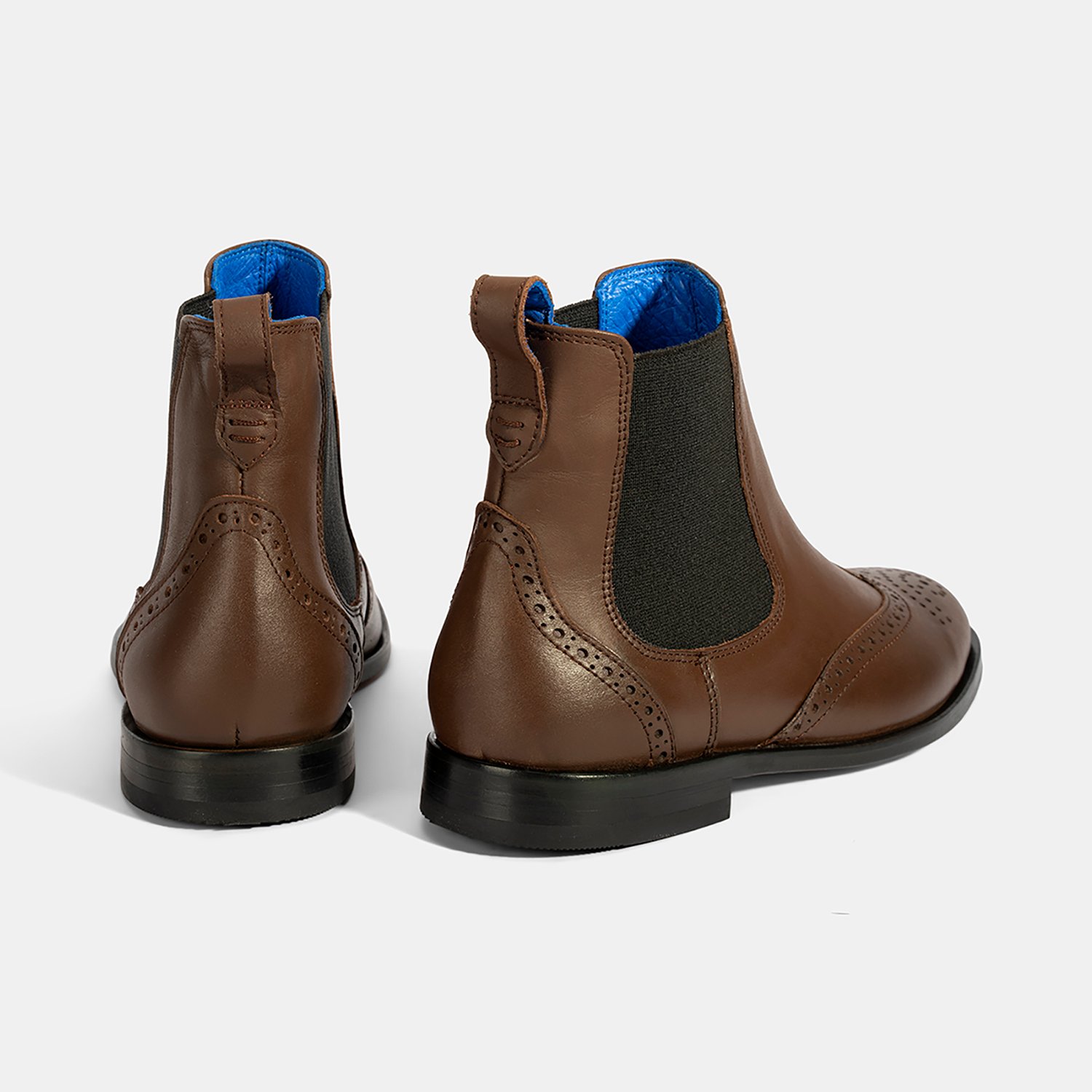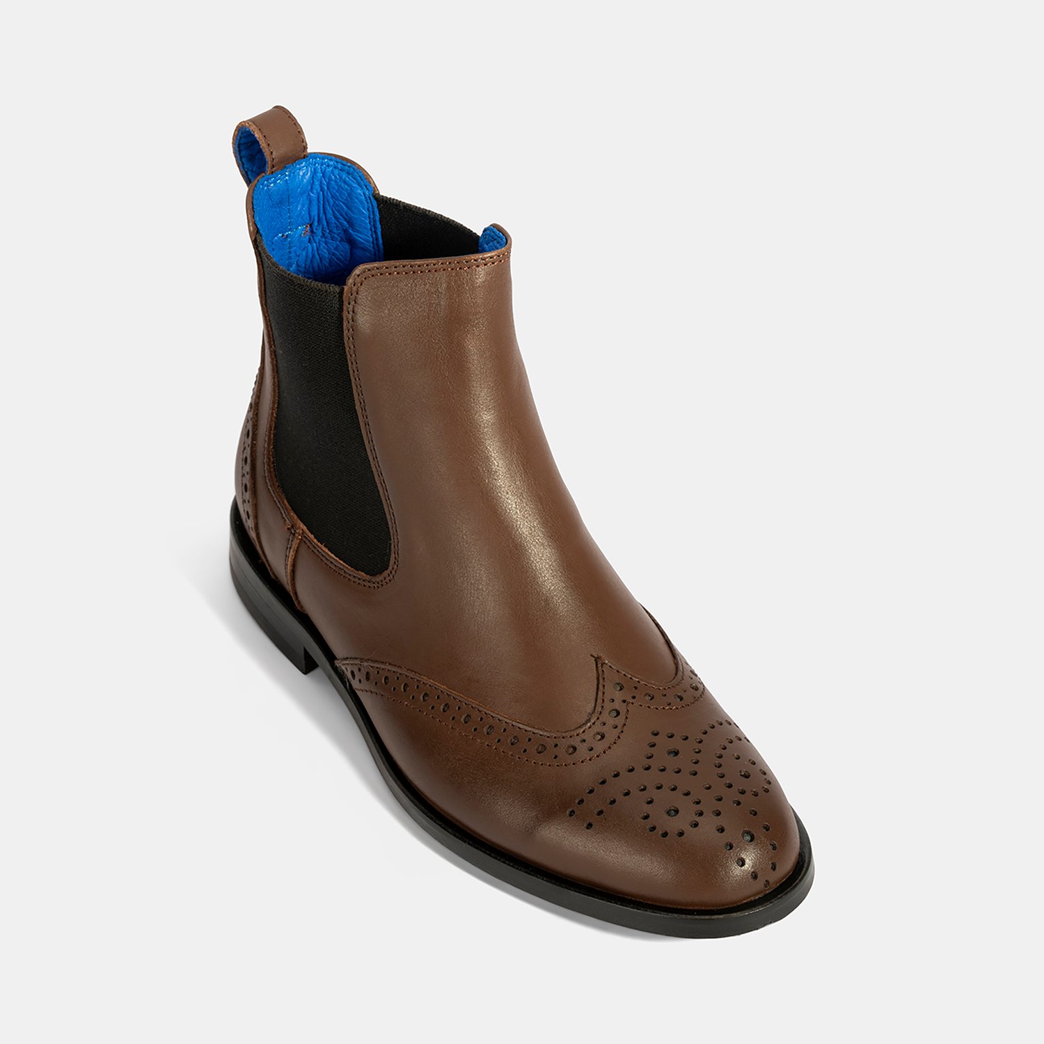 Kadın Mavi Astar Detaylı Kahve Chelsea Deri Bot
