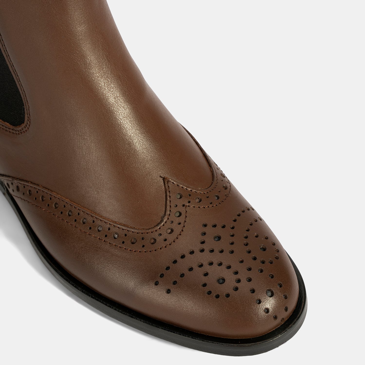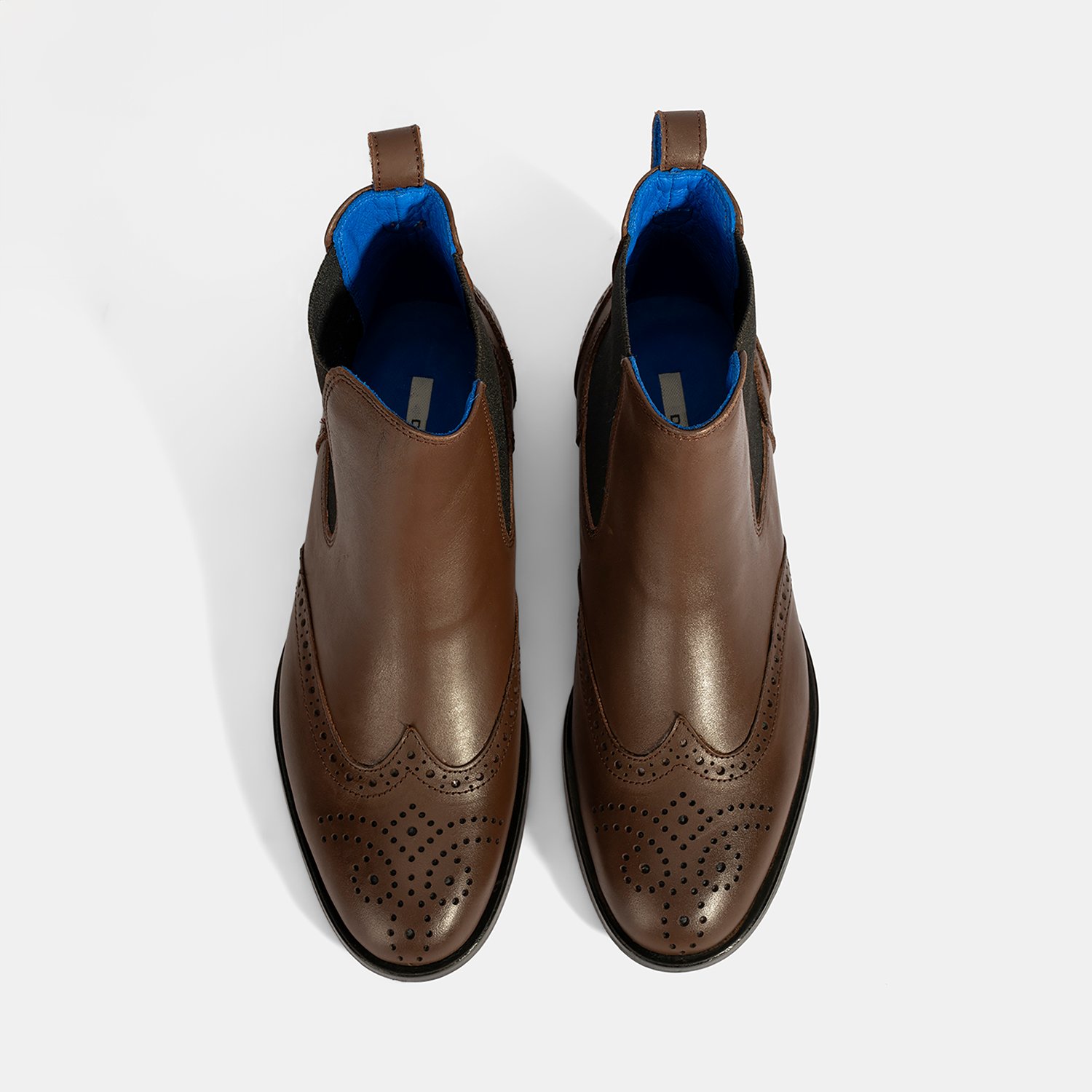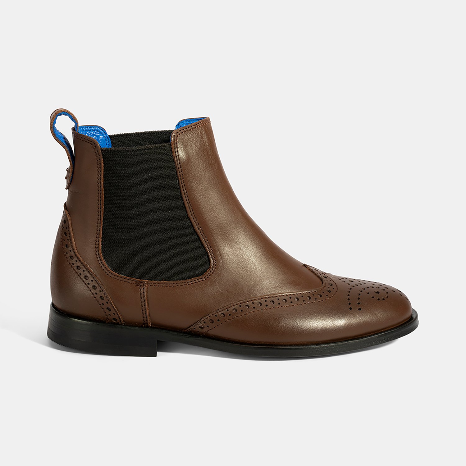 Kadın Mavi Astar Detaylı Kahve Chelsea Deri Bot