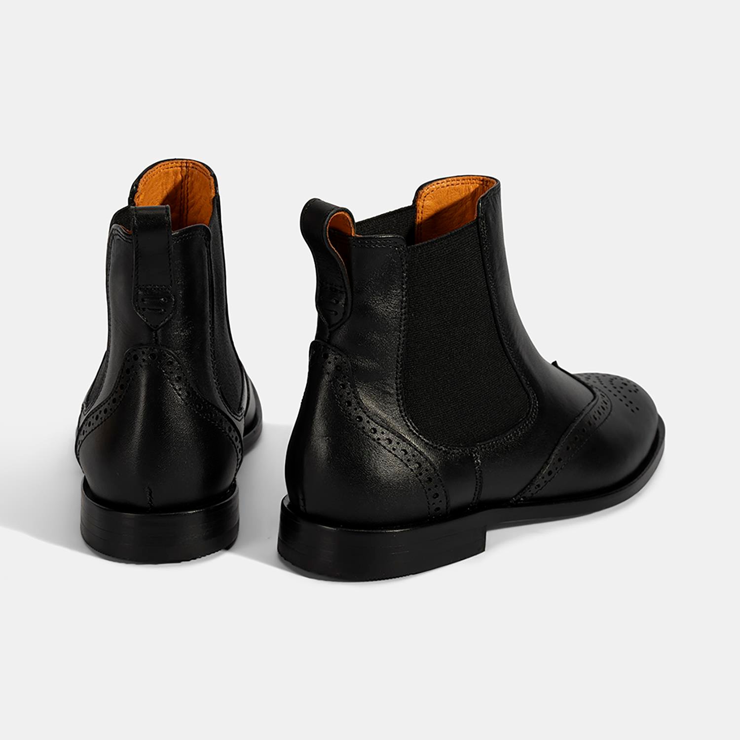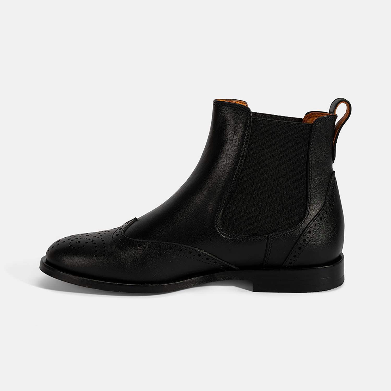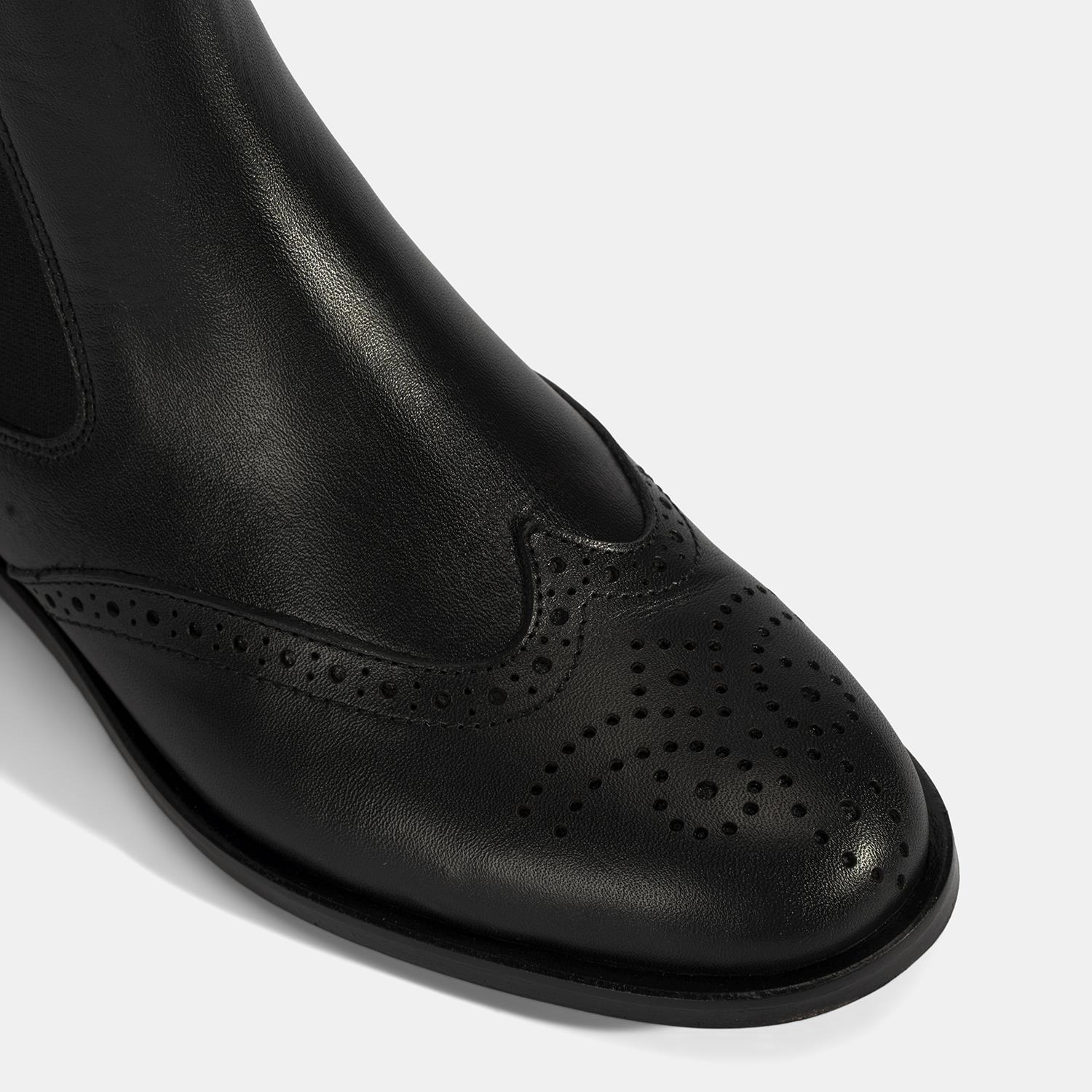 %100 deri, deri iç tabanlı, deri astarlı, lastik detaylı, kösele tabanlı kadın Chelsea bot. Topuk yüksekliği: 2 cm.