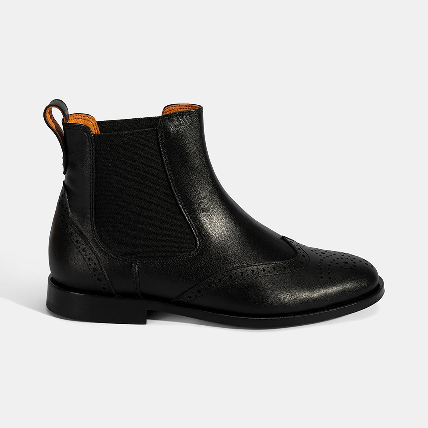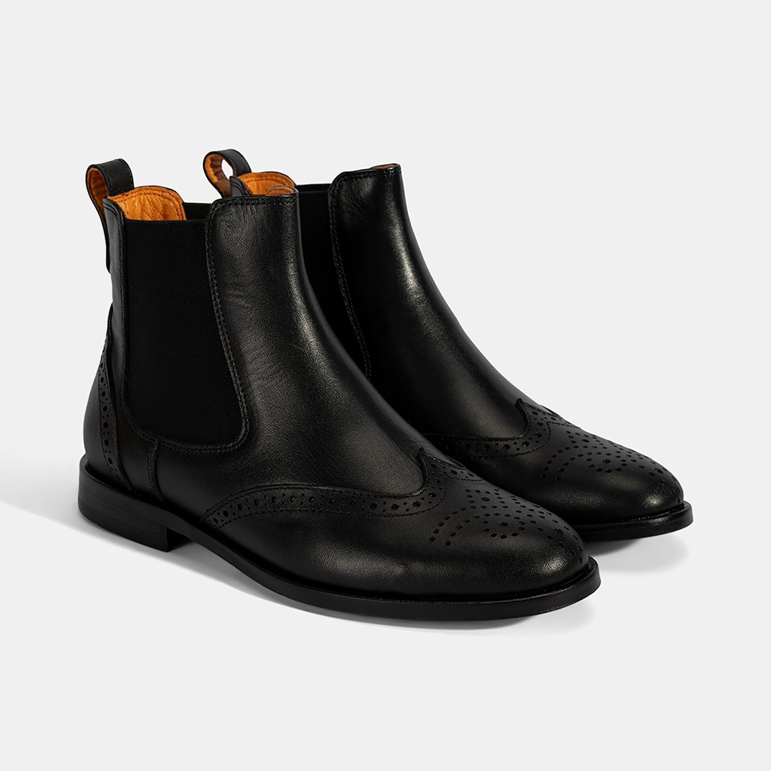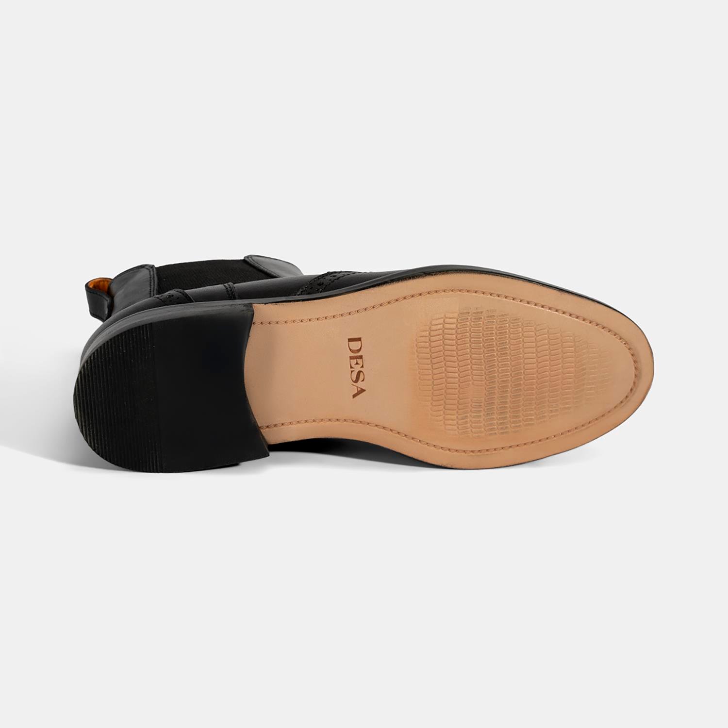 %100 deri, deri iç tabanlı, deri astarlı, lastik detaylı, kösele tabanlı kadın Chelsea bot. Topuk yüksekliği: 2 cm.