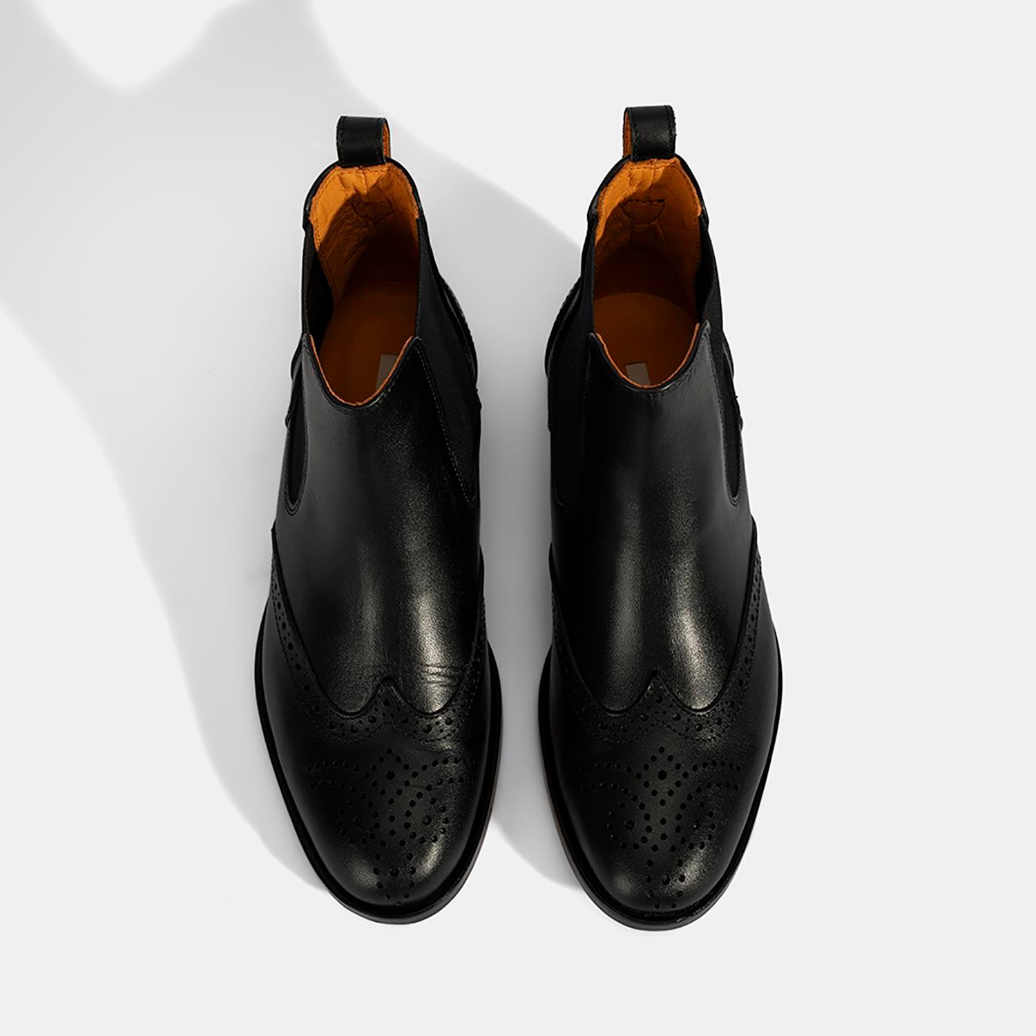 Kadın Turuncu Astar Detaylı Siyah Chelsea Deri Bot