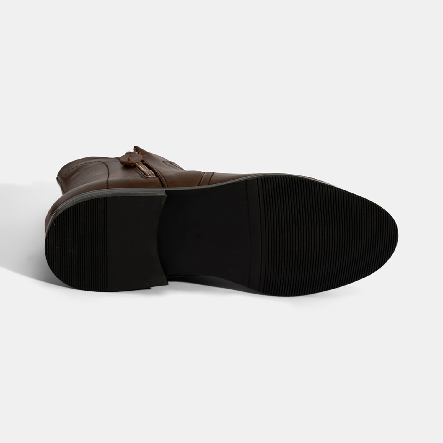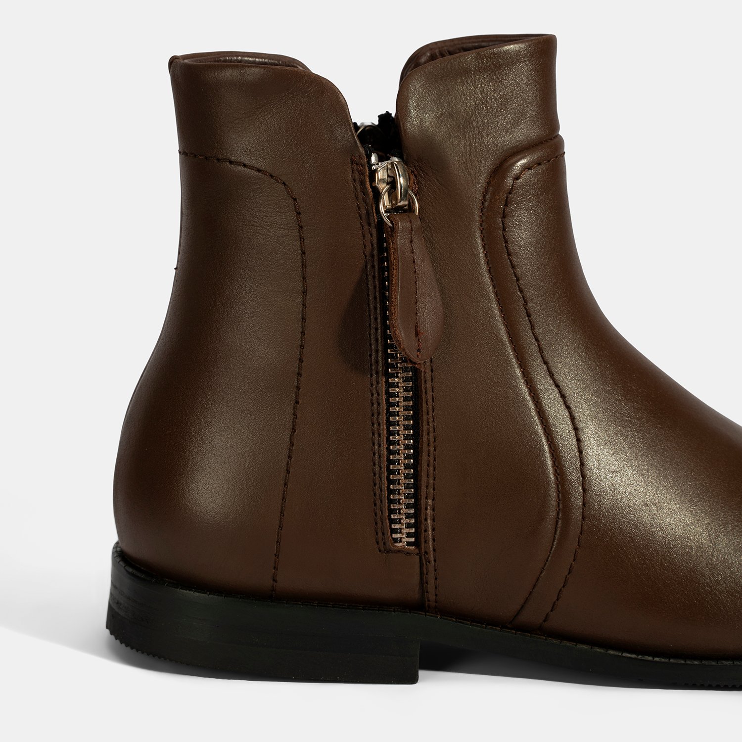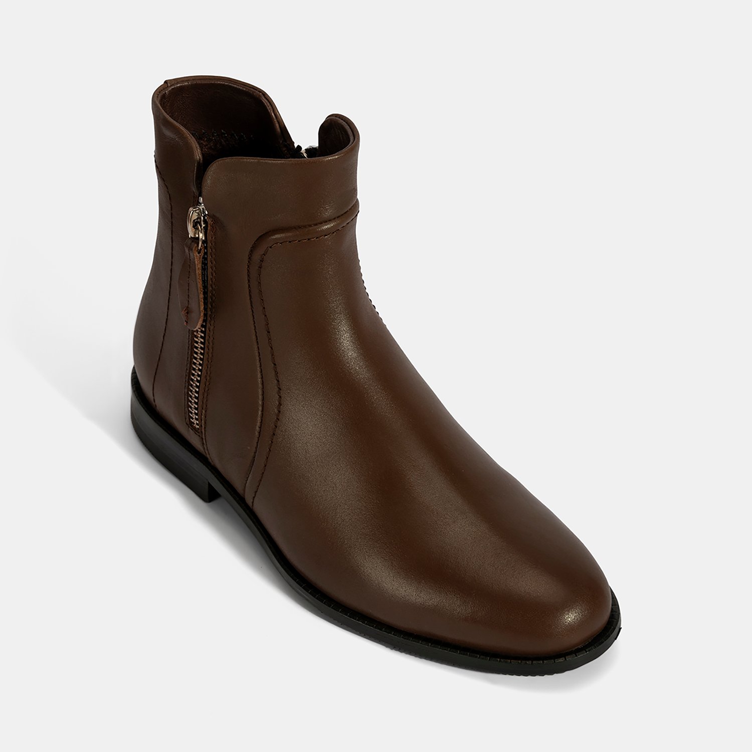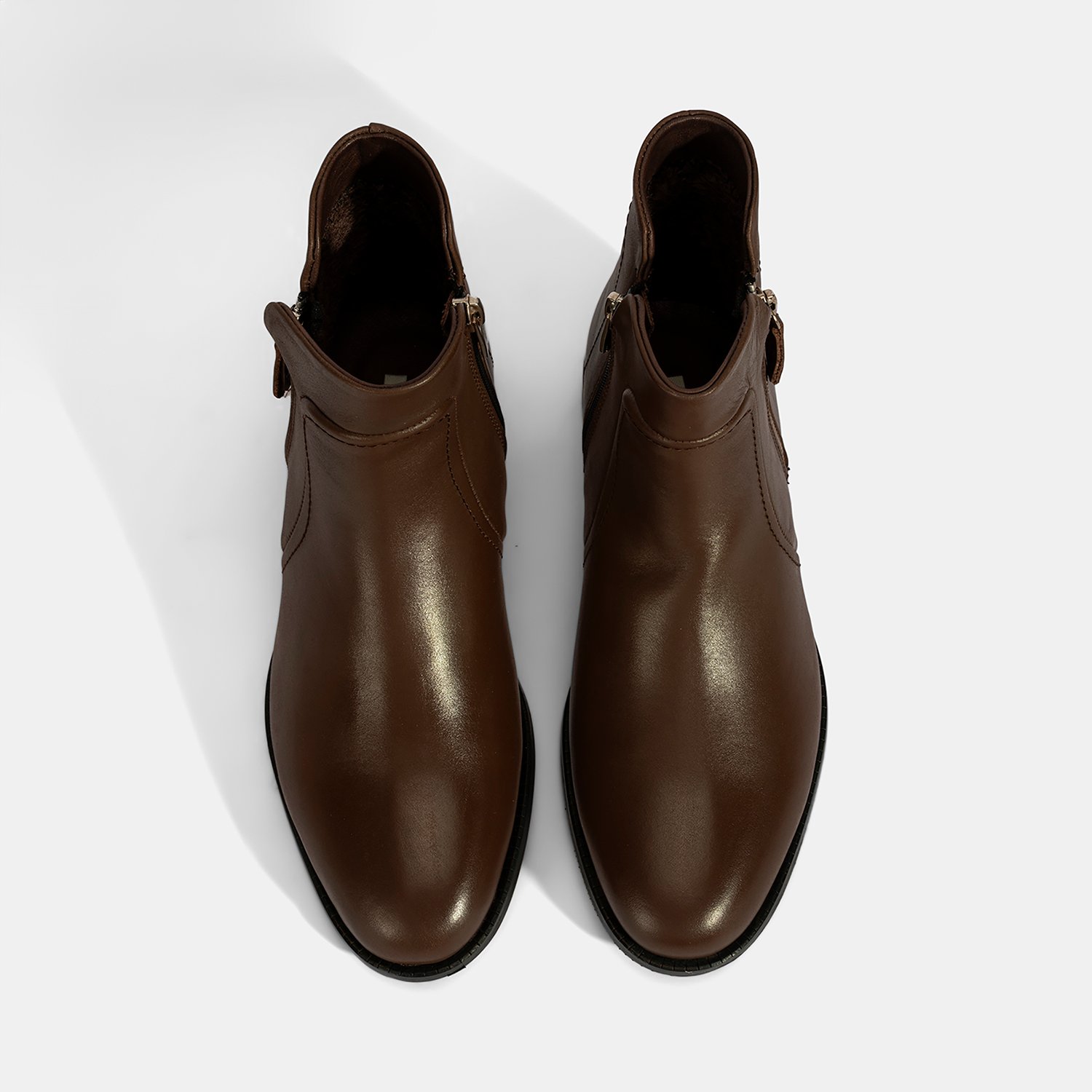 Kadın Kahve Çift Fermuarlı Deri Bot