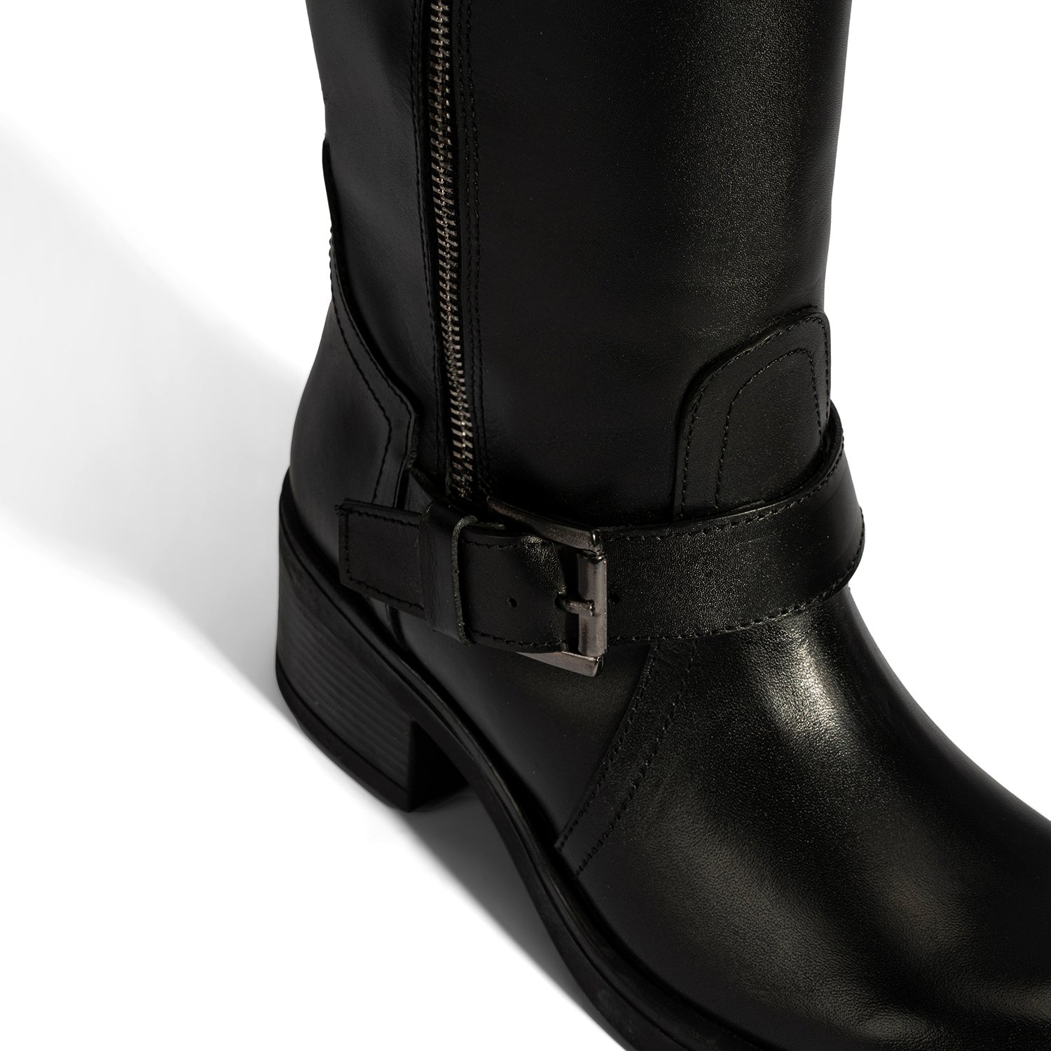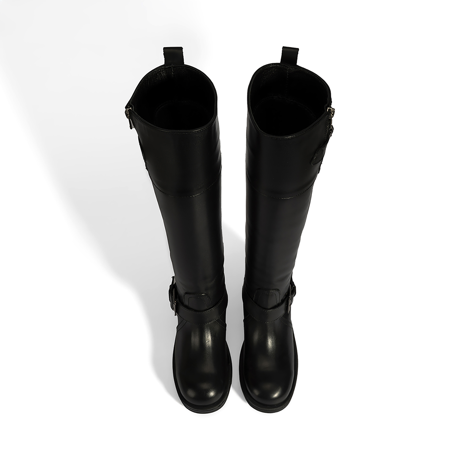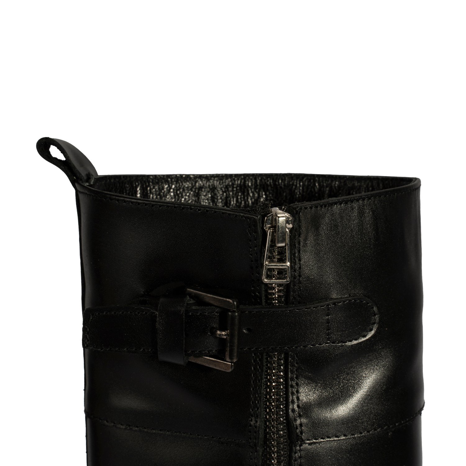 Kadın Siyah Metal Toka Detaylı Deri Çizme