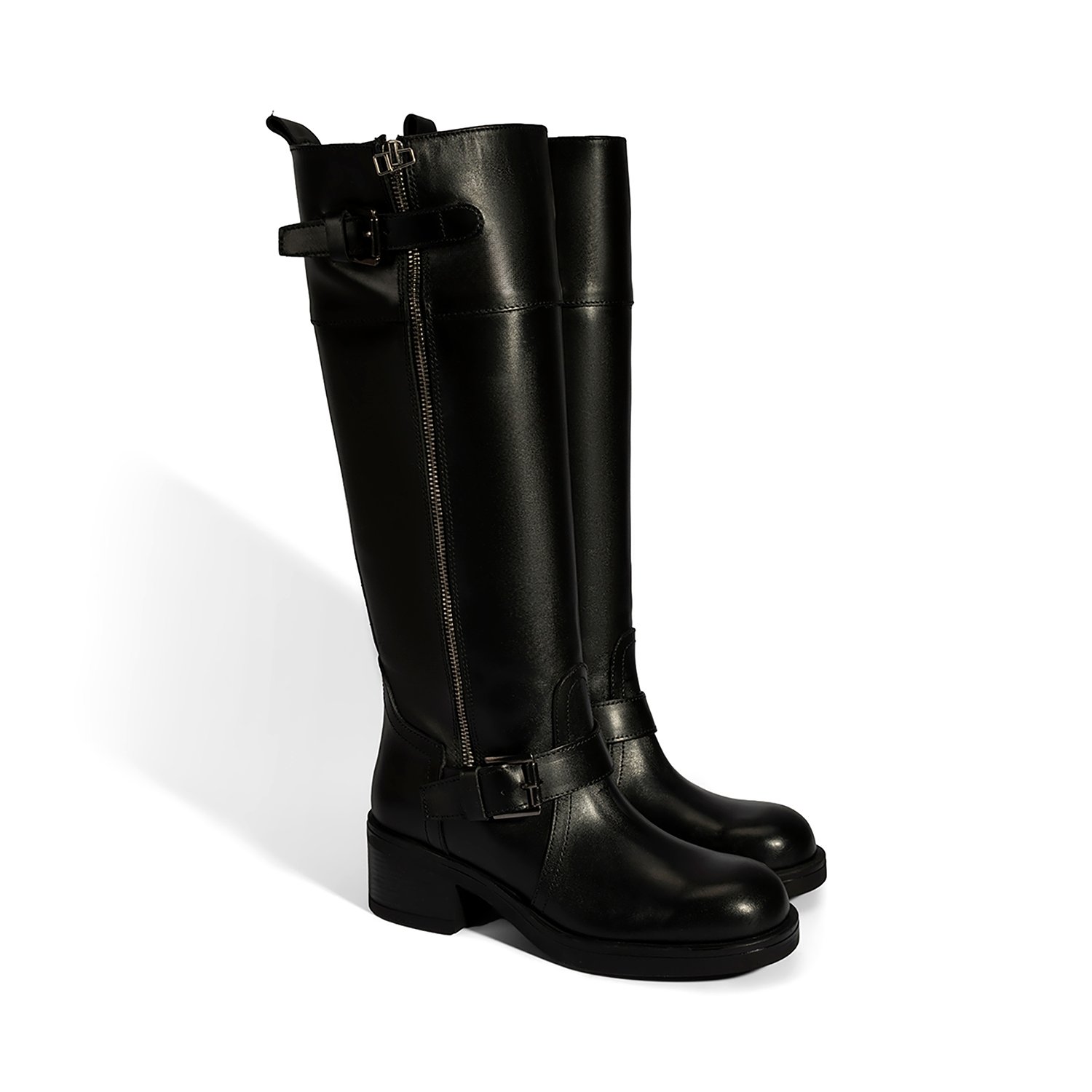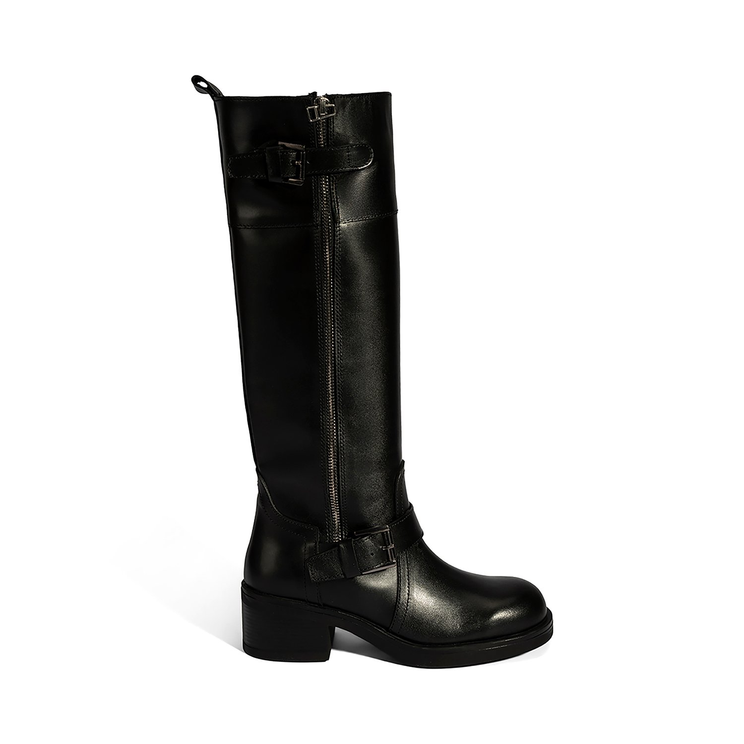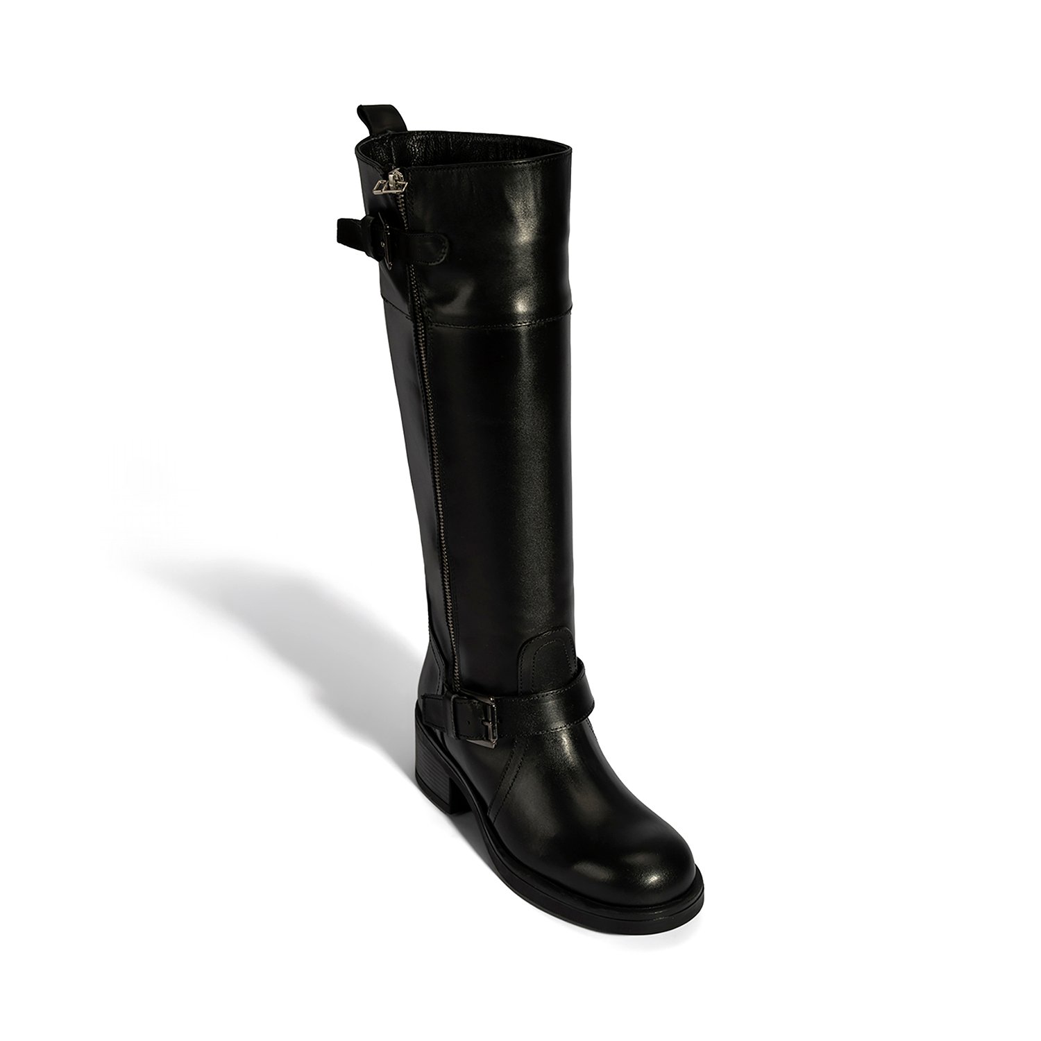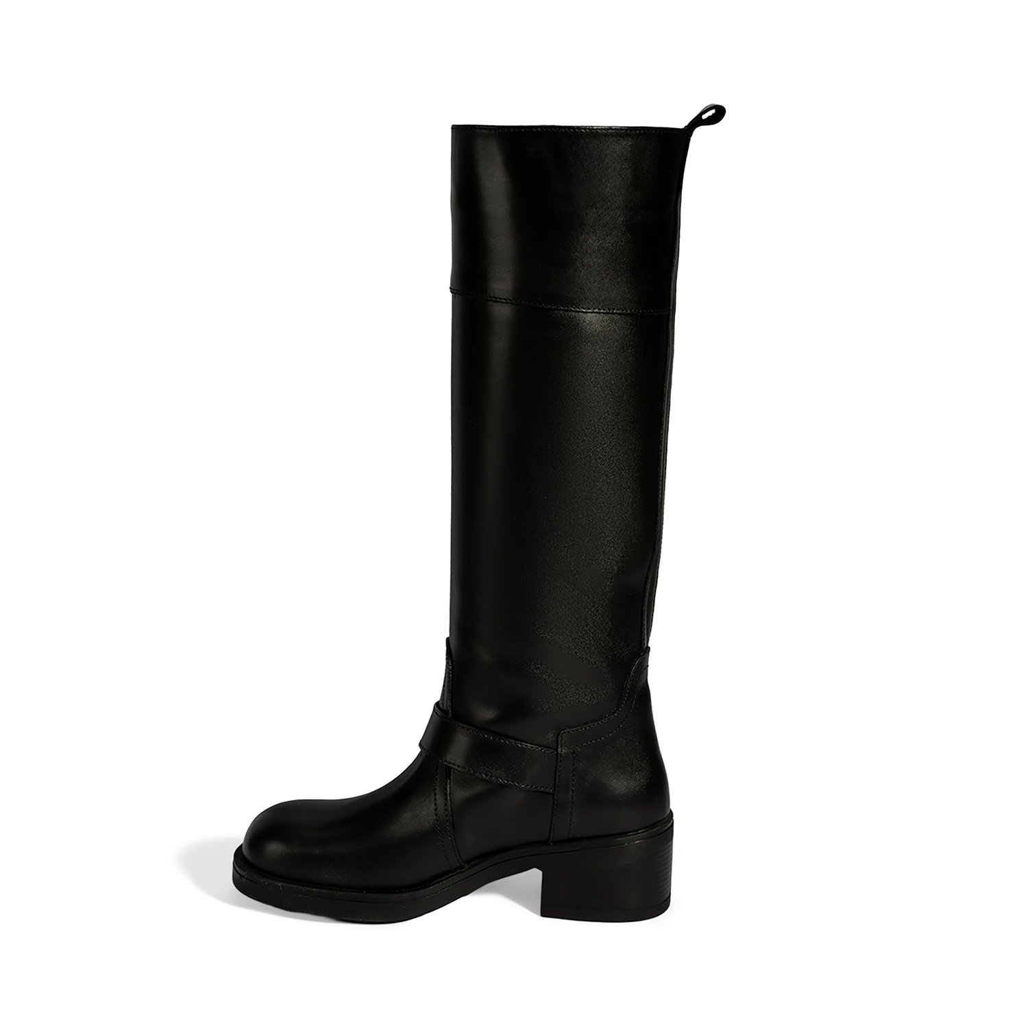 Kadın Siyah Metal Toka Detaylı Deri Çizme