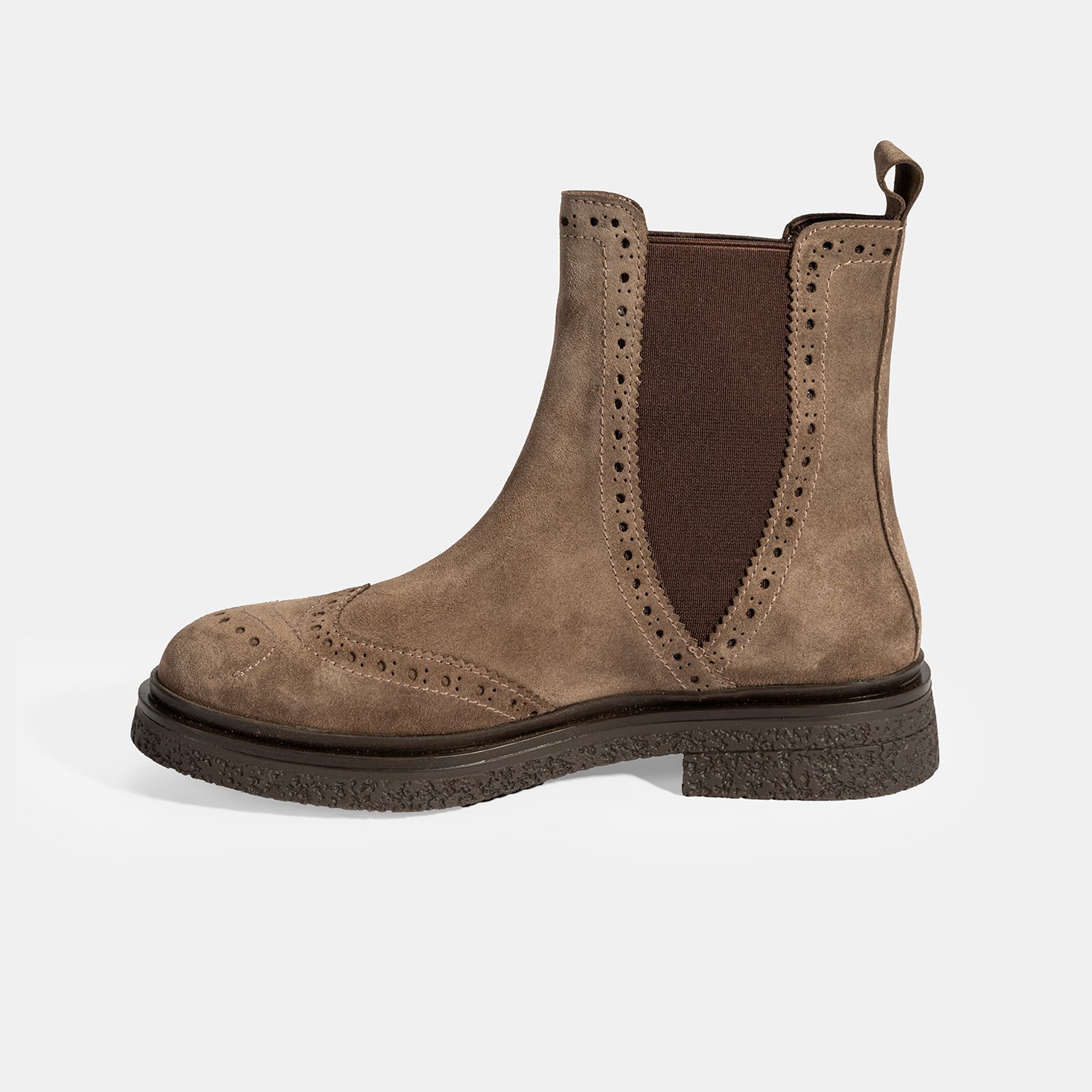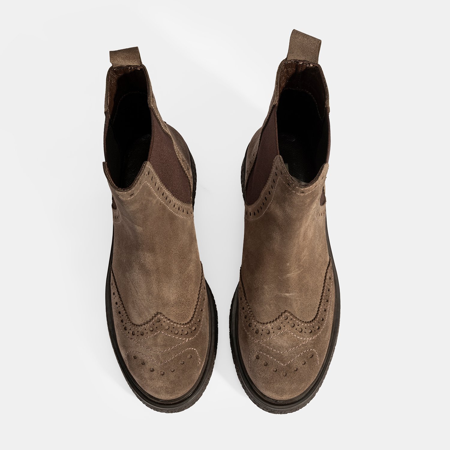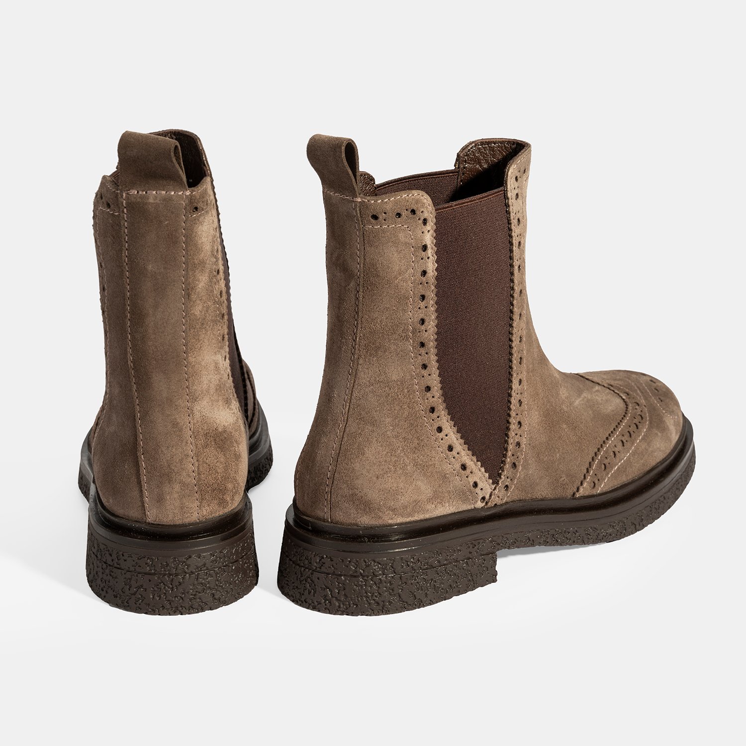 %100 süet deri, deri iç tabanlı, tekstil astarlı, termo tabanlı, lastik detaylı kadın Chelsea bot. Topuk yüksekliği: 3 cm.