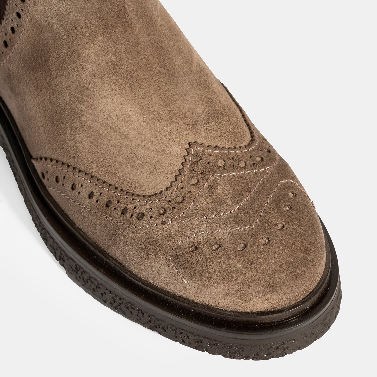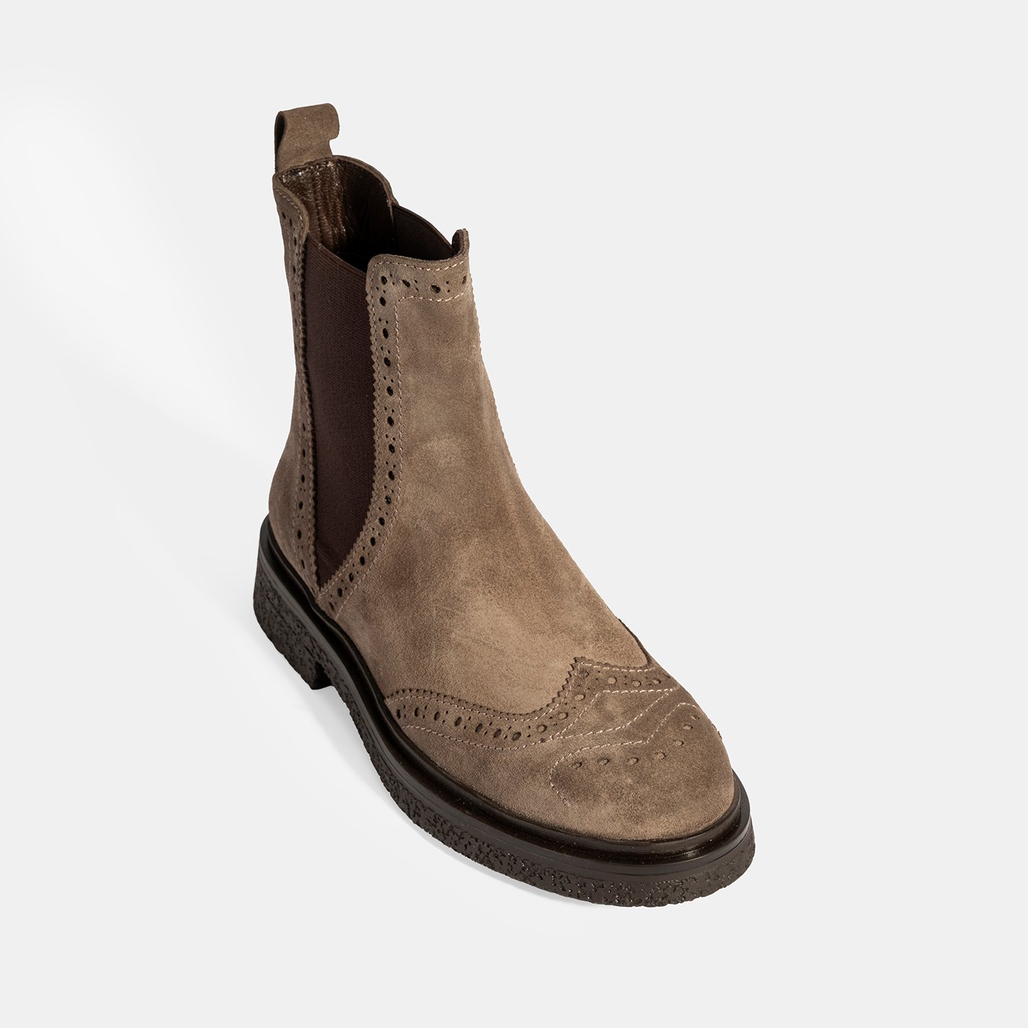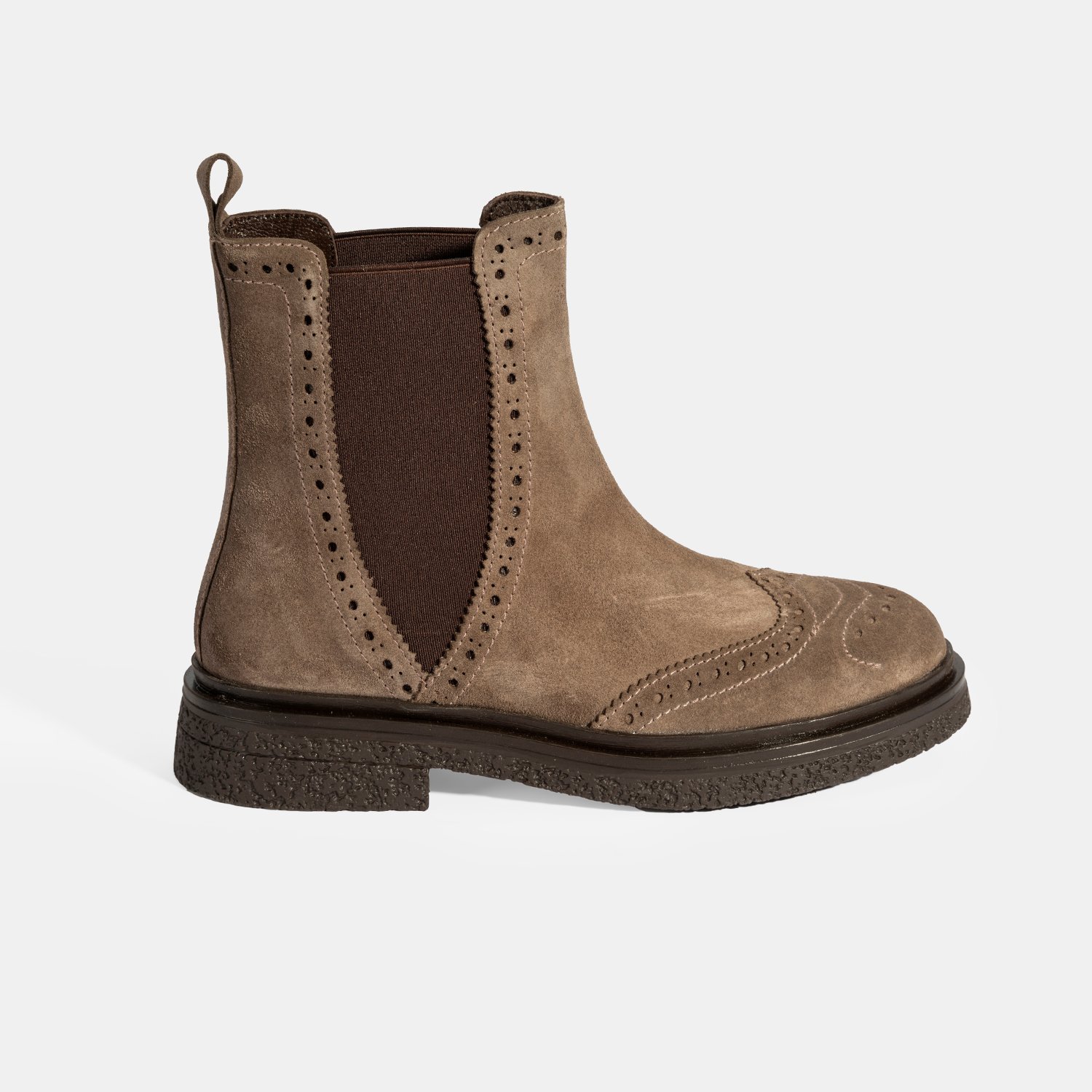 %100 süet deri, deri iç tabanlı, tekstil astarlı, termo tabanlı, lastik detaylı kadın Chelsea bot. Topuk yüksekliği: 3 cm.