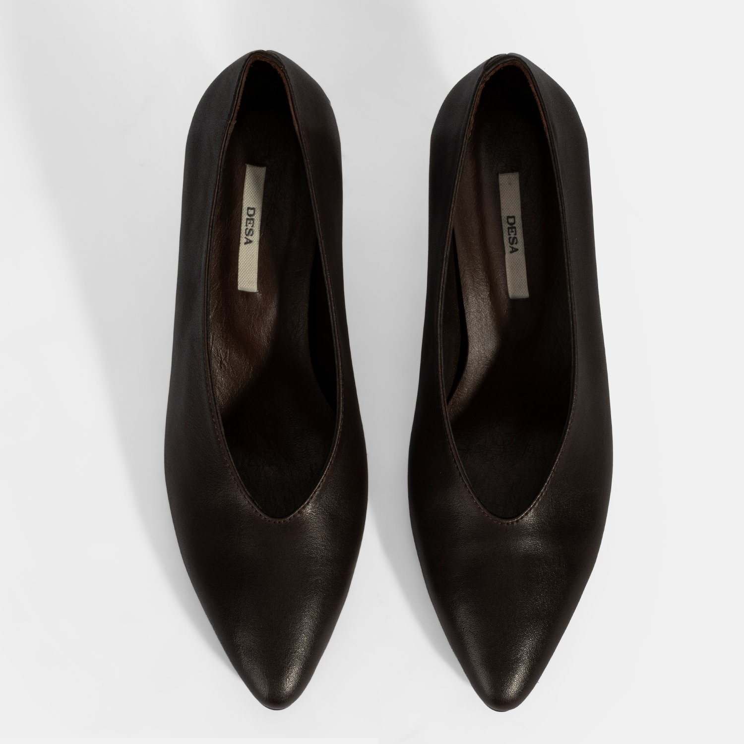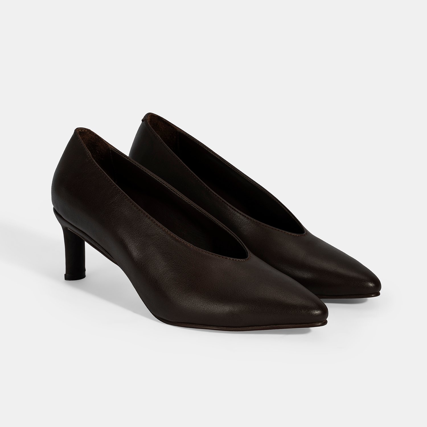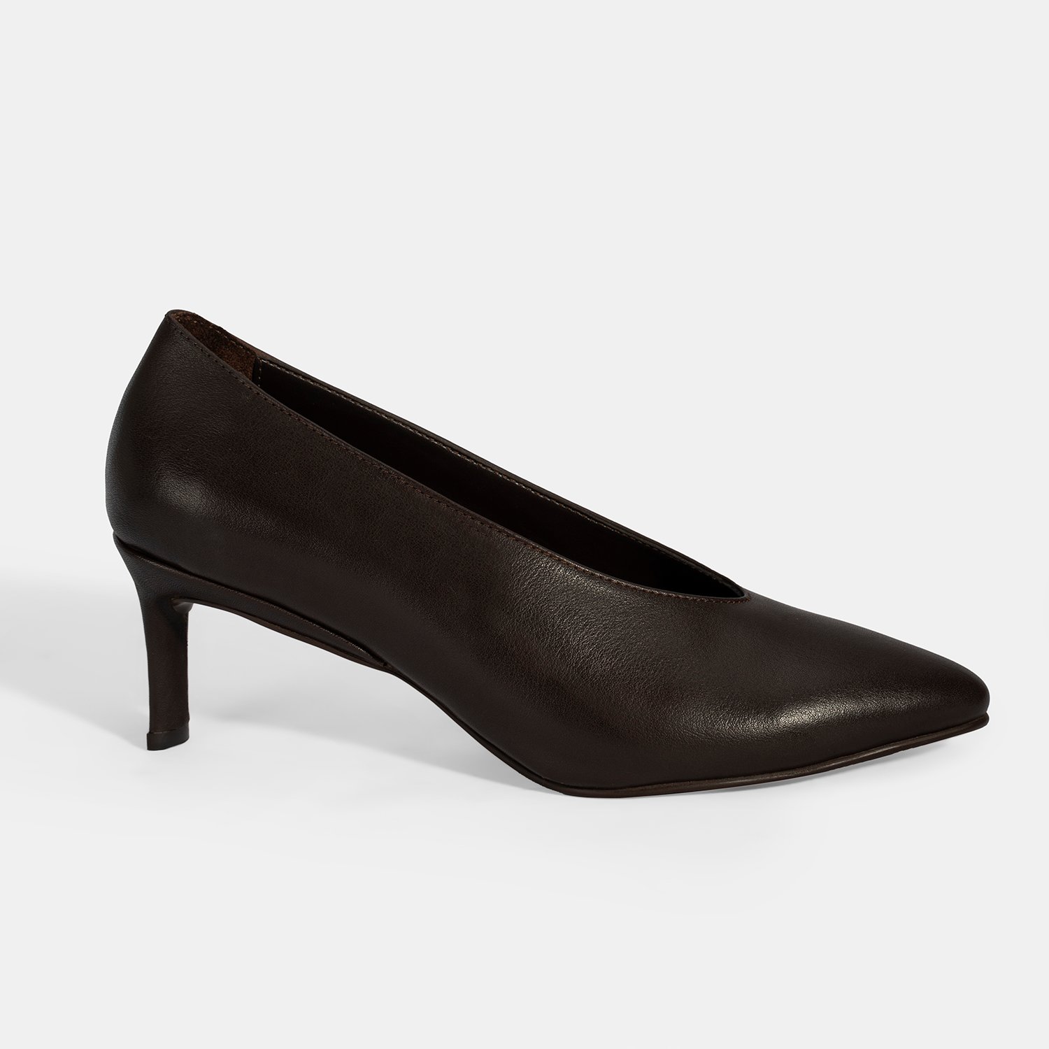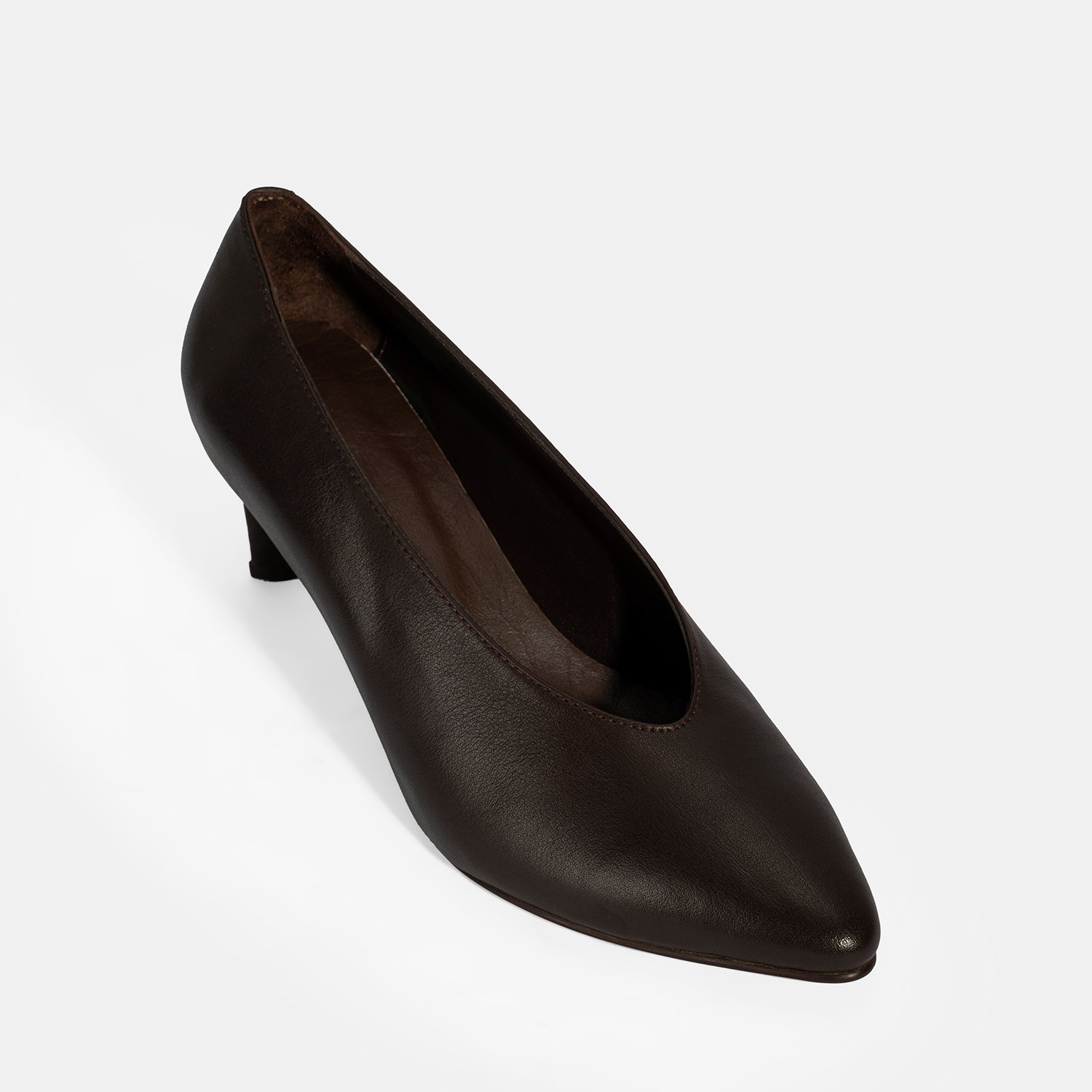 Kadın Kahve Klasik Topuklu Deri Ayakkabı