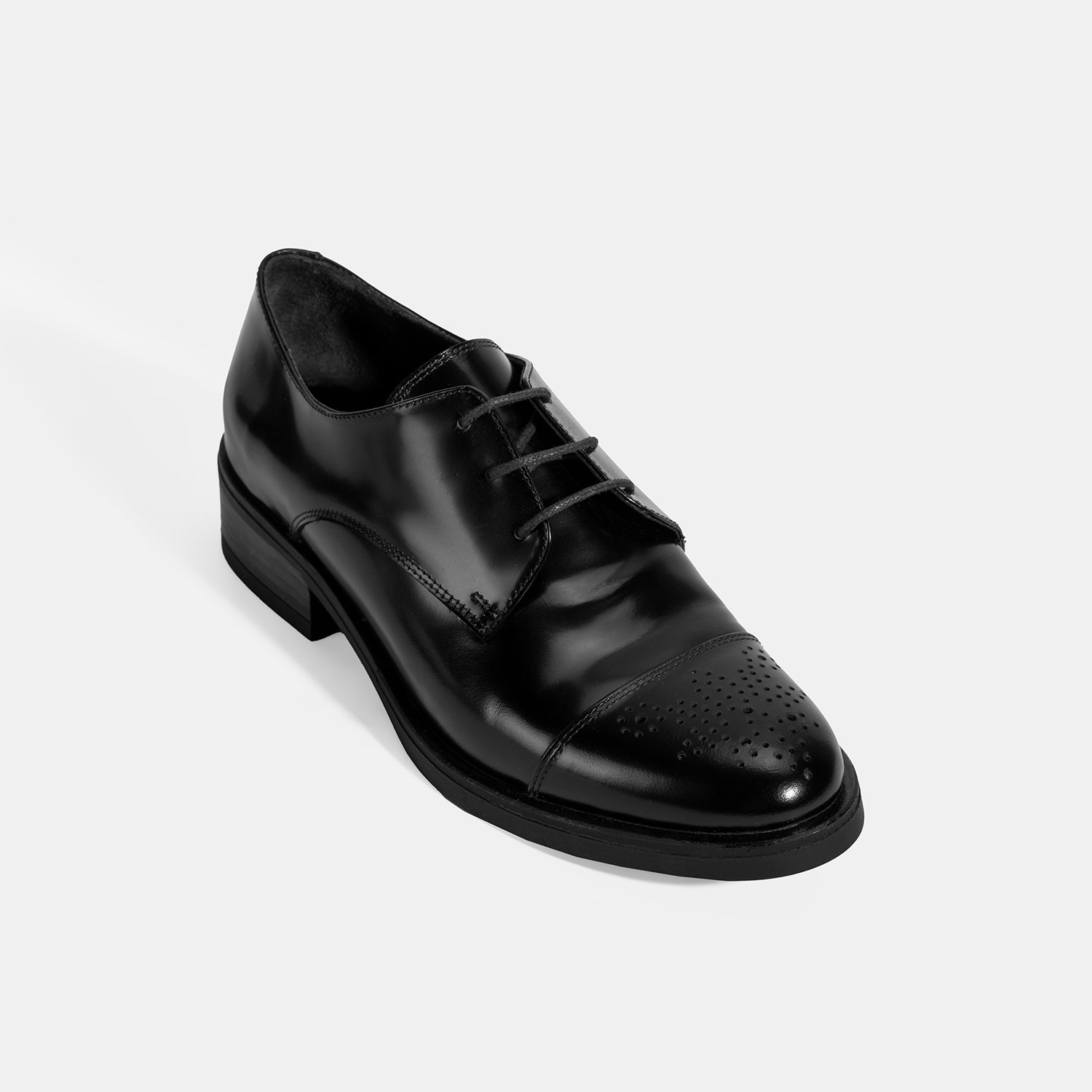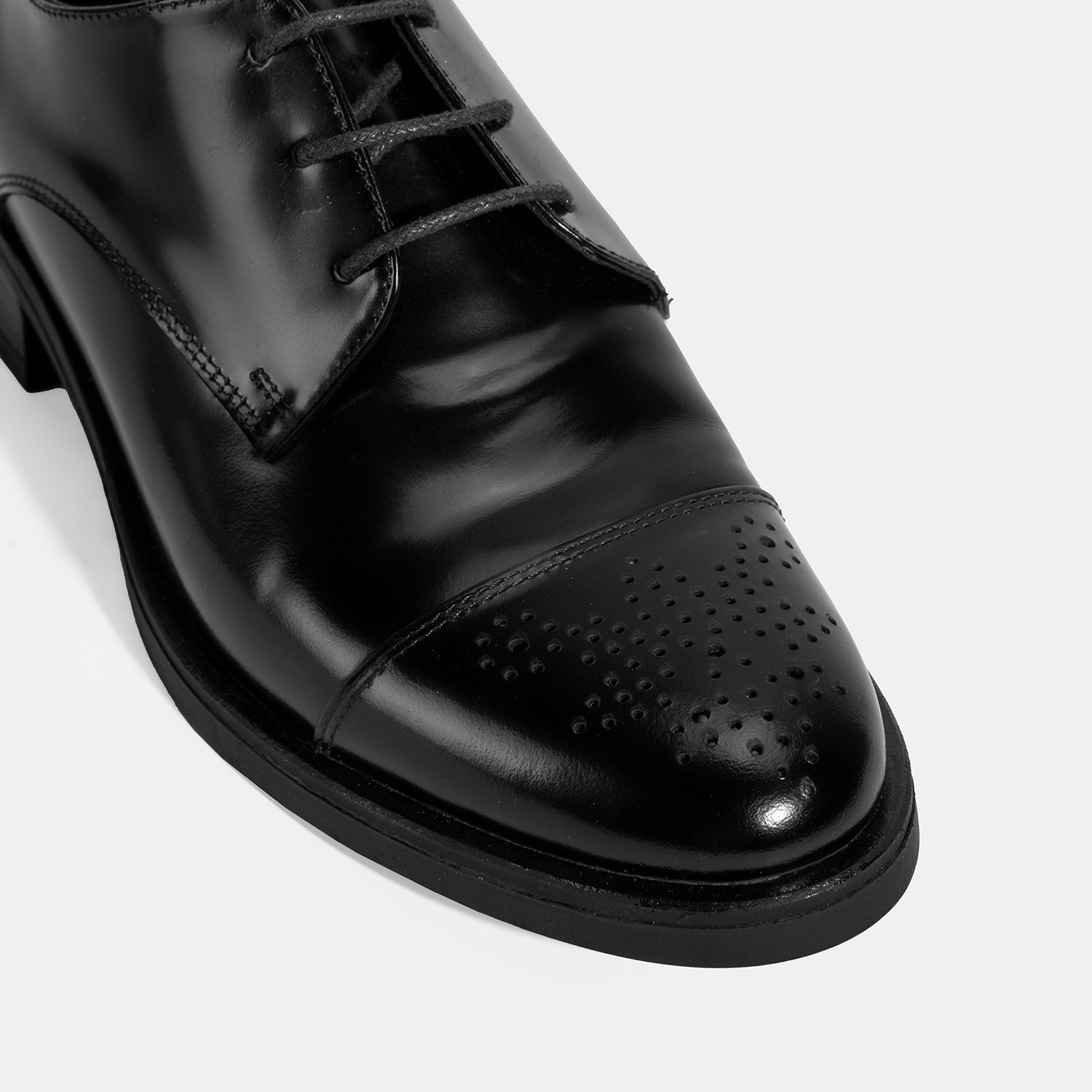 Kadın Siyah Bağcıklı Klasik Deri Ayakkabı