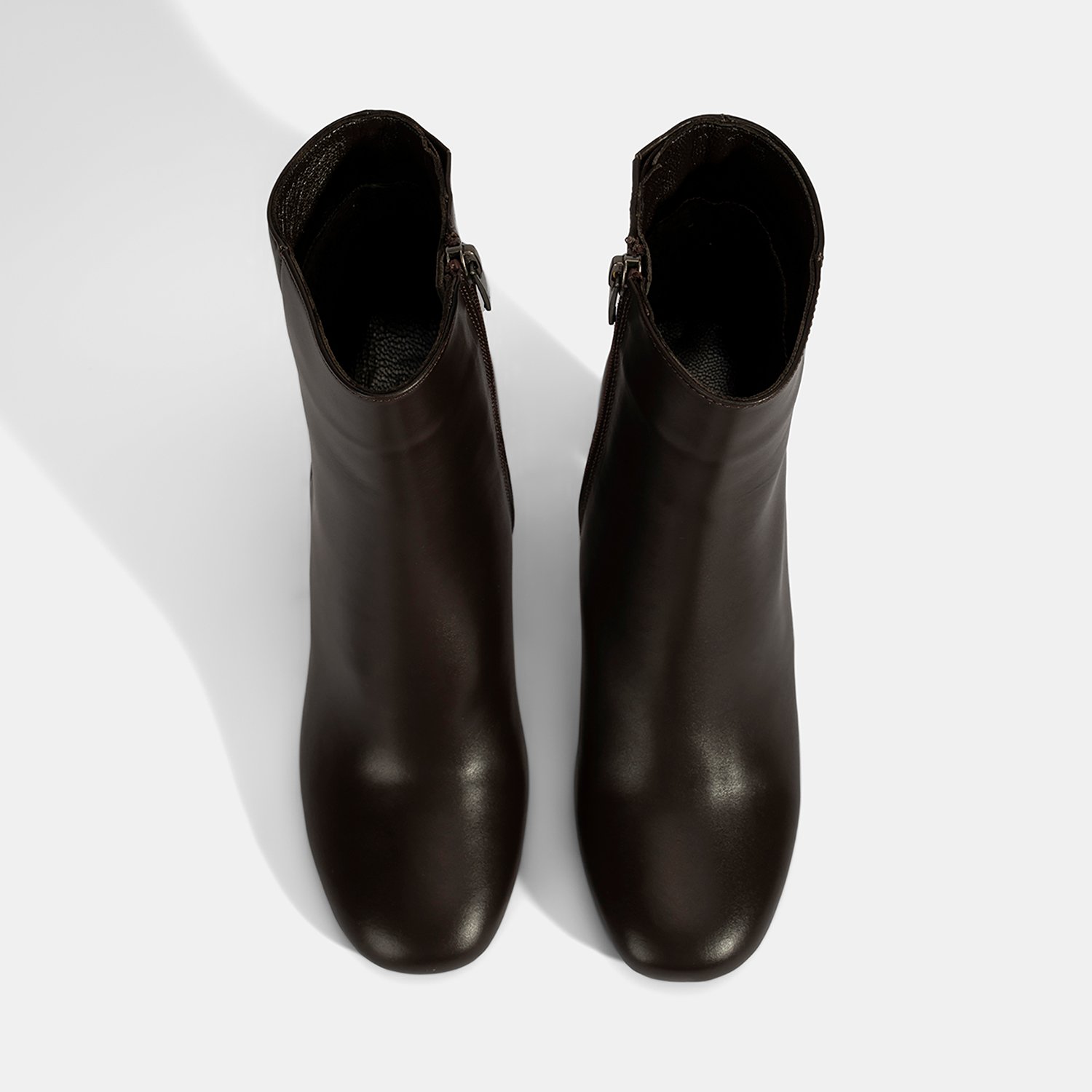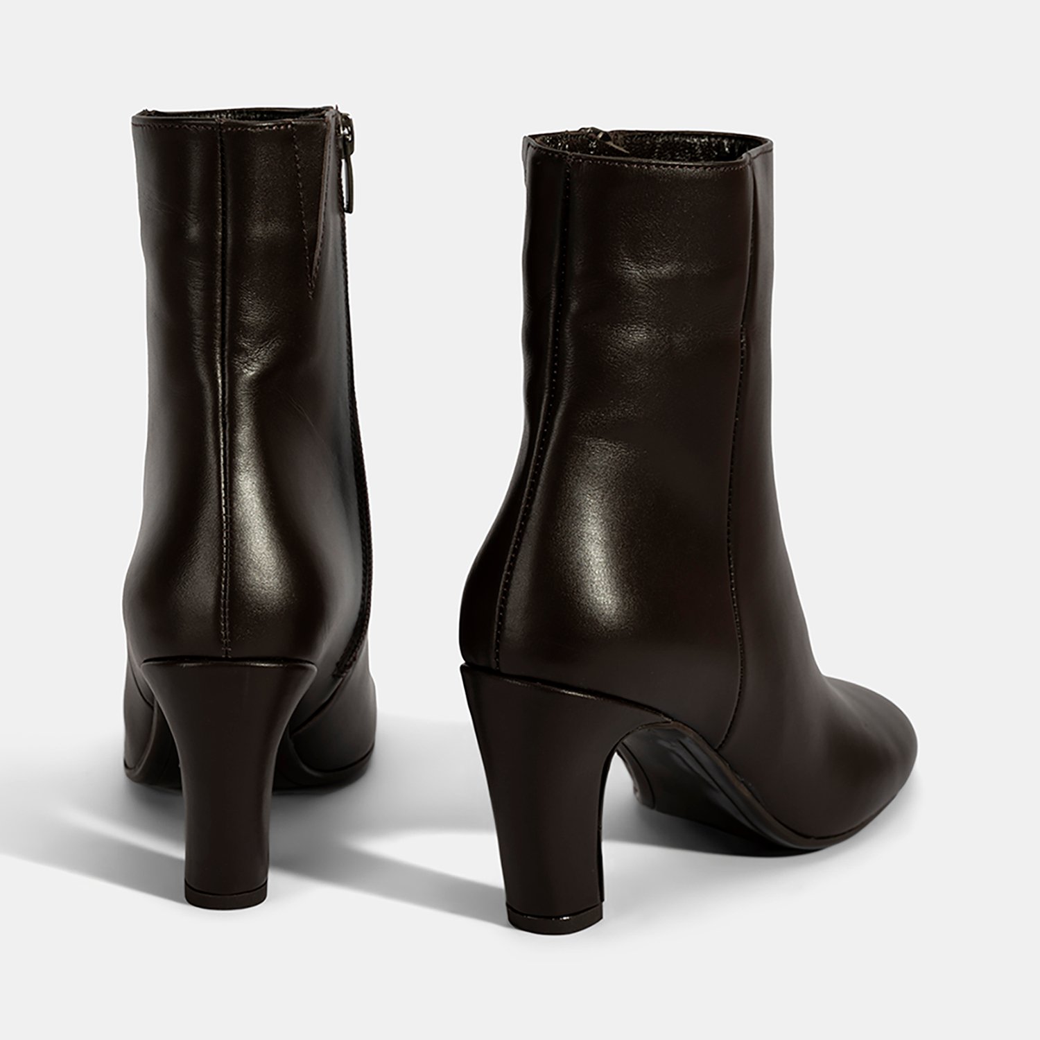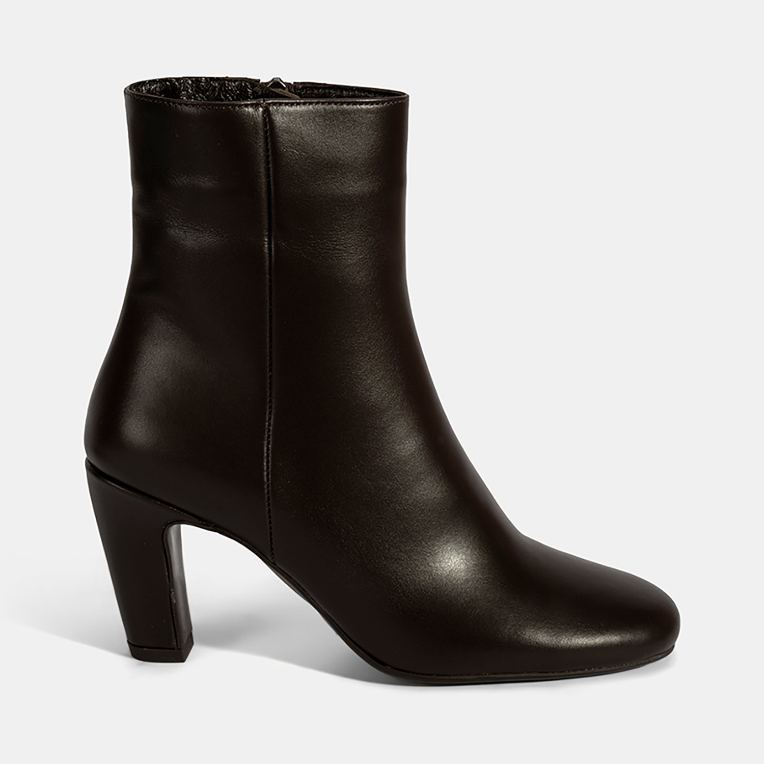 %100 deriden üretilmiş, deri iç tabanlı, tekstil astarlı, neolit tabanlı, içten fermuarlı kadın topuklu bot. Topuk yüksekliği: 8 cm