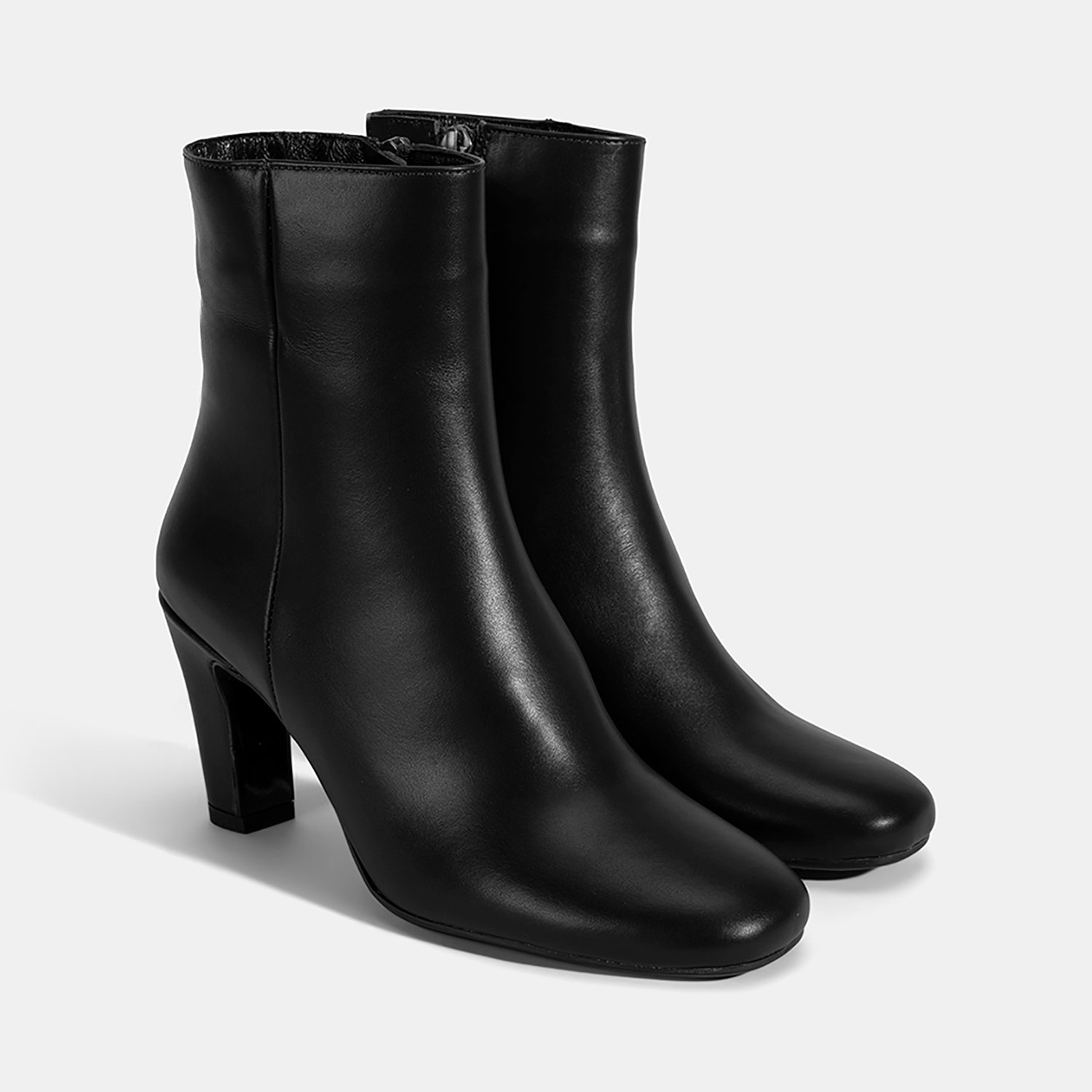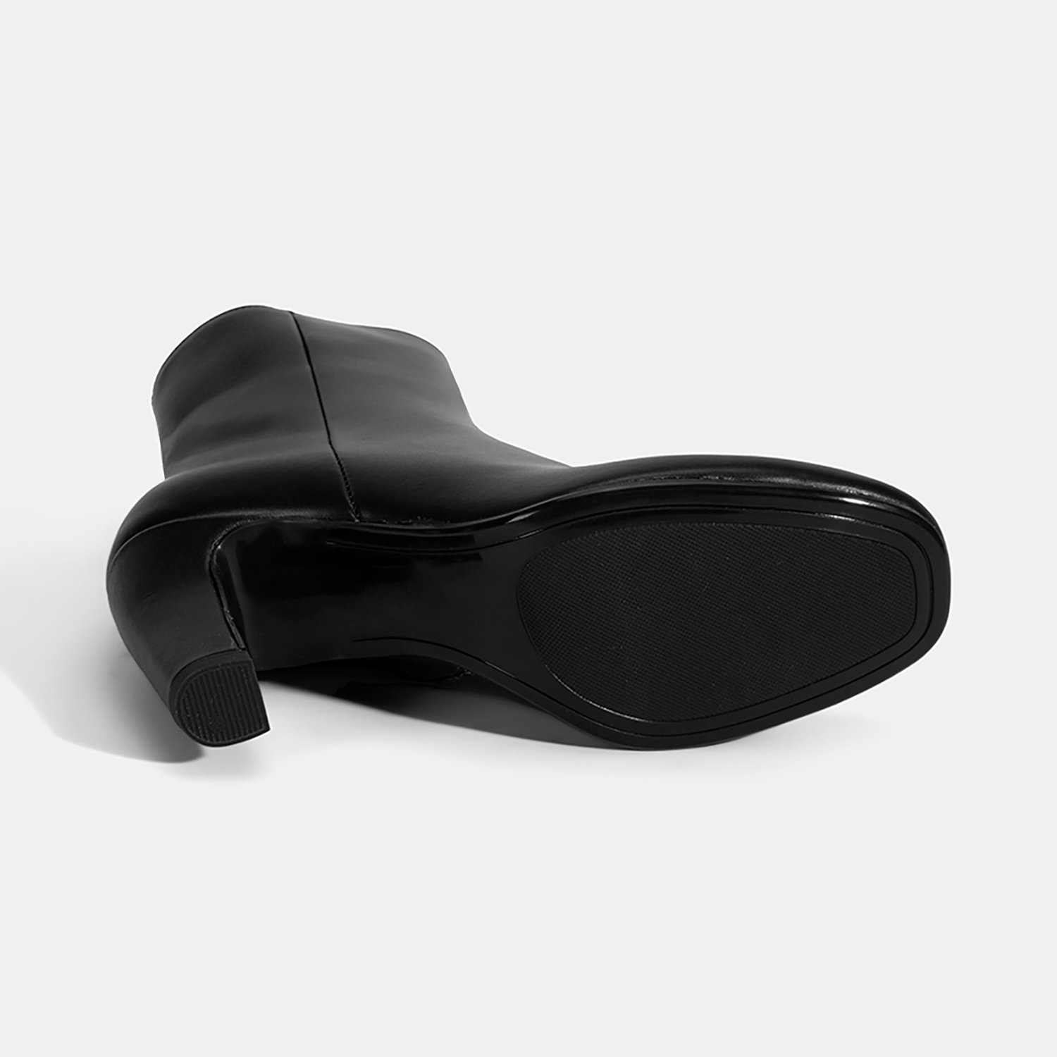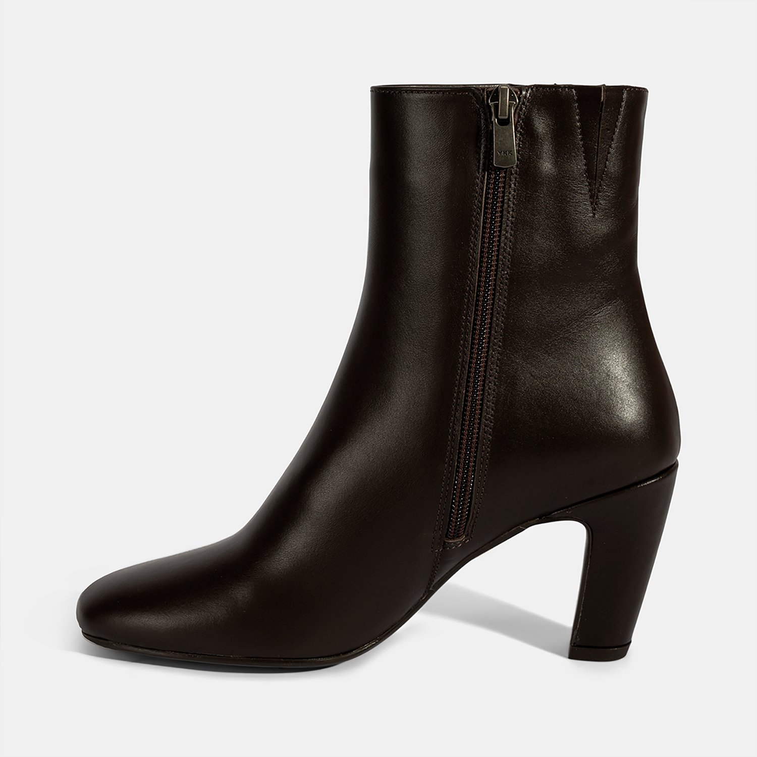 %100 deriden üretilmiş, deri iç tabanlı, tekstil astarlı, neolit tabanlı, içten fermuarlı kadın topuklu bot. Topuk yüksekliği: 8 cm