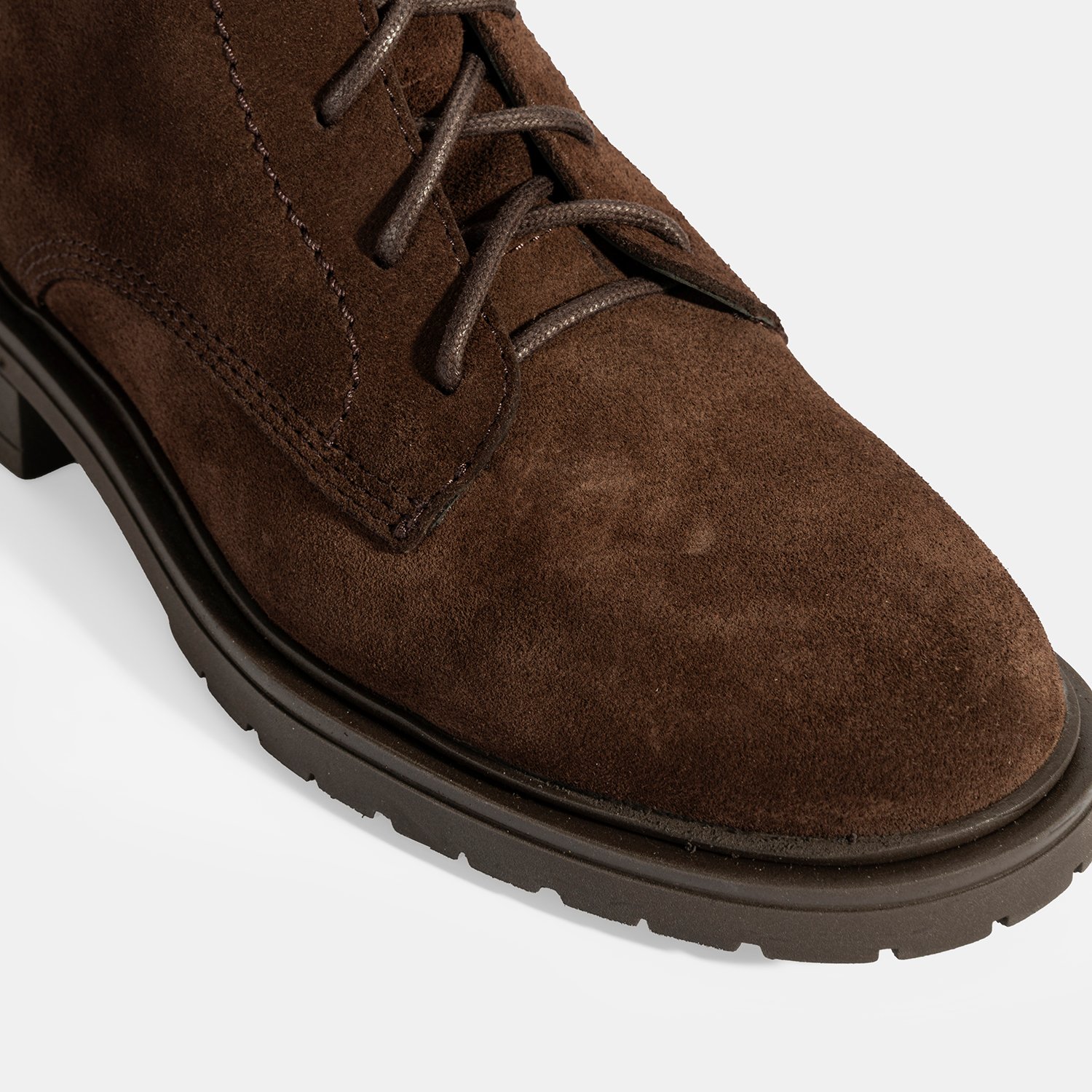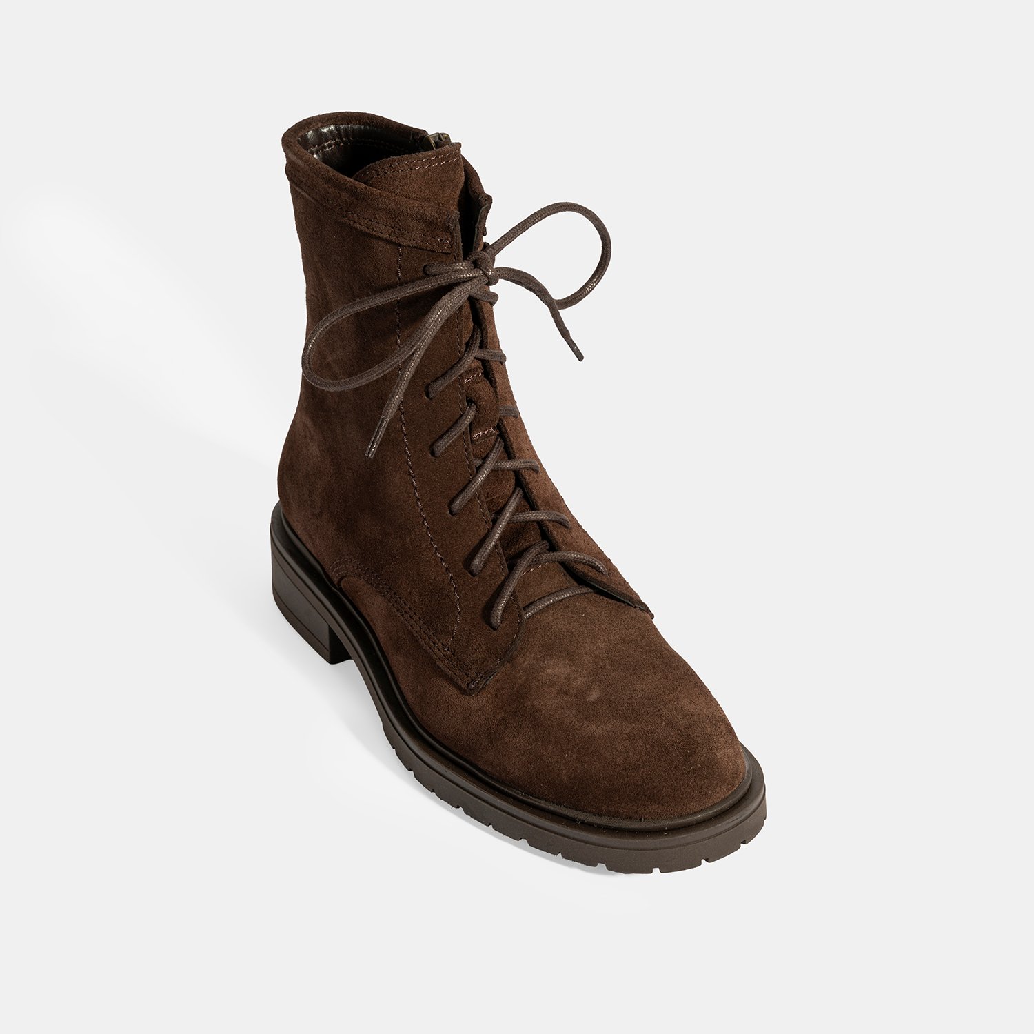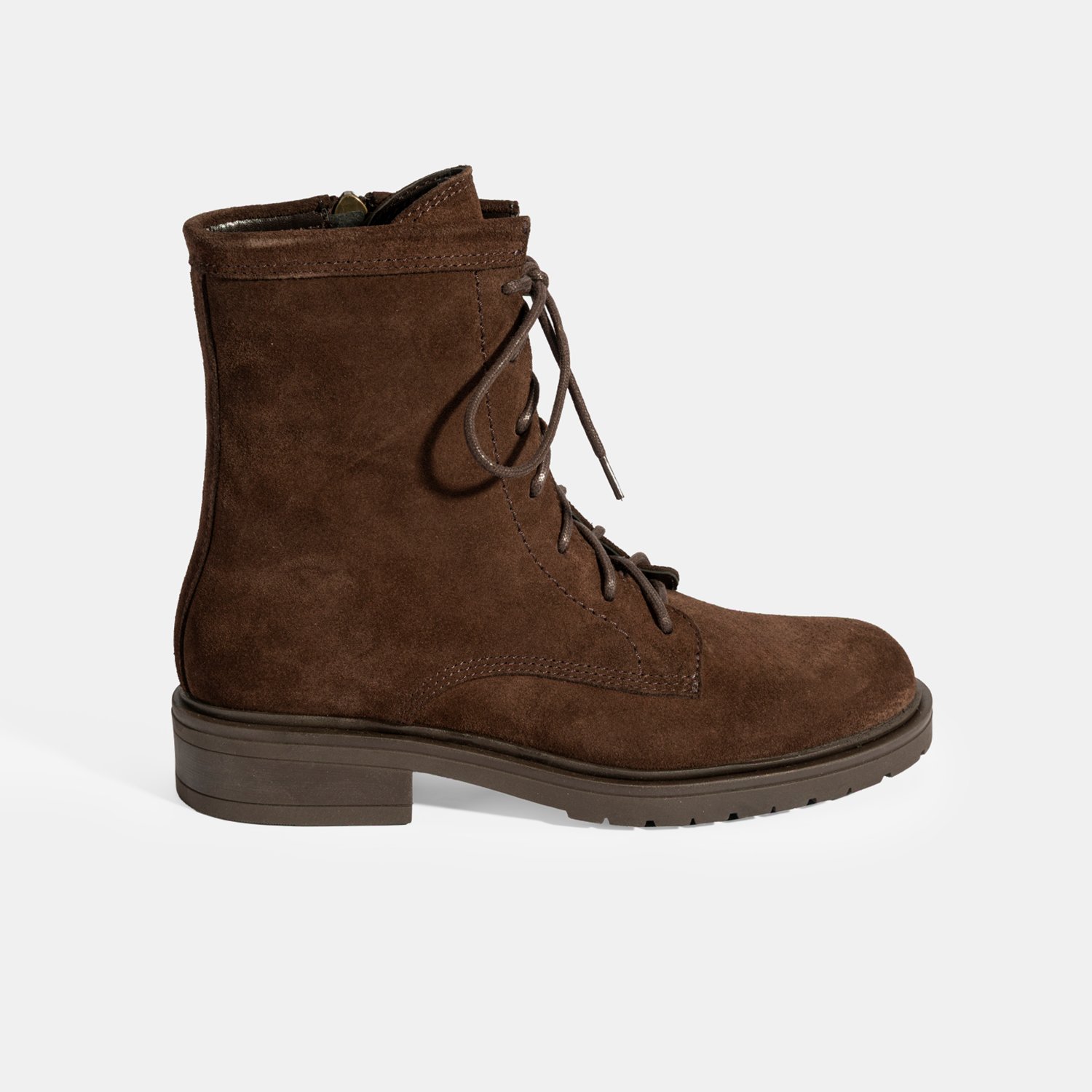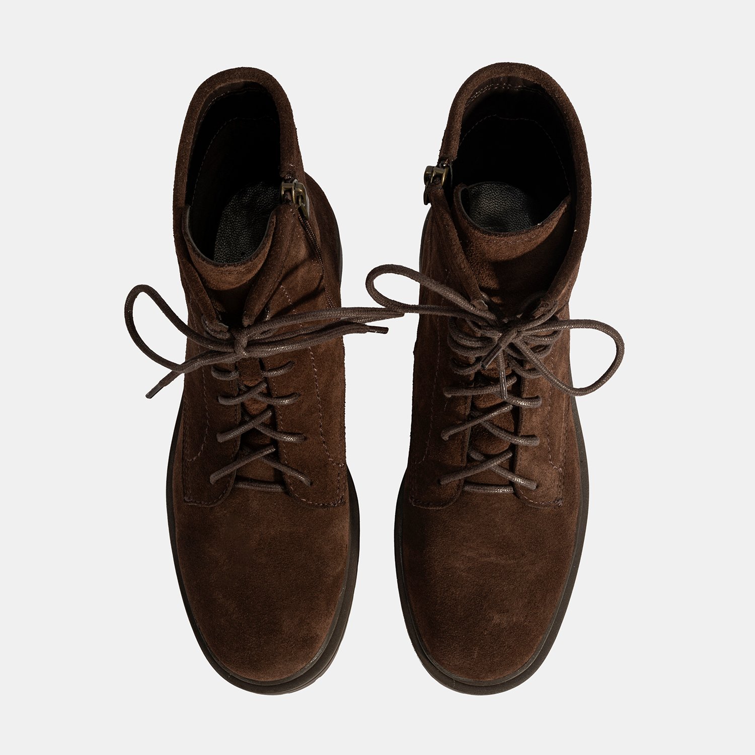 %100 süet deri, deri iç tabanlı, tekstil astarlı, termo tabanlı, bağcık detaylı, içten fermuarlı kadın bot. Topuk yüksekliği 3 cm