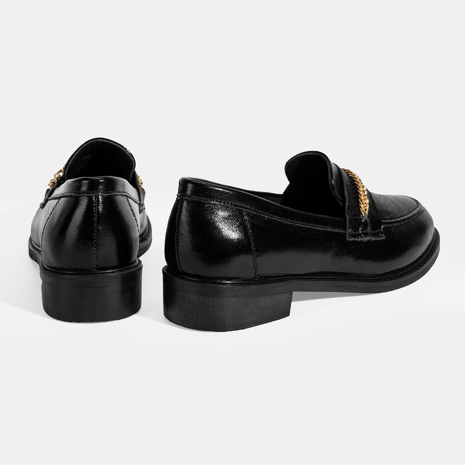 Kadın Siyah Zincir Aksesuarlı Deri Loafer