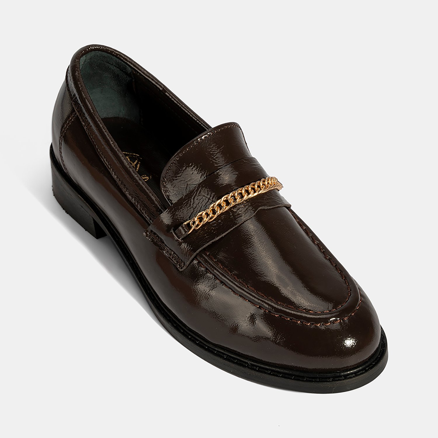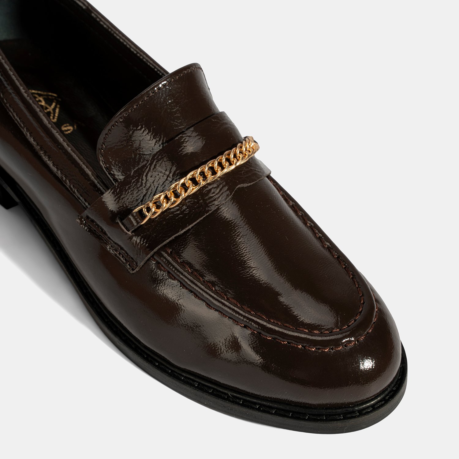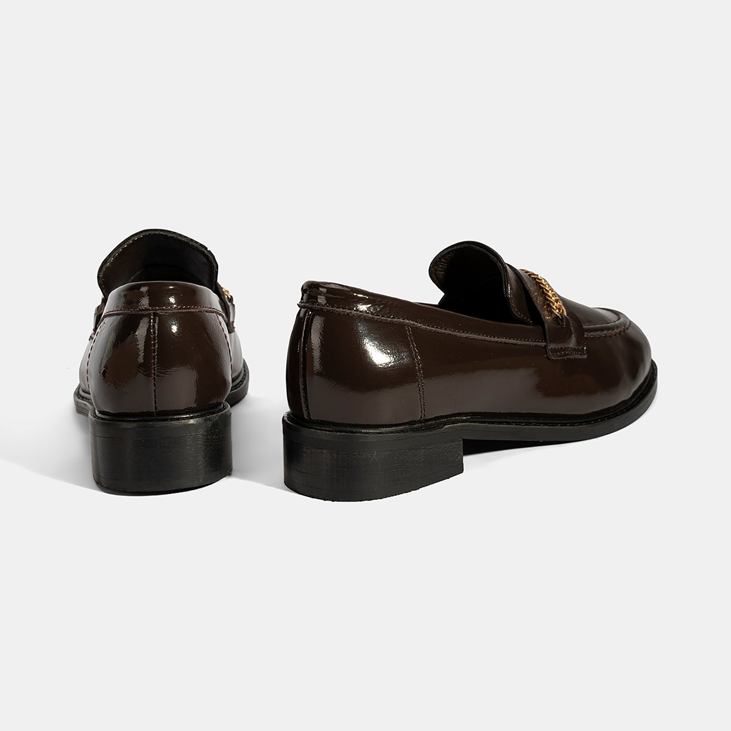 Kadın Kahve Zincir Aksesuarlı Deri Loafer