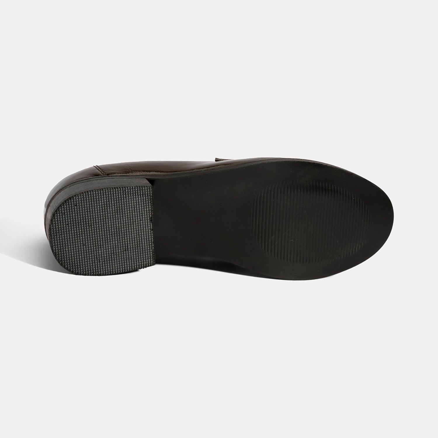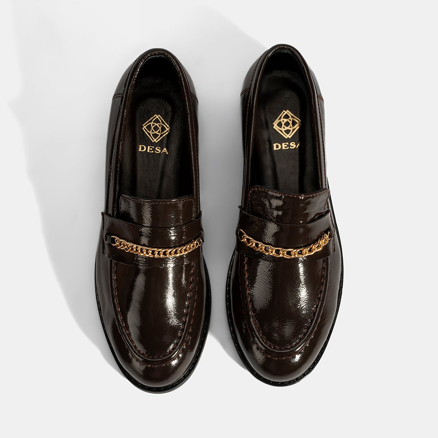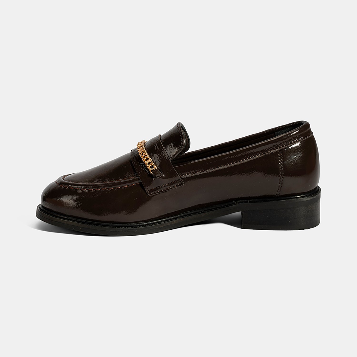 Kadın Kahve Zincir Aksesuarlı Deri Loafer