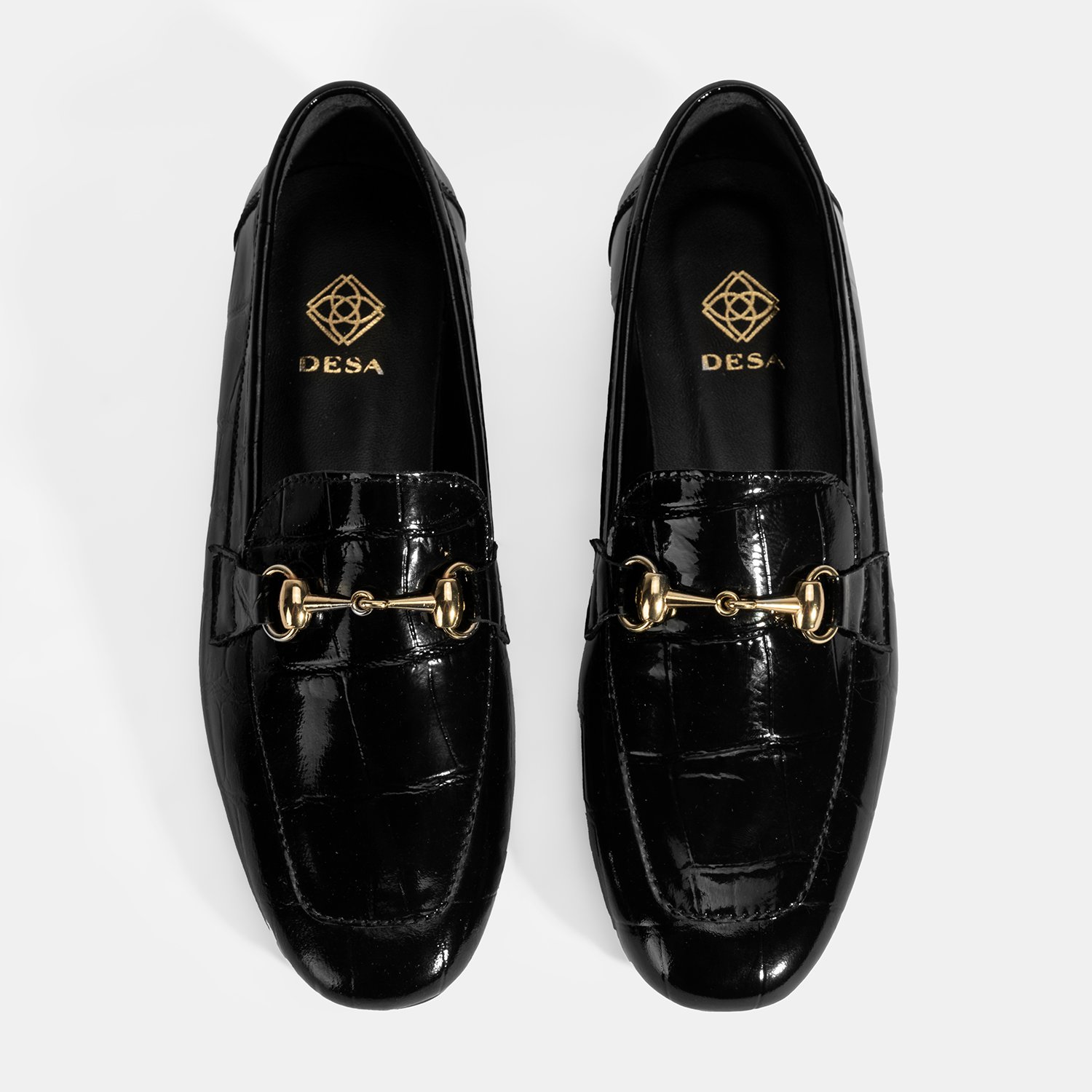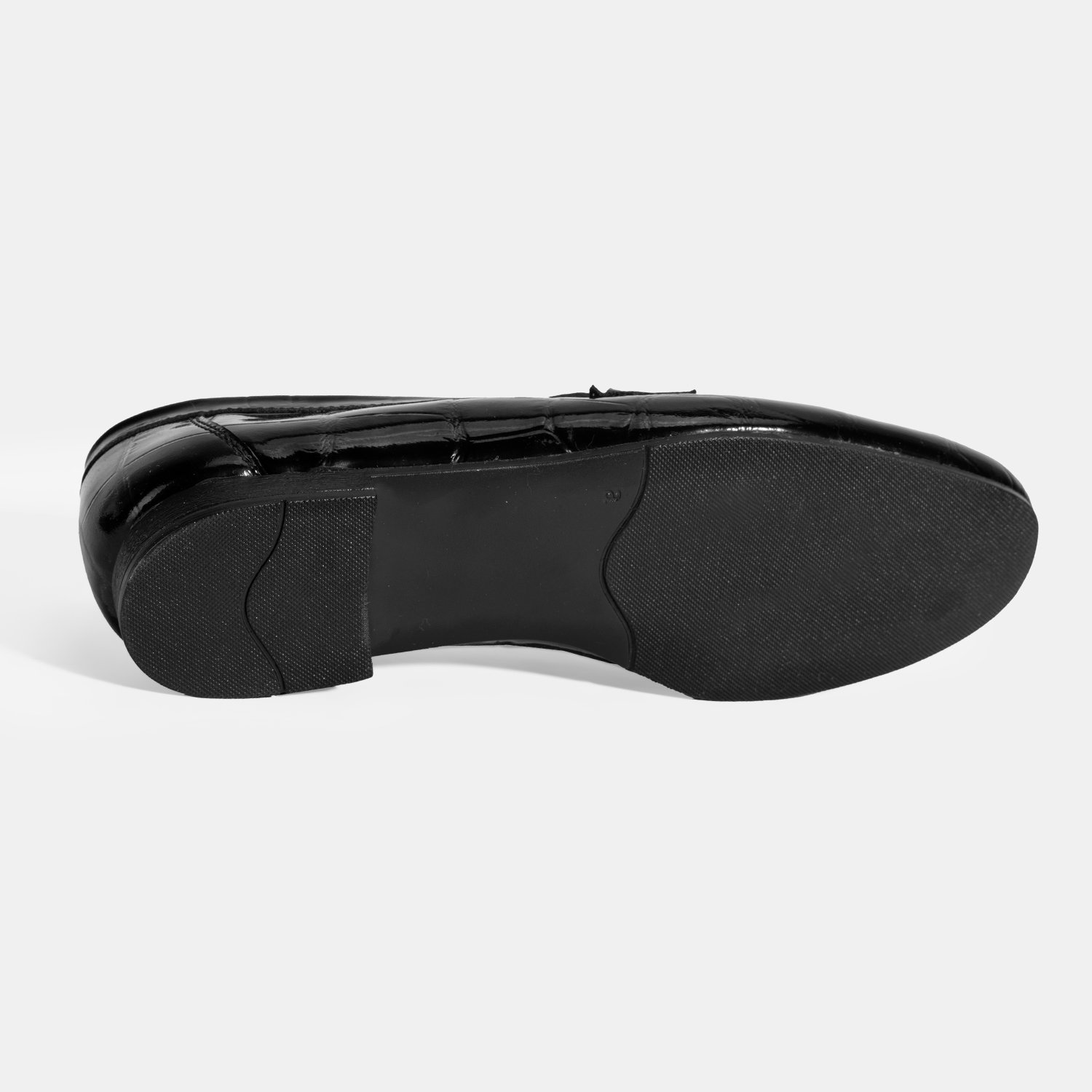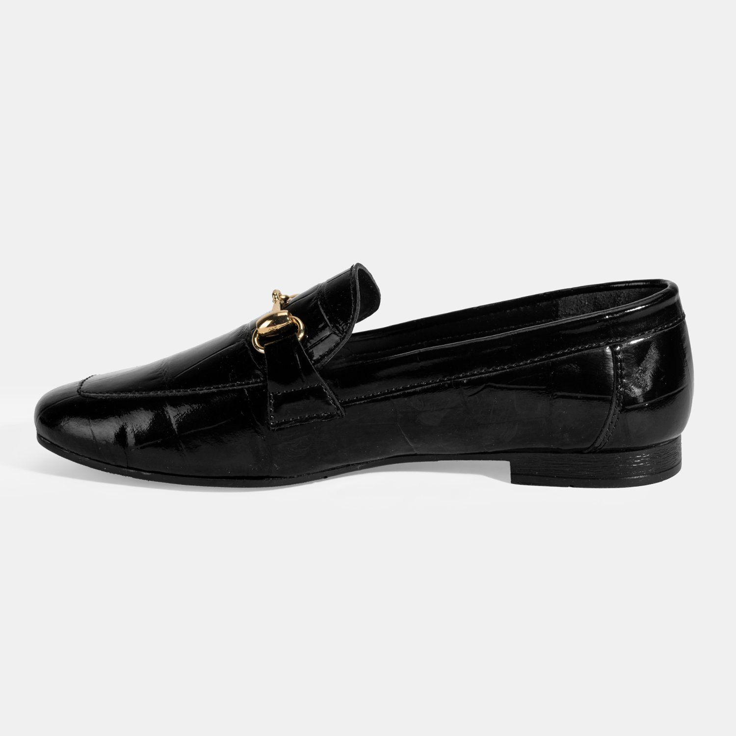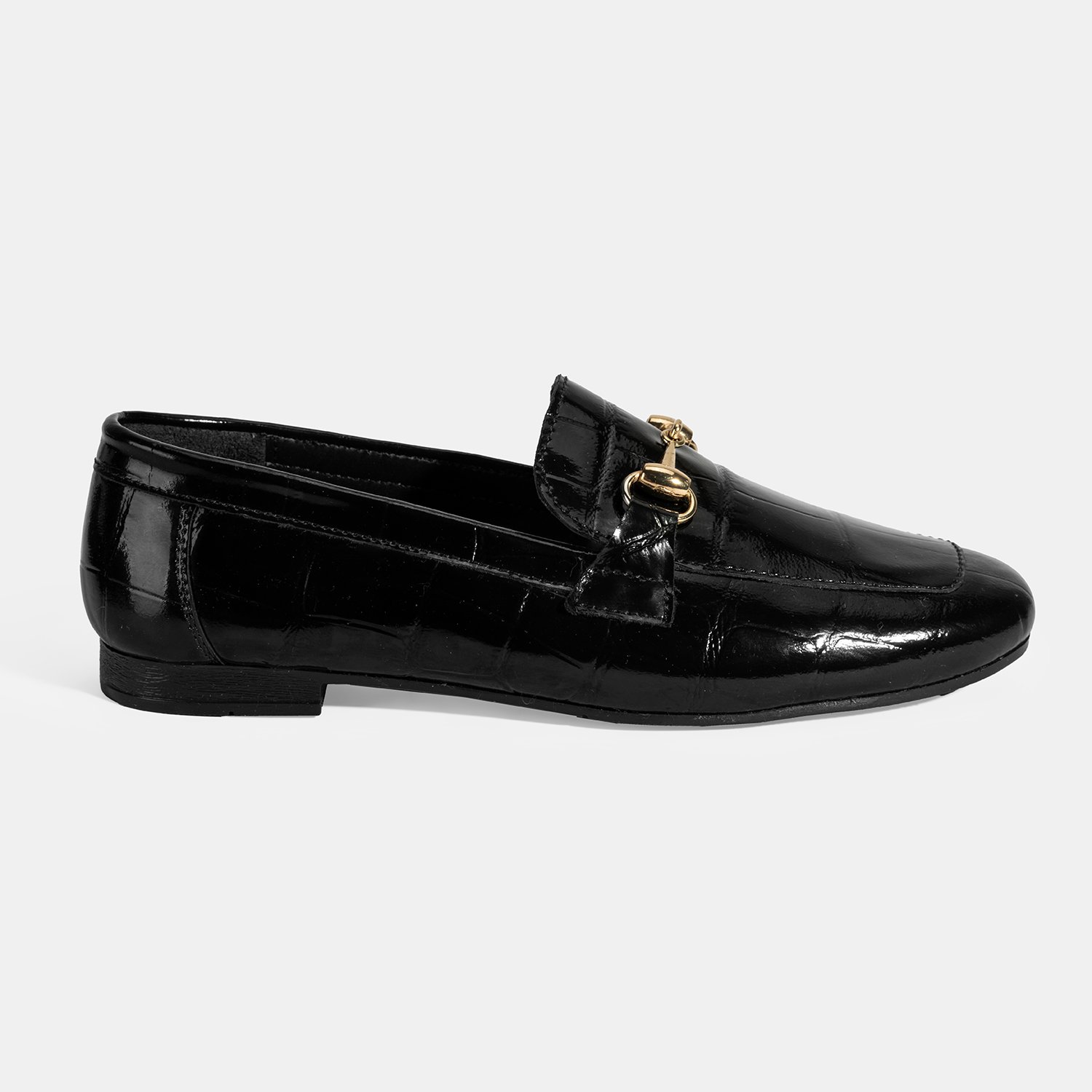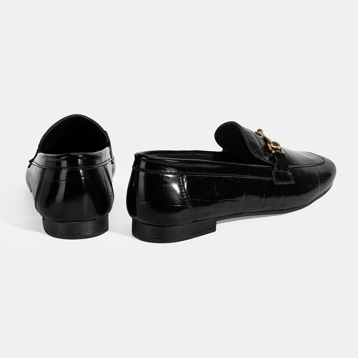 Kadın Siyah Kroko Baskılı Toka Detaylı Deri Loafer