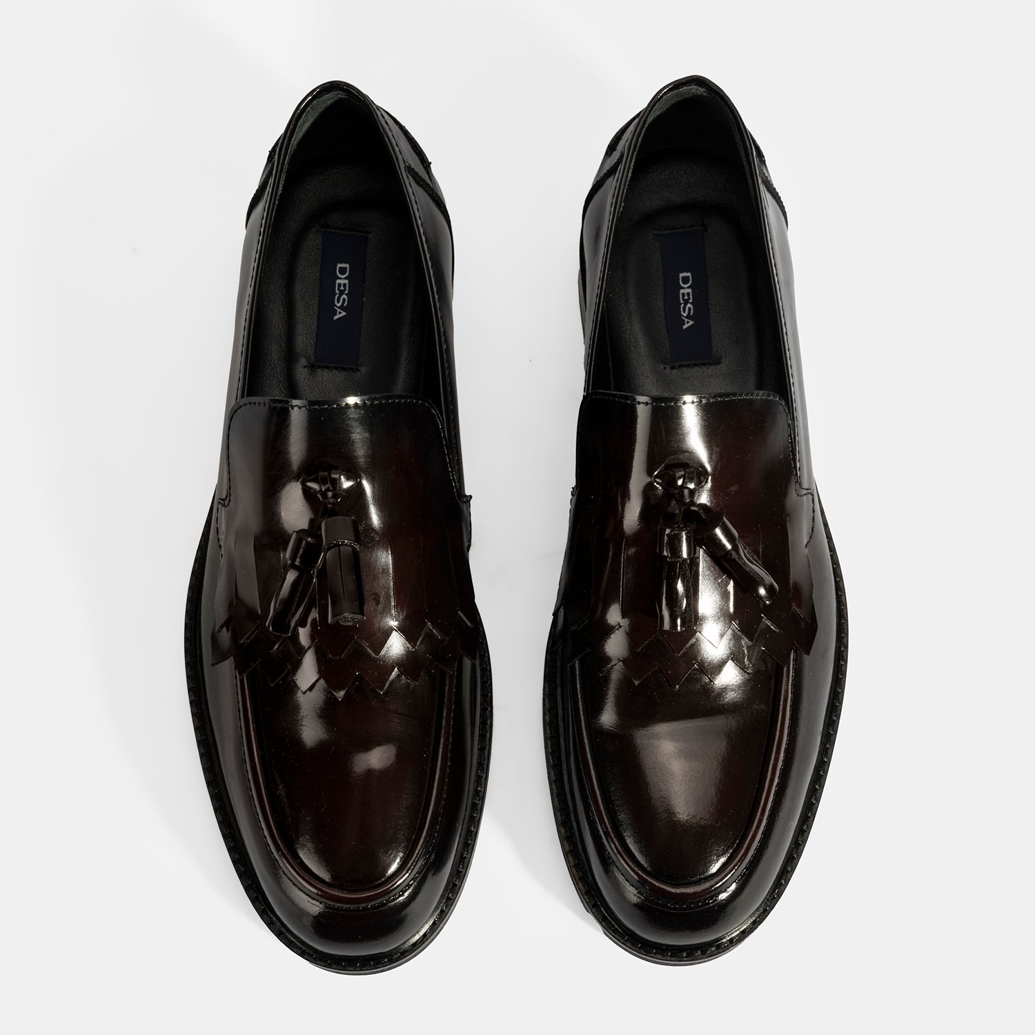 Erkek Bordo Püskül Detaylı Deri Loafer