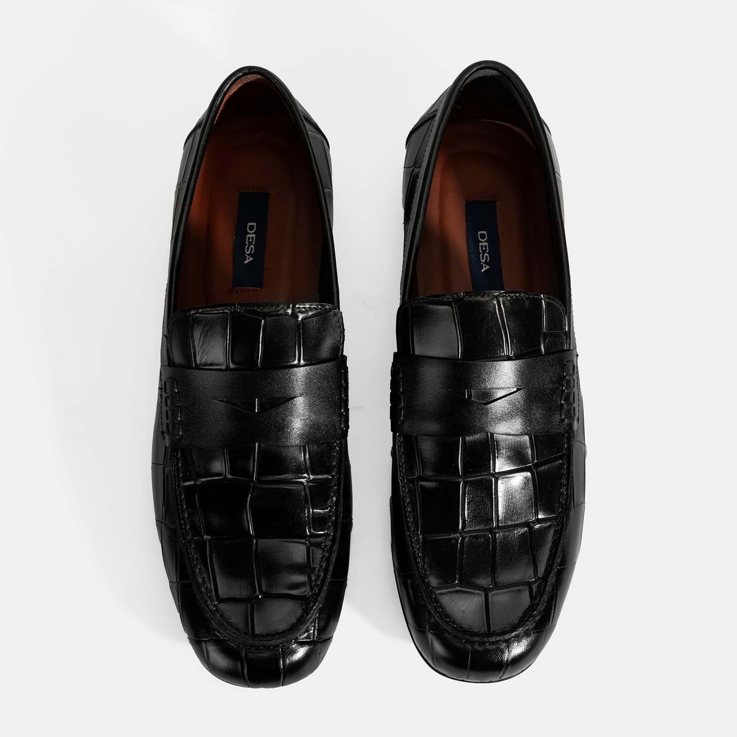 Erkek Siyah Kroko Baskılı Deri Loafer