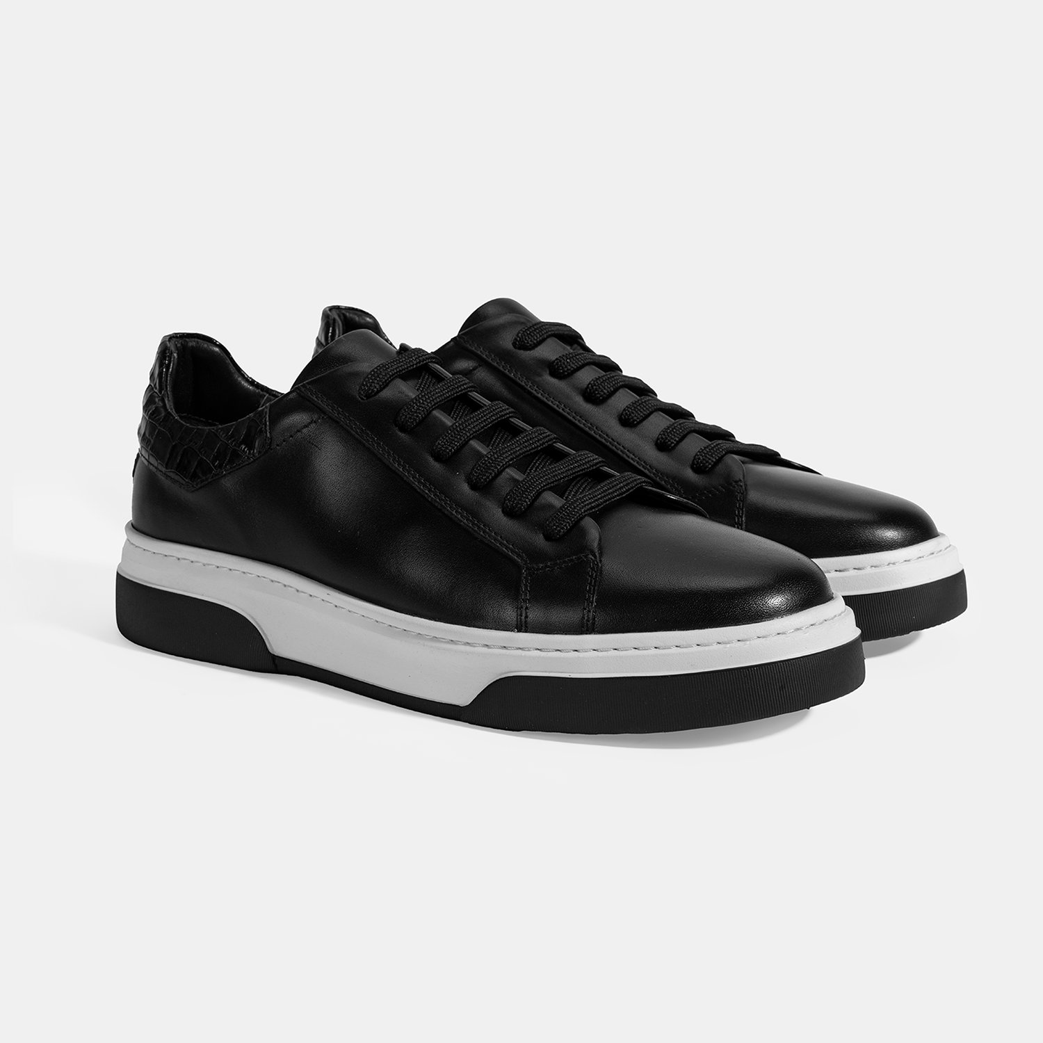 Erkek Siyah Bağcıklı Deri Spor Ayakkabı