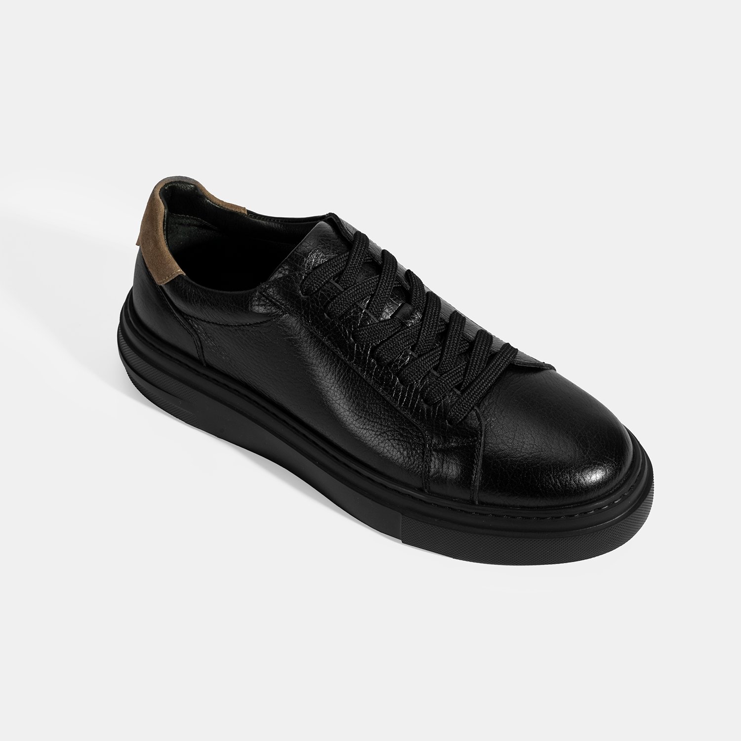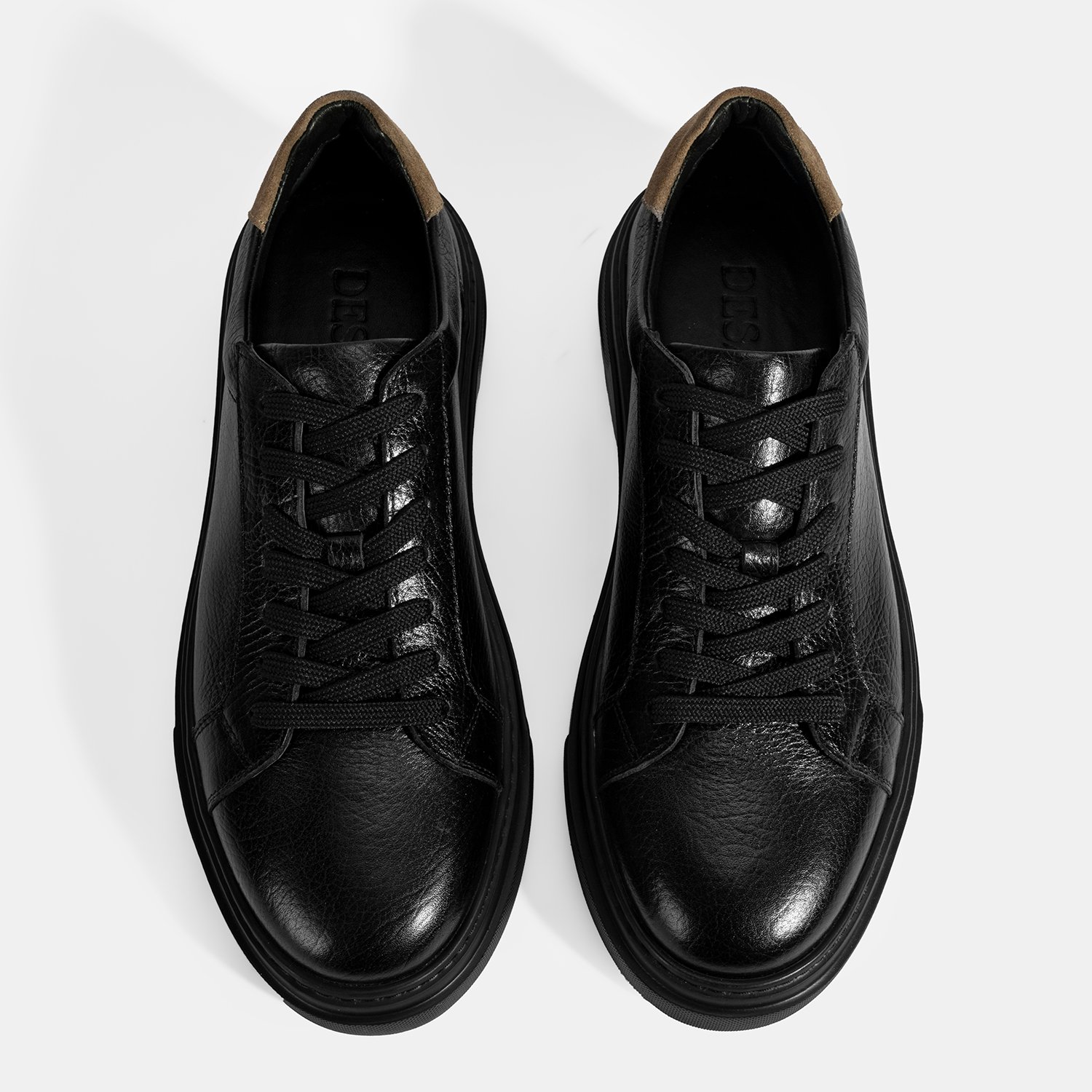 Erkek Siyah Bağcıklı Deri Günlük Ayakkabı