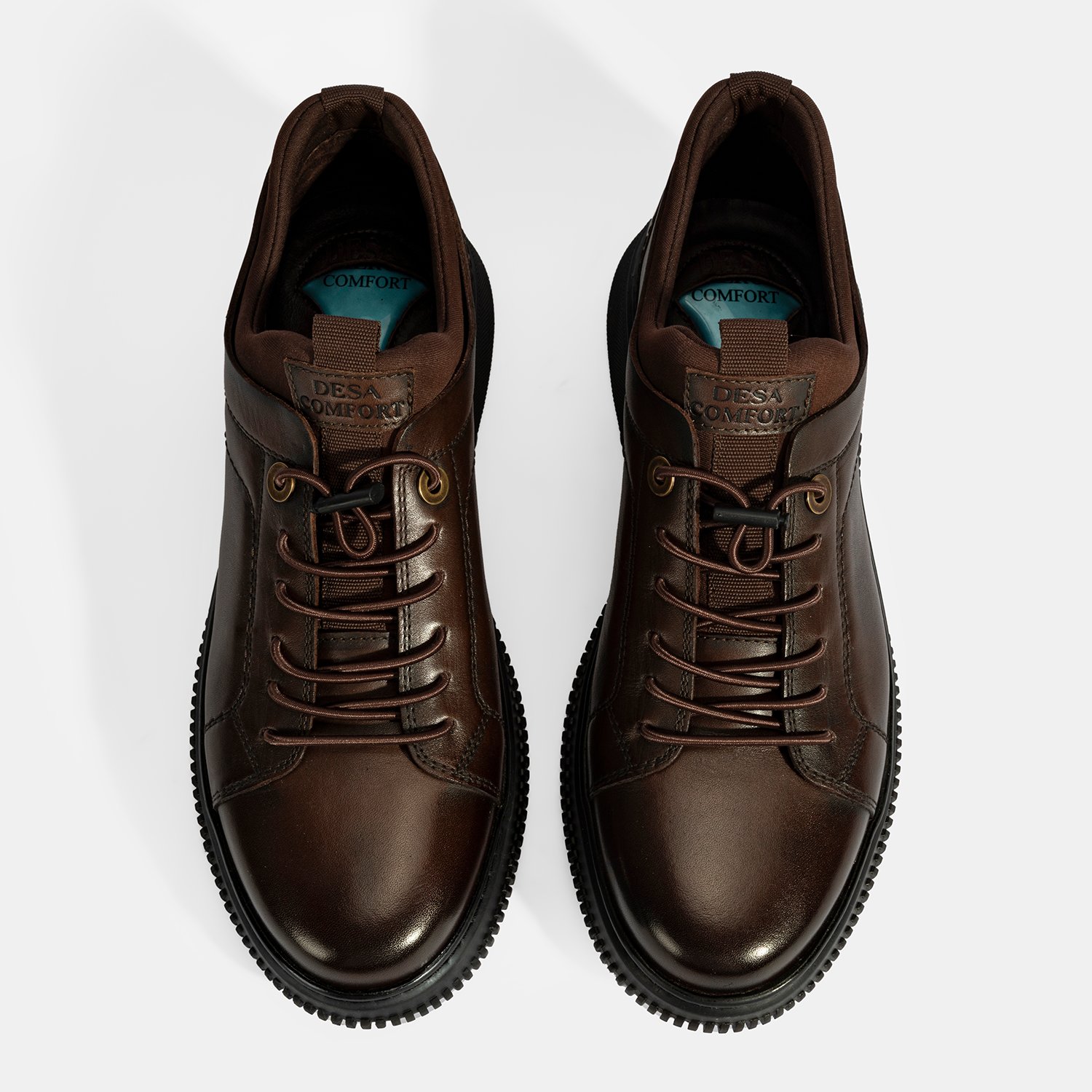 Erkek Kahve DesaComfort Bağcıklı Deri Günlük Ayakkabı