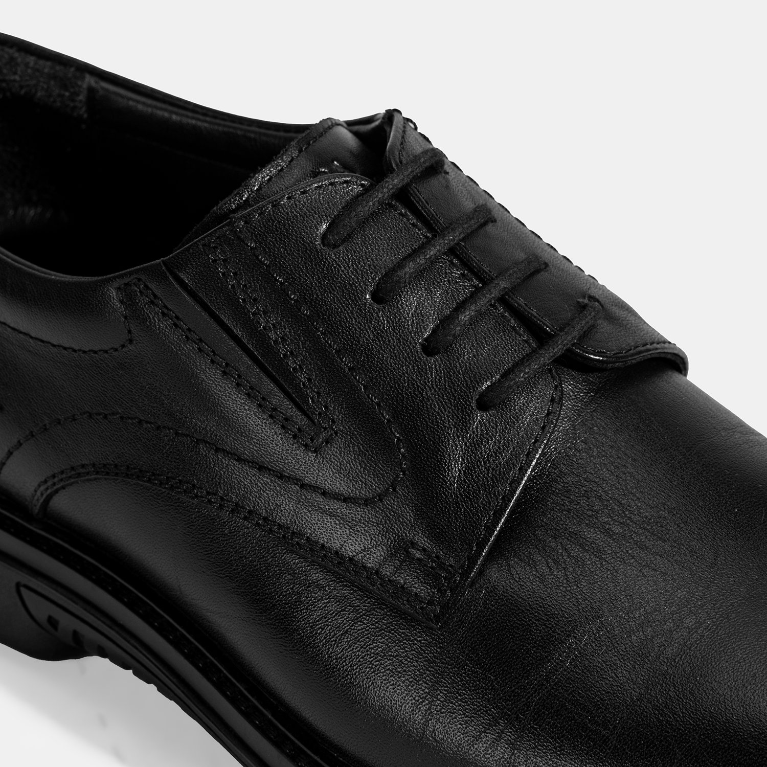 %100 deri, hava akışı sağlayan mostra ve deri astarlı, lastik detaylı bağcıklı, hava akışı sağlayan kauçuk tabanlı erkek ayakkabı.