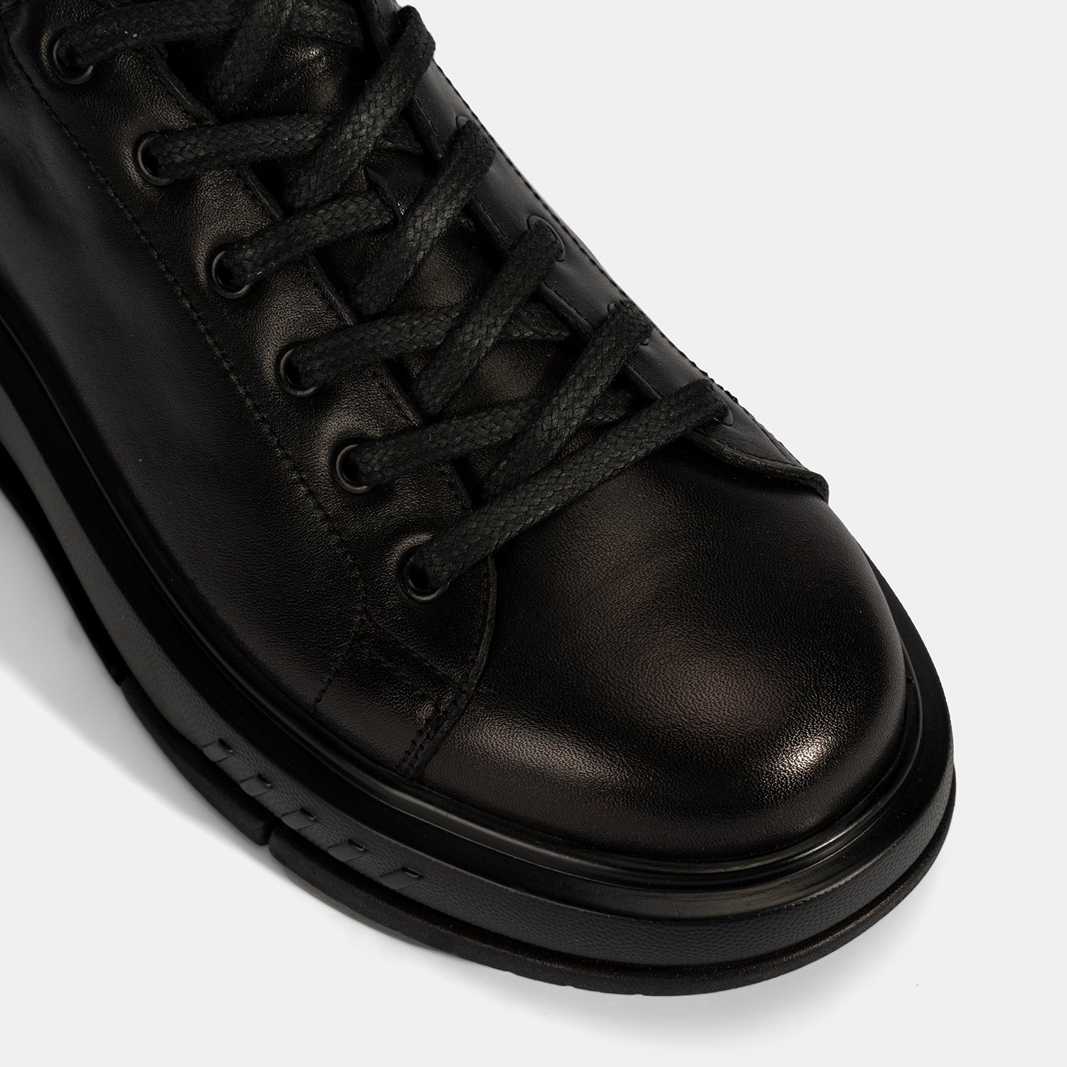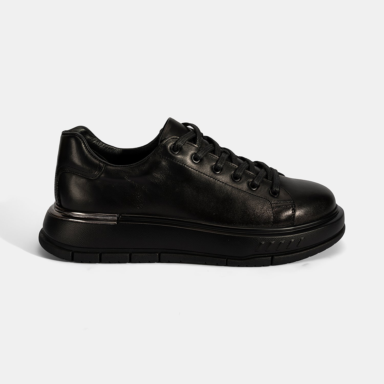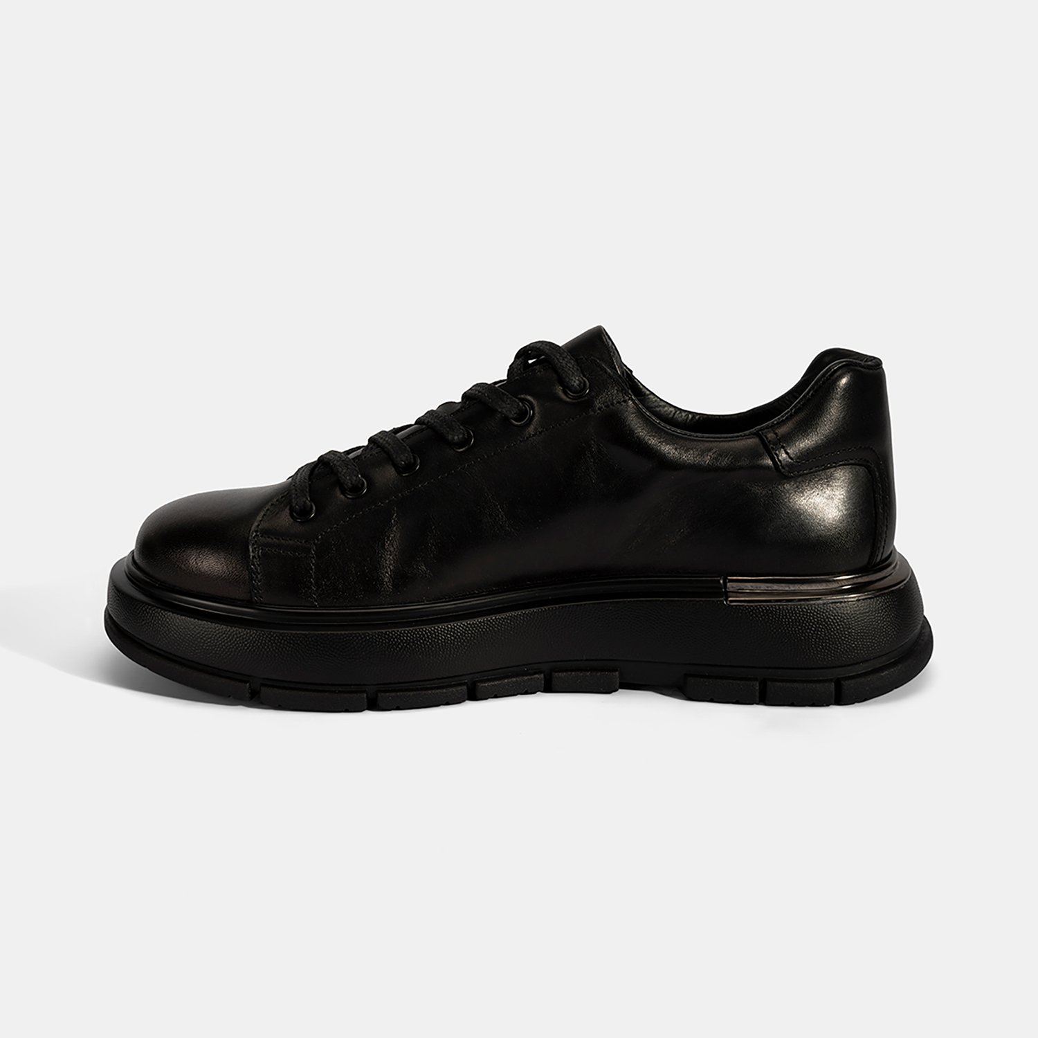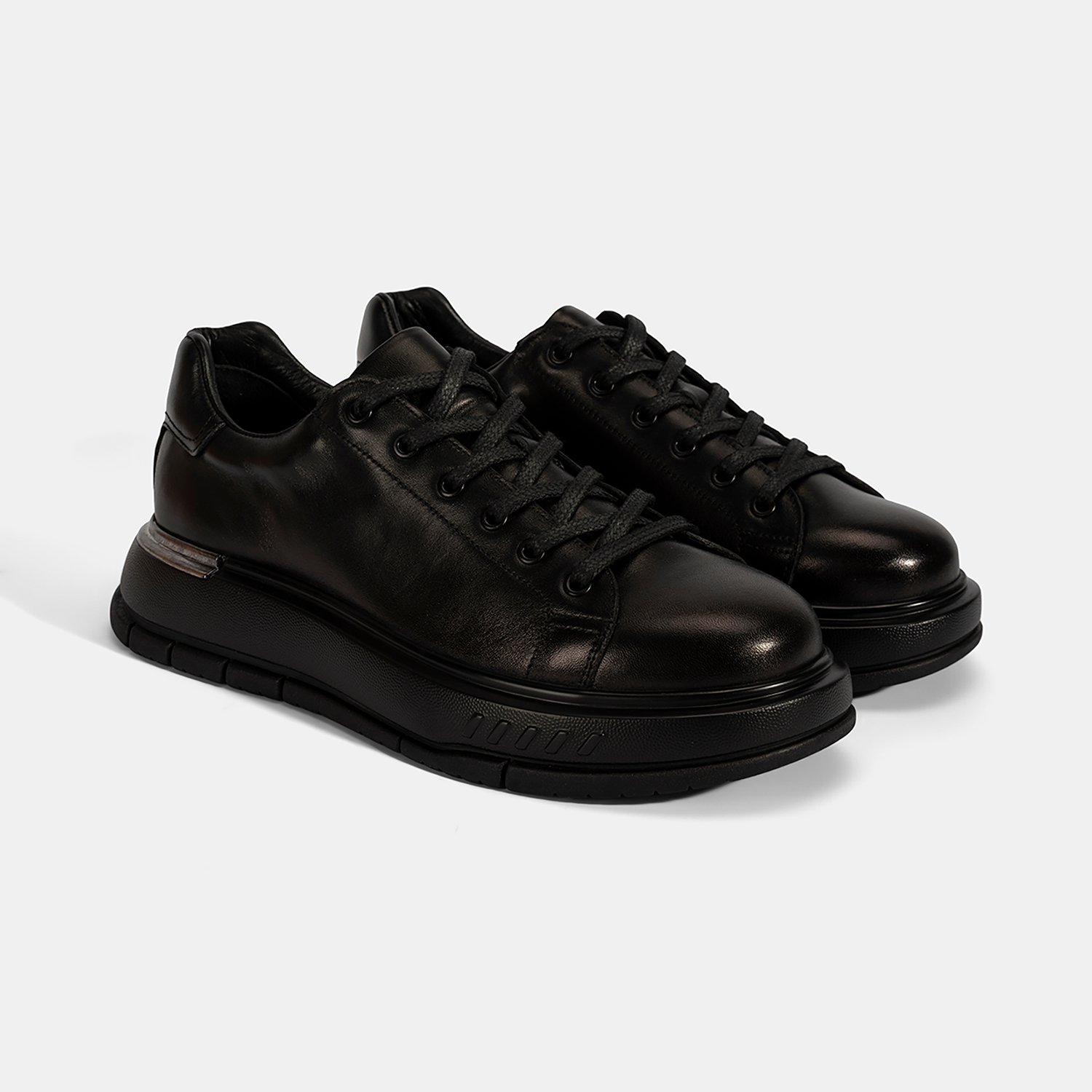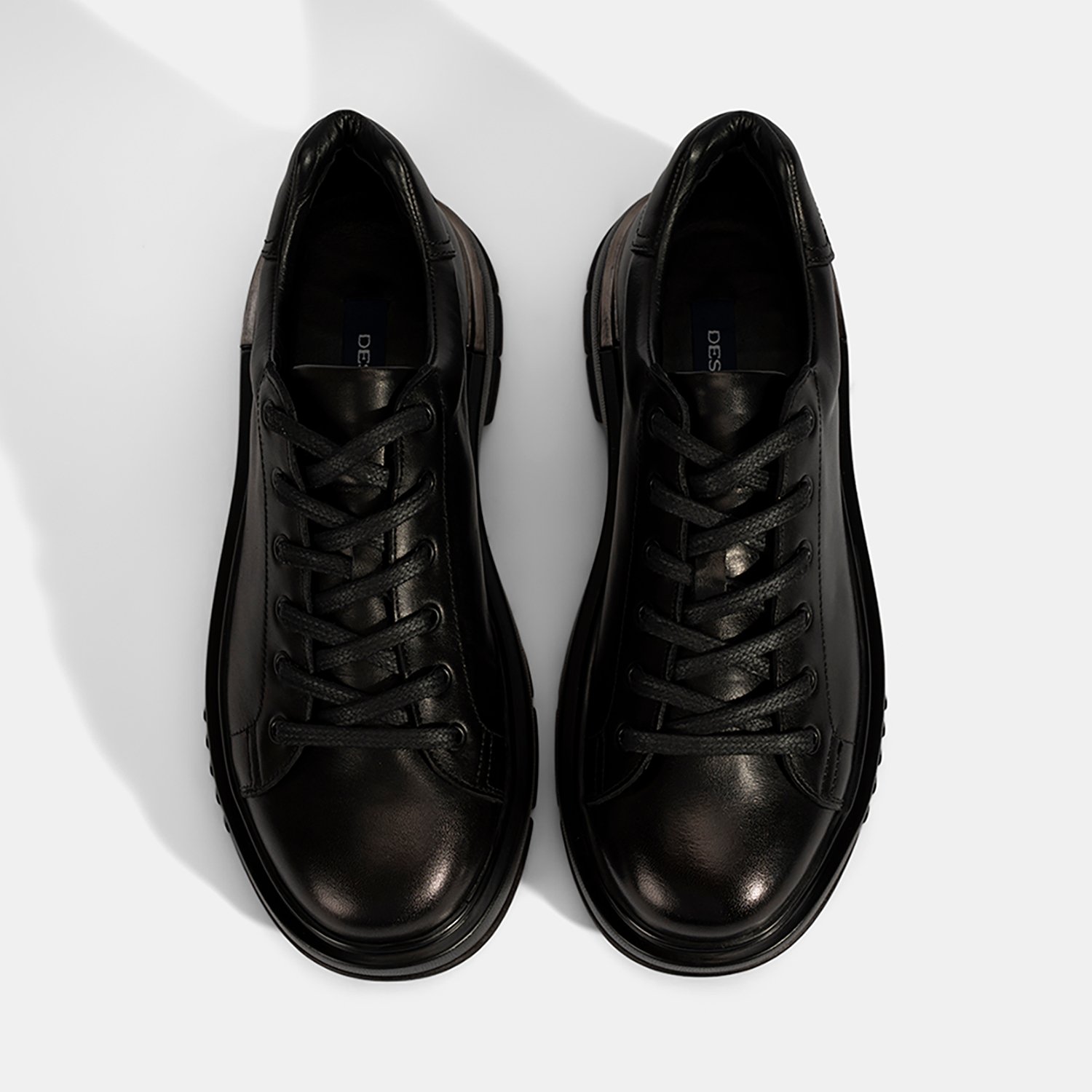 Erkek Siyah Bağcıklı Kalın Tabanlı Deri Ayakkabı