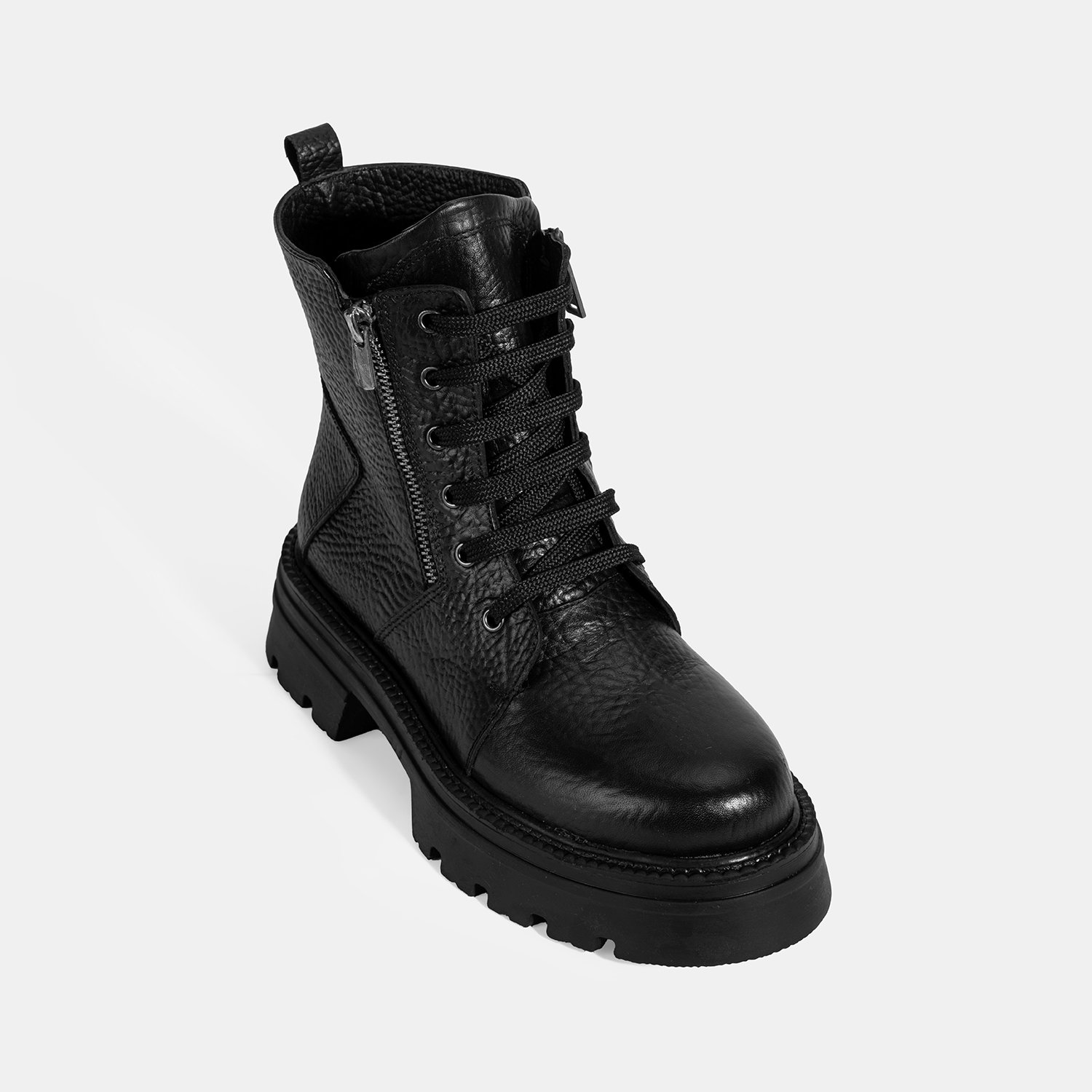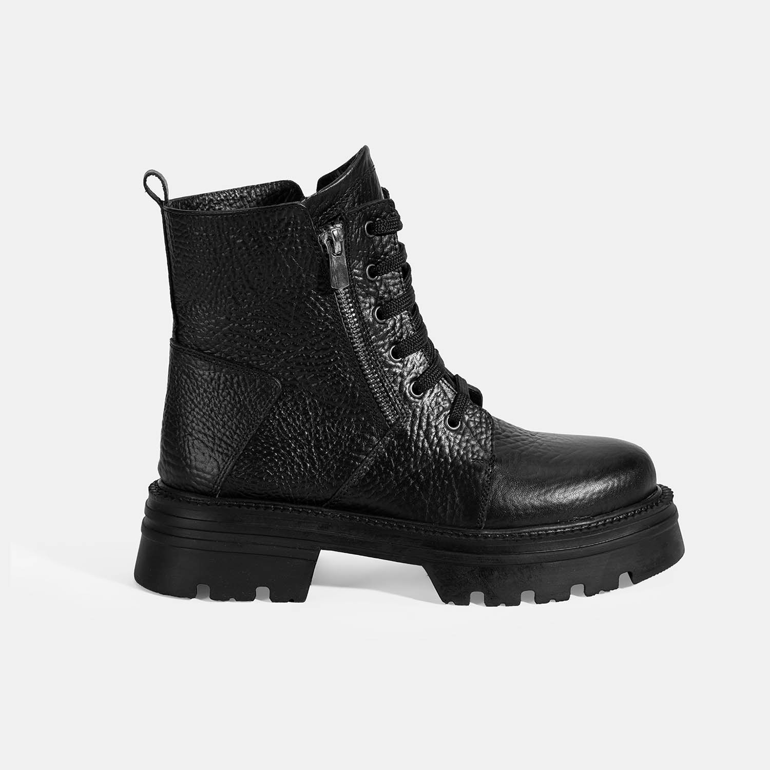 %100 deri, deri mostra, termo taban, fermuar detaylı, bağcıklı kadın bot.