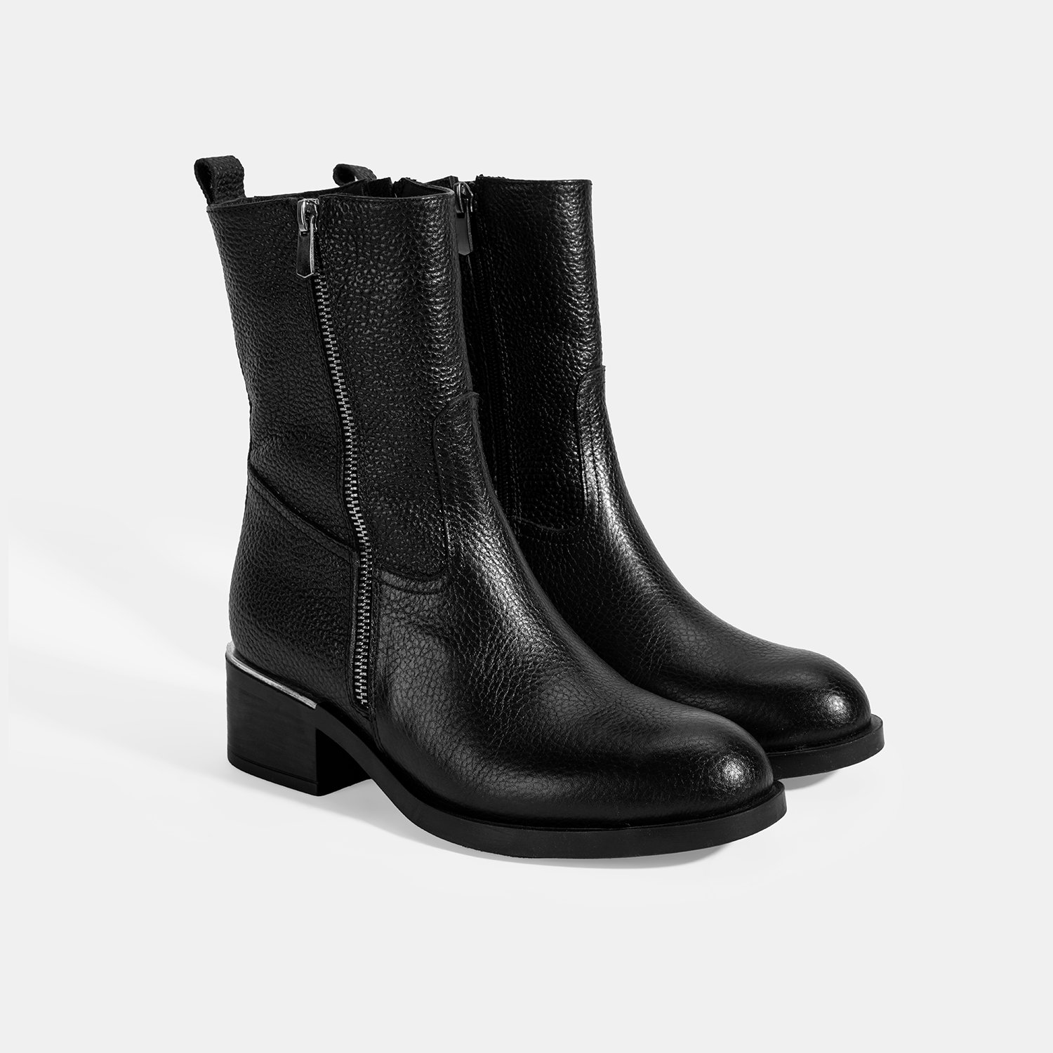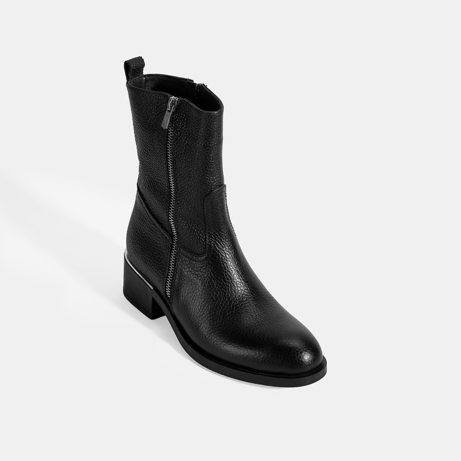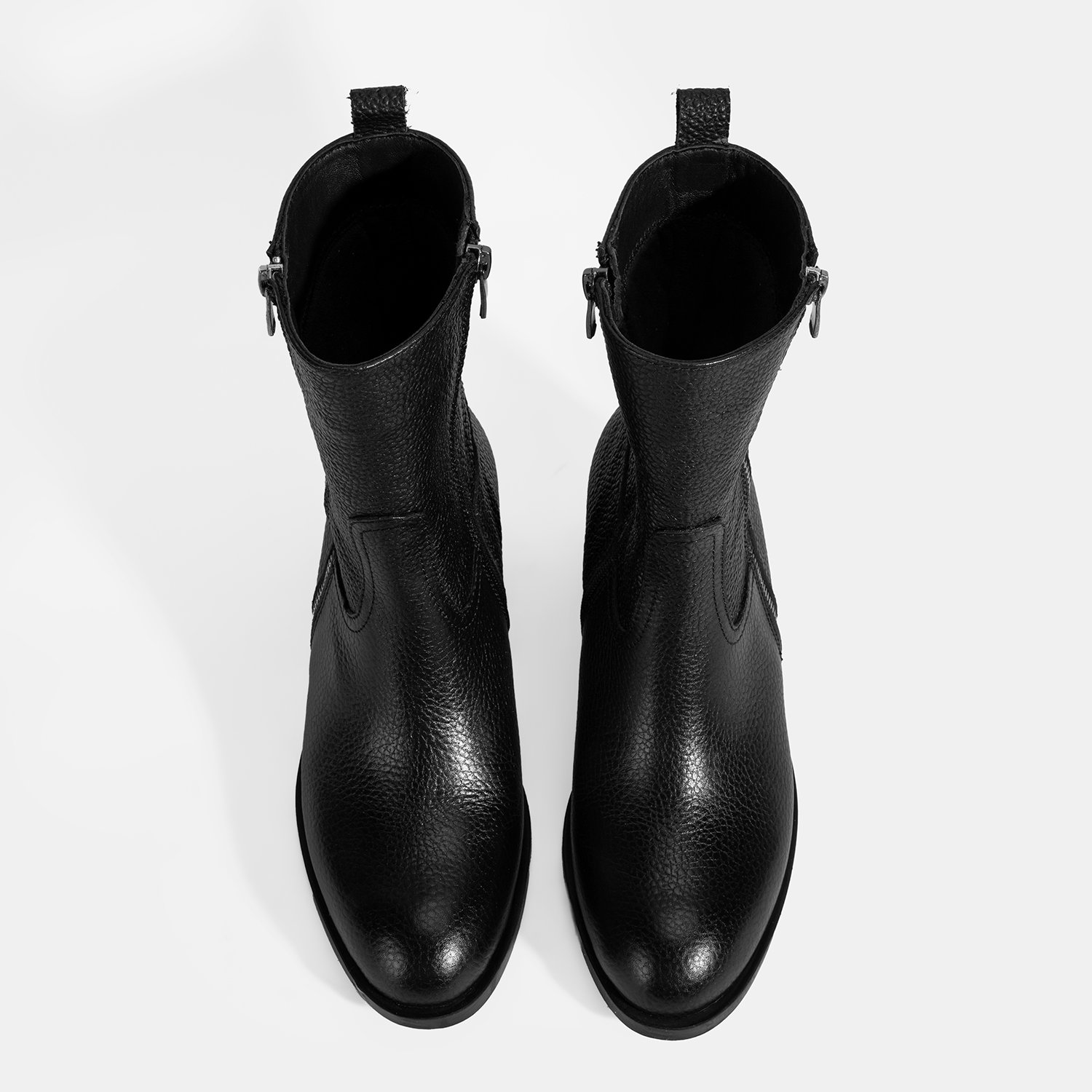 Kadın Siyah Fermuarlı Deri Topuklu Bot
