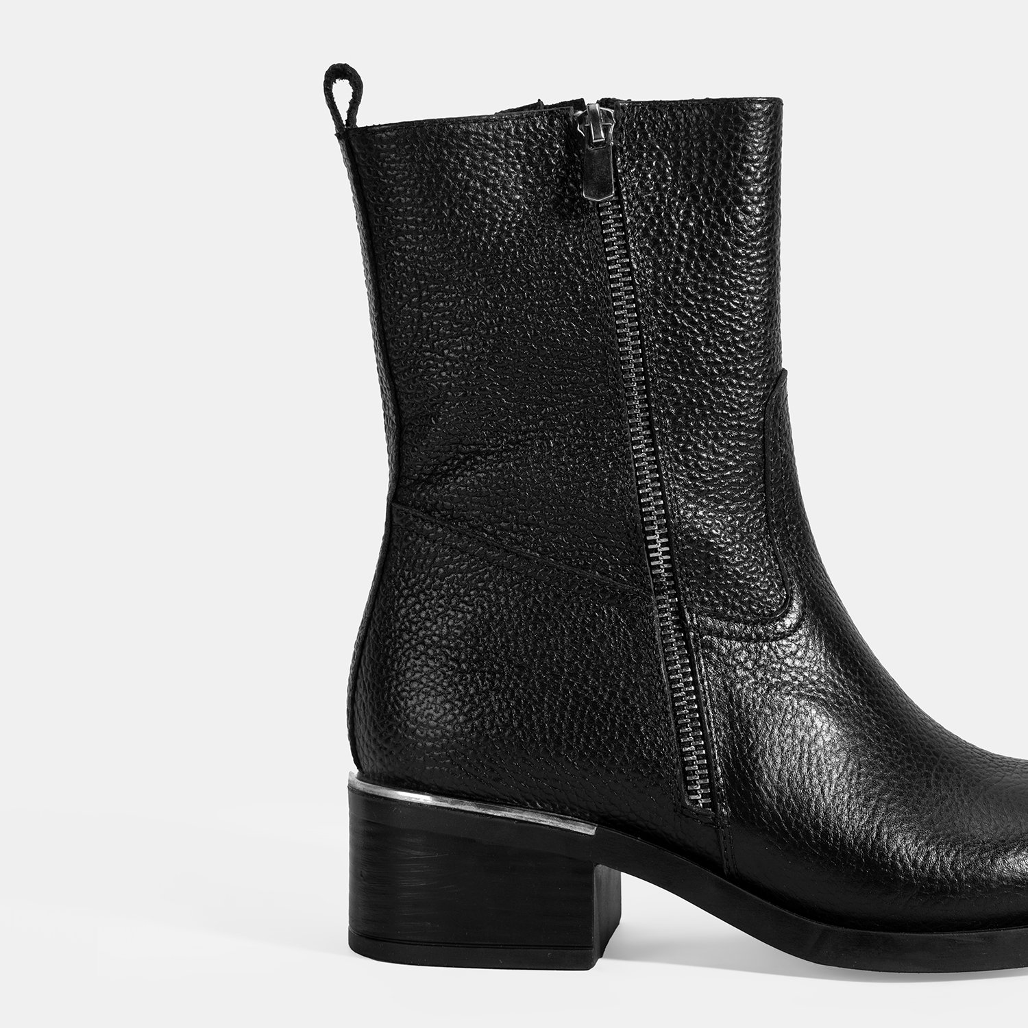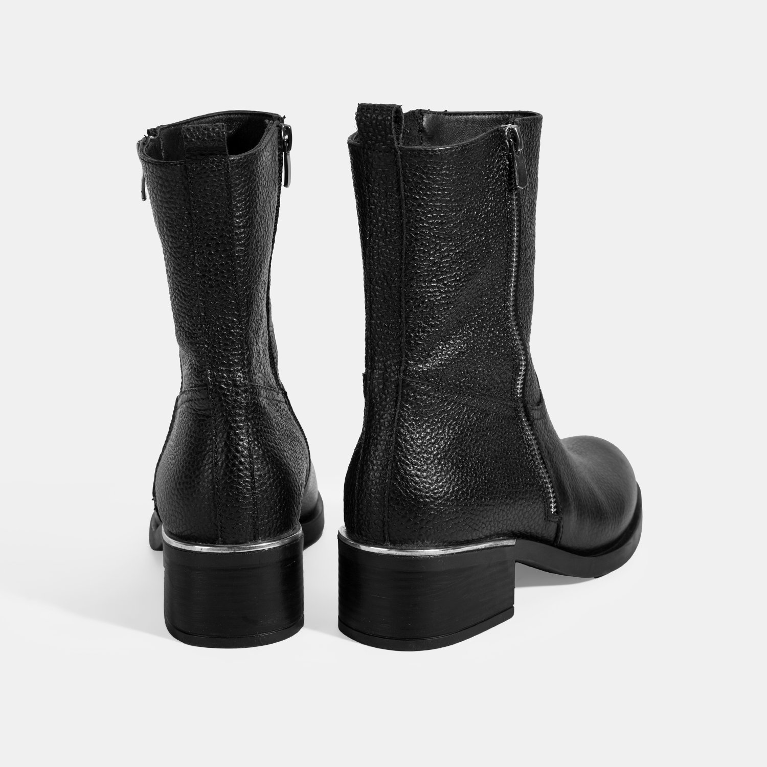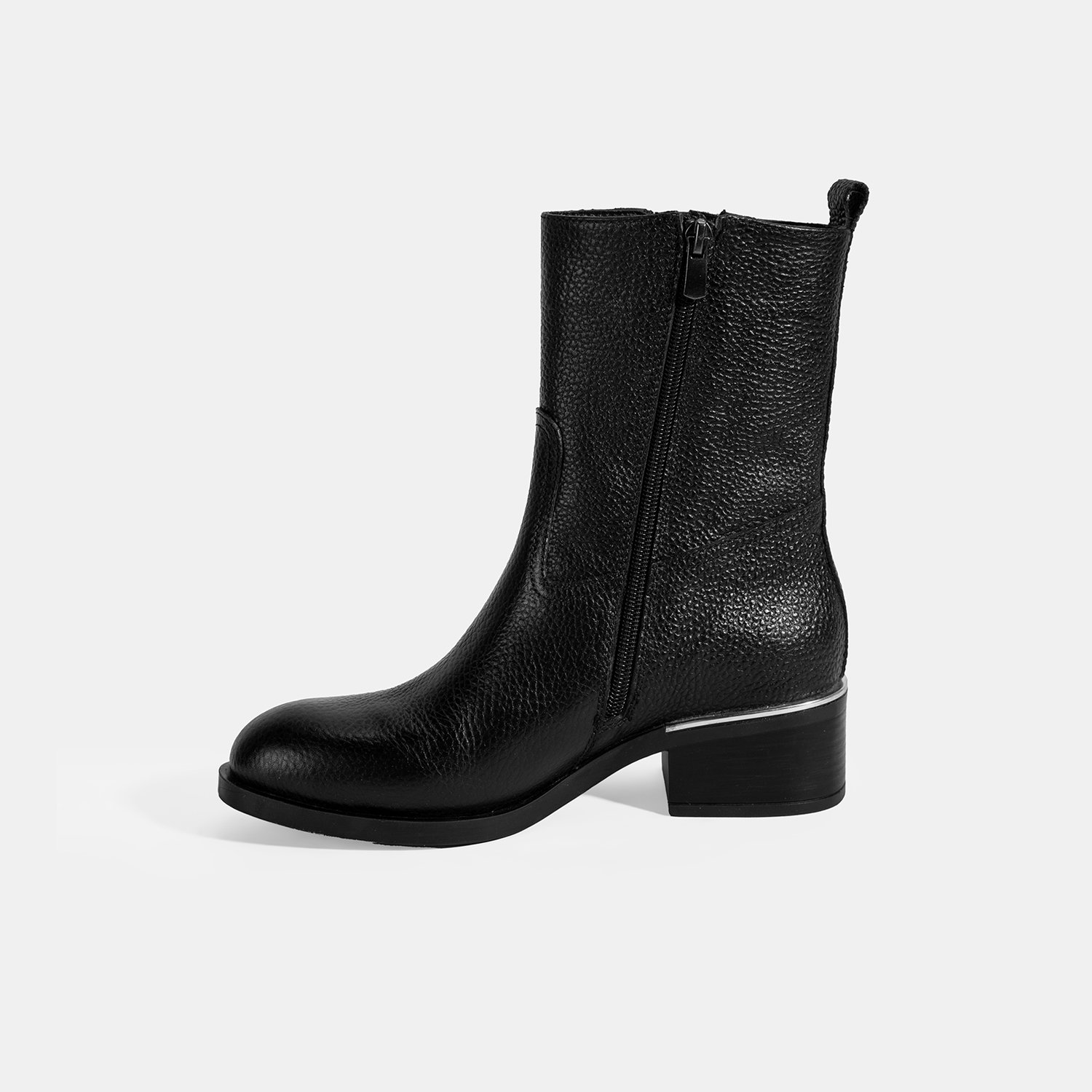 Kadın Siyah Fermuarlı Deri Topuklu Bot