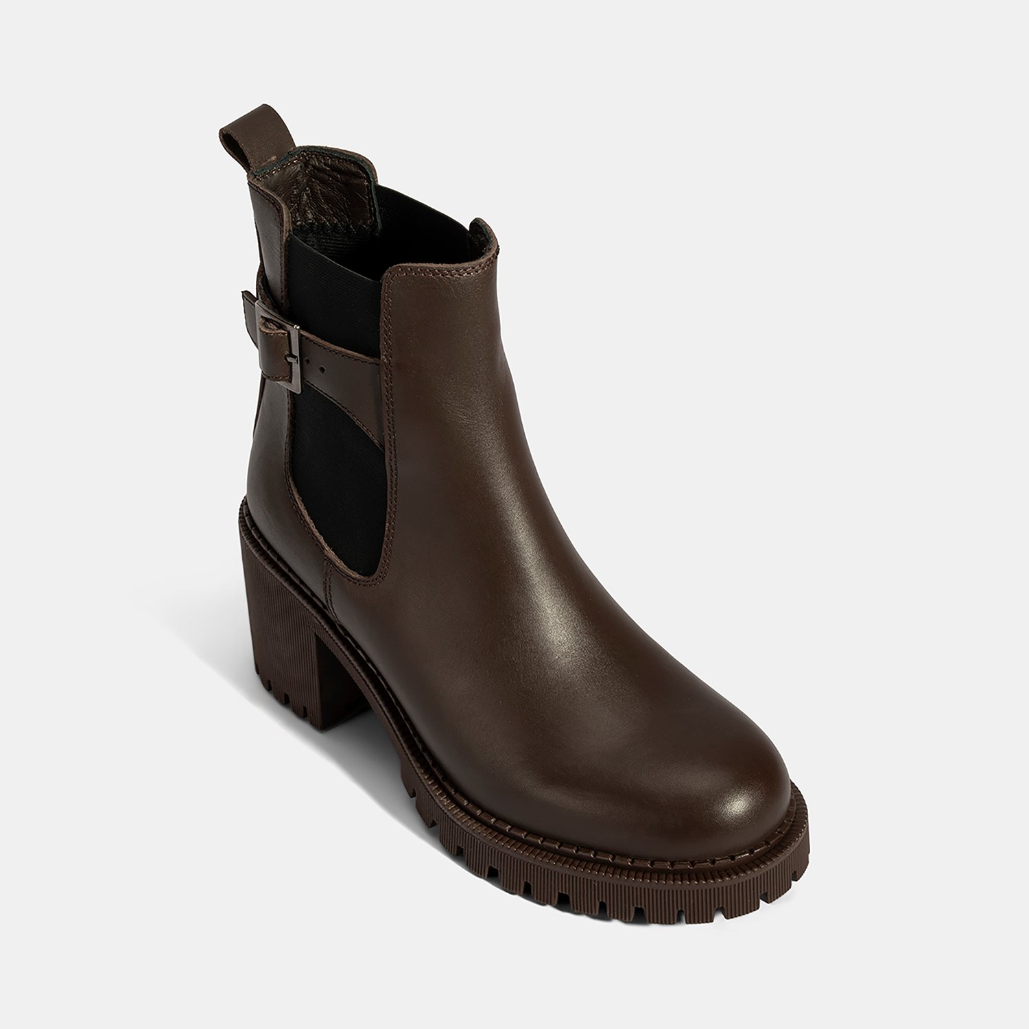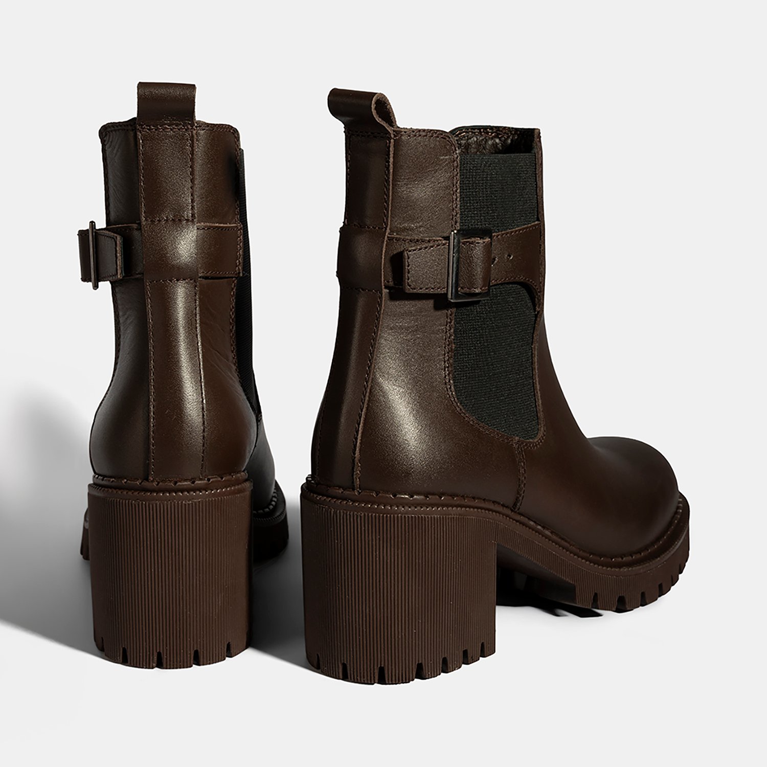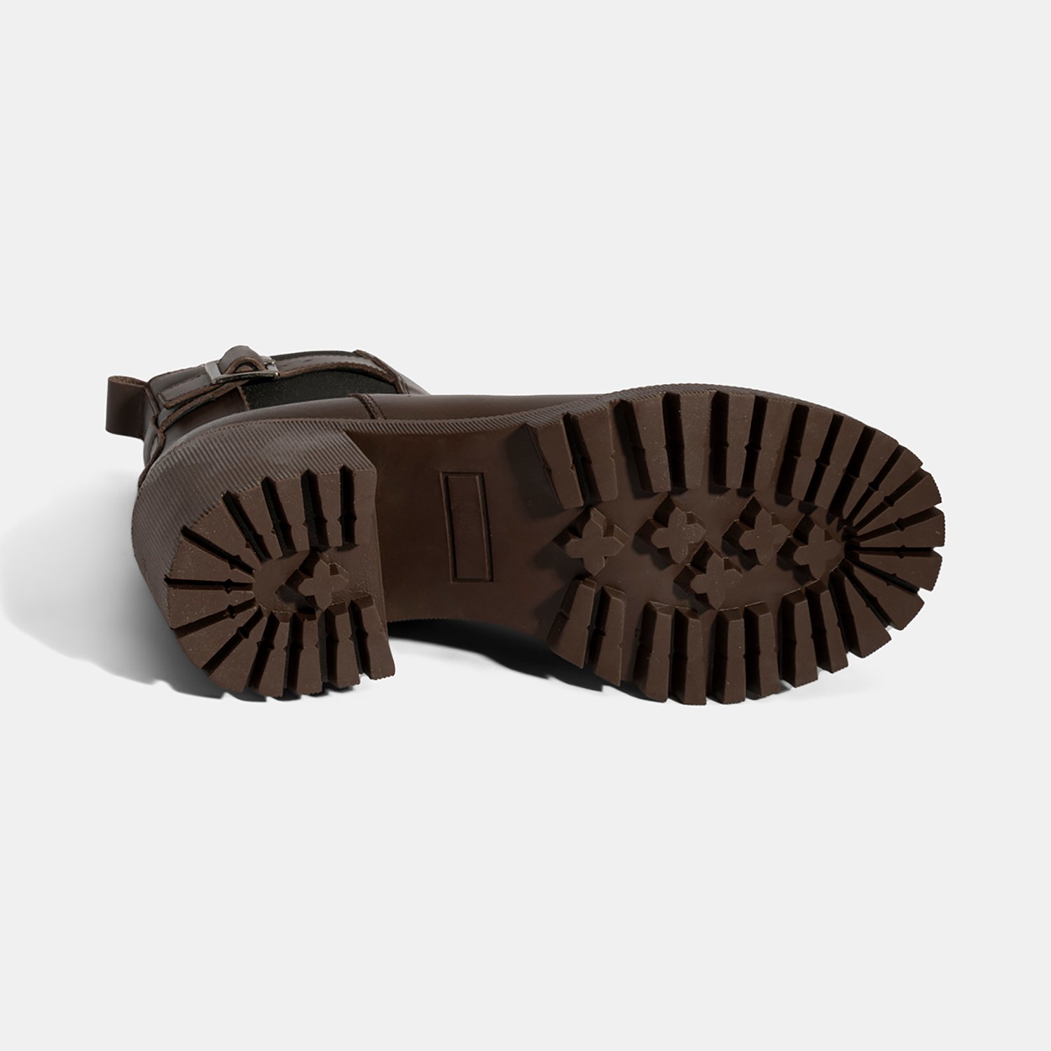 Kadın Kahve Metal Toka Detaylı Topuklu Bot