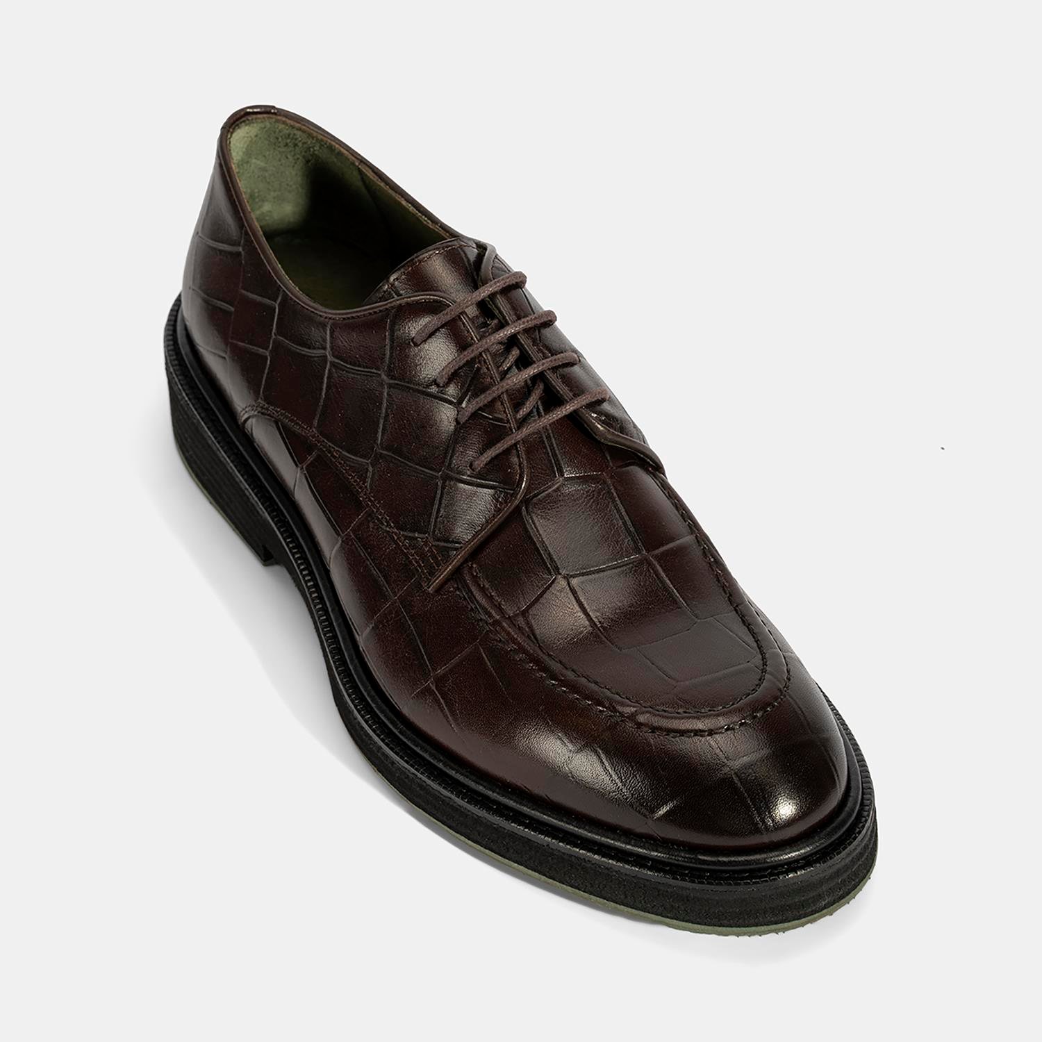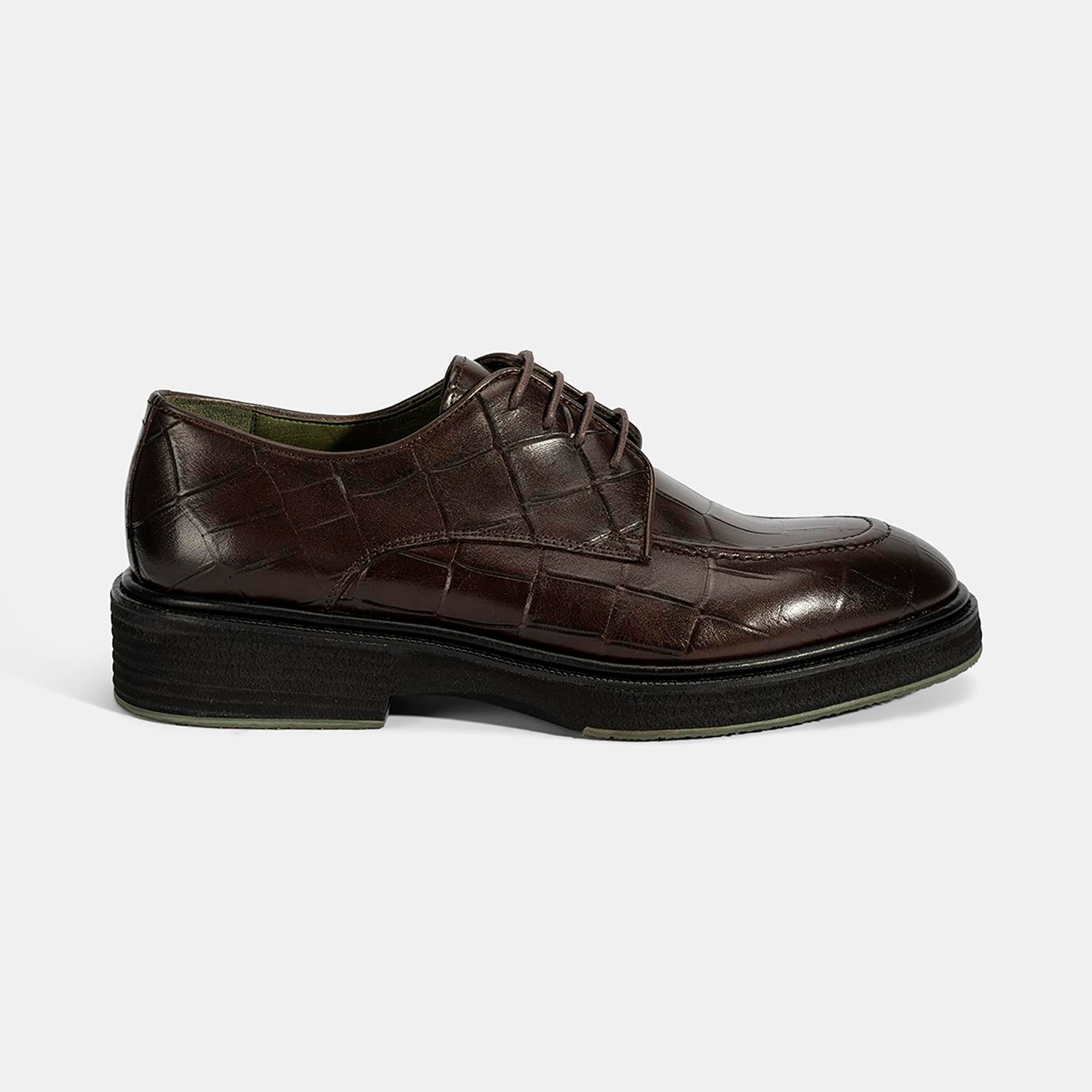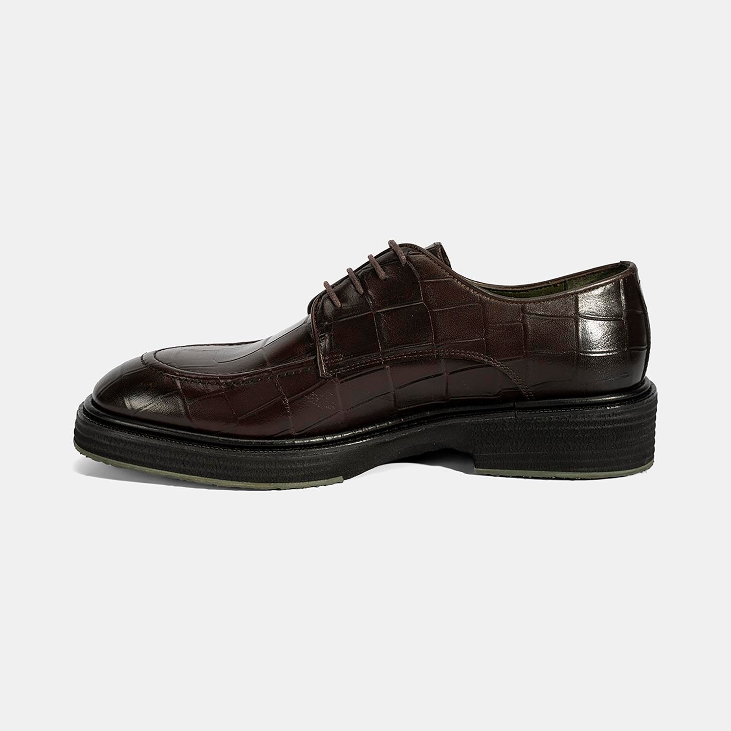 Erkek Kahve Bağcıklı Kroko Baskılı Deri Klasik Ayakkabı