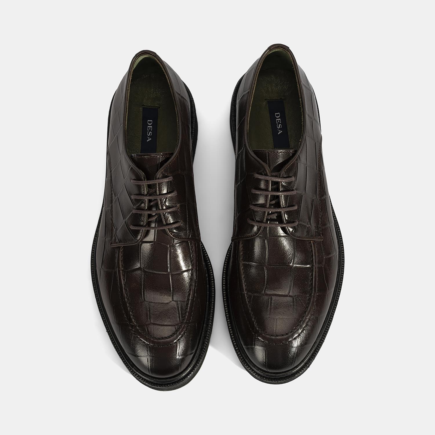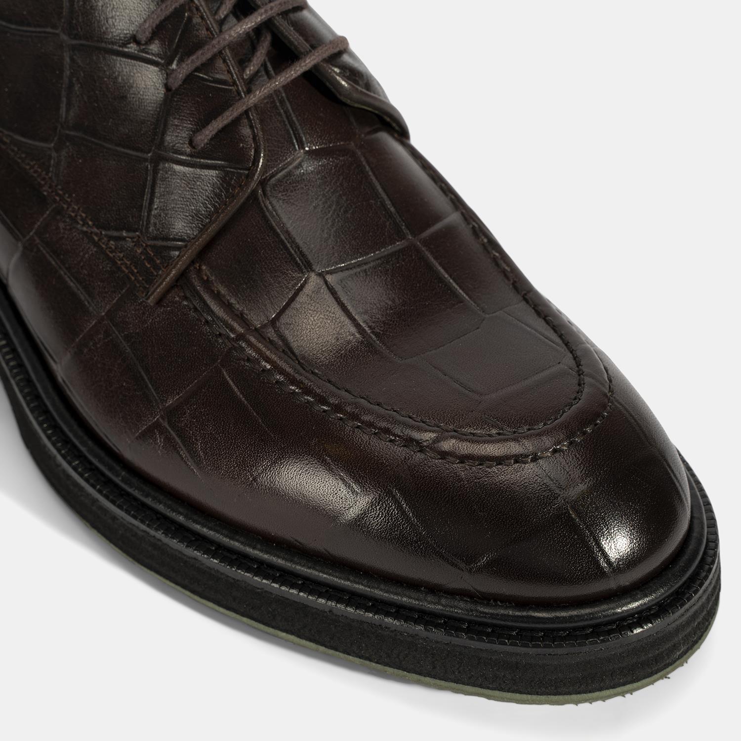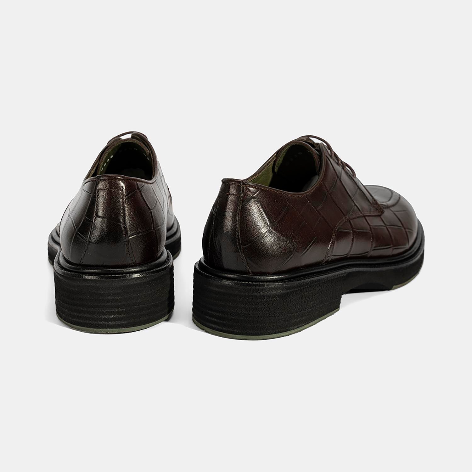 Erkek Kahve Bağcıklı Kroko Baskılı Deri Klasik Ayakkabı