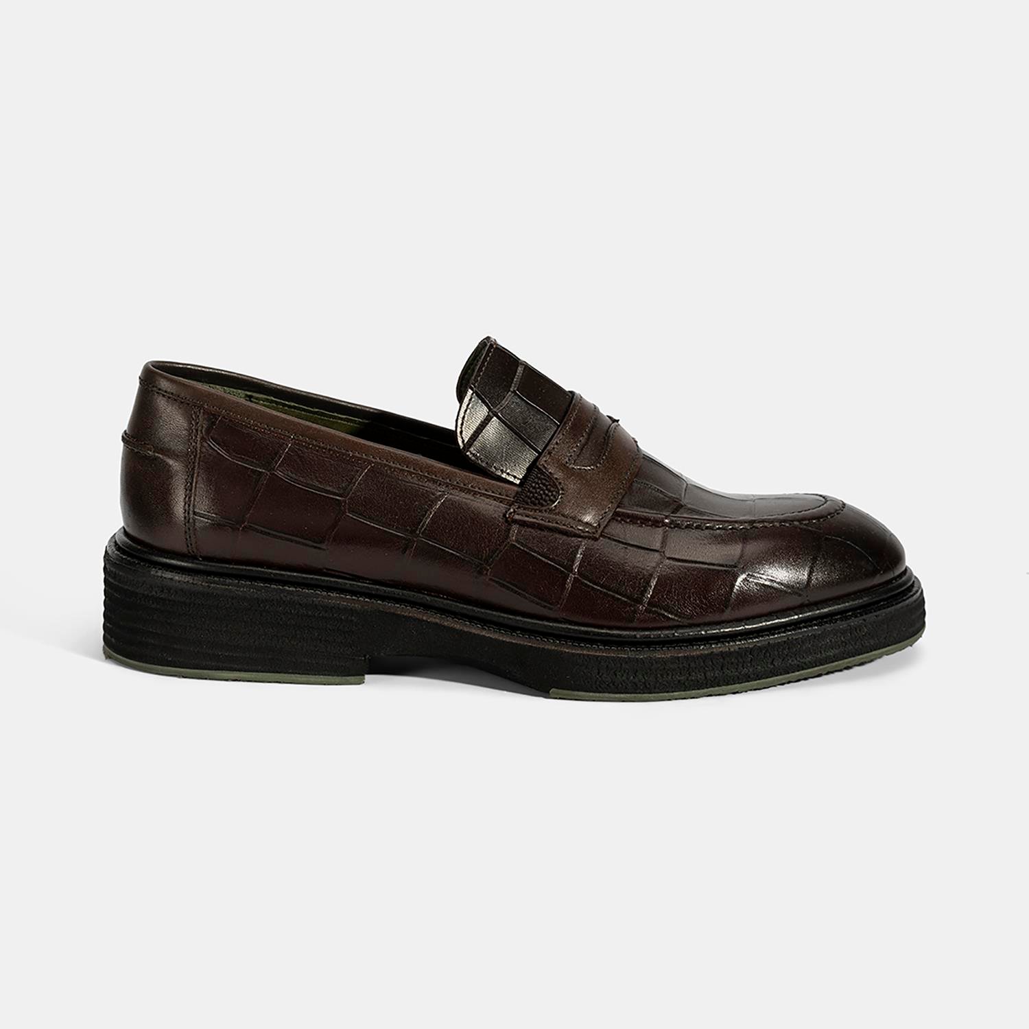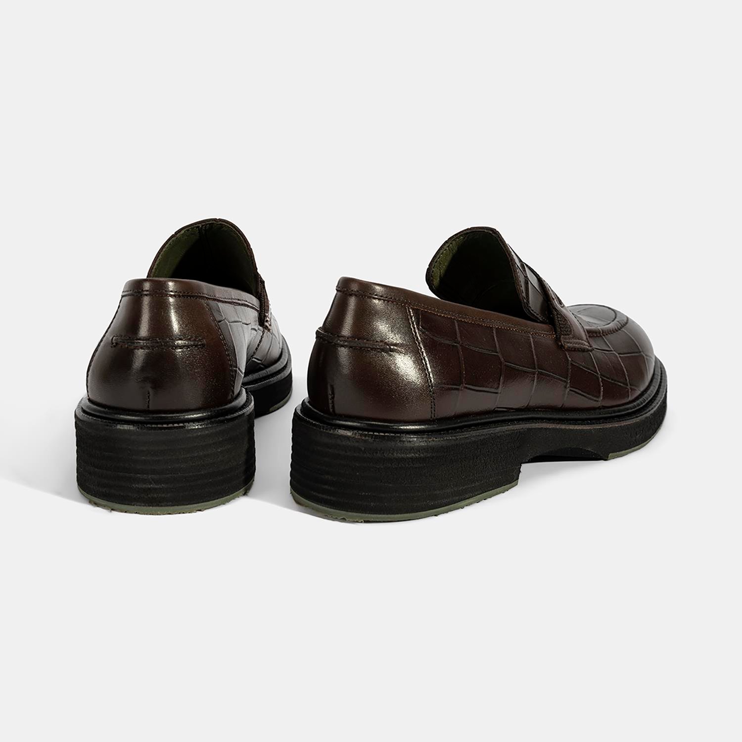 Erkek Kahve Kroko Baskılı Deri Loafer