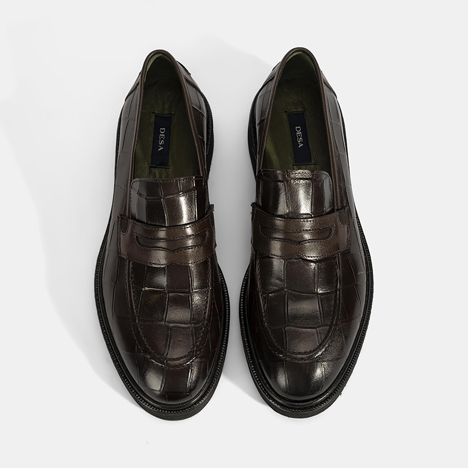 %100 deri, %100 deri astar ve mostralı, EVA tabanlı, kroko baskılı erkek loafer.
