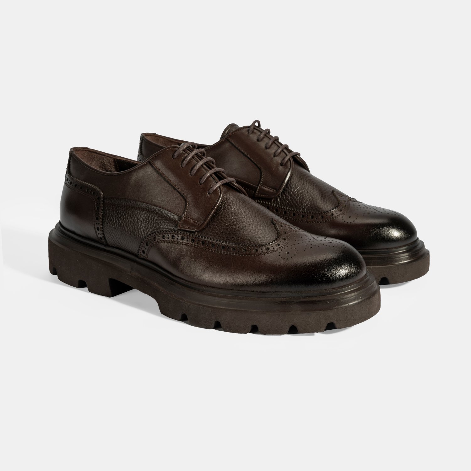 Erkek Kahve Bağcıklı Deri Günlük Ayakkabı