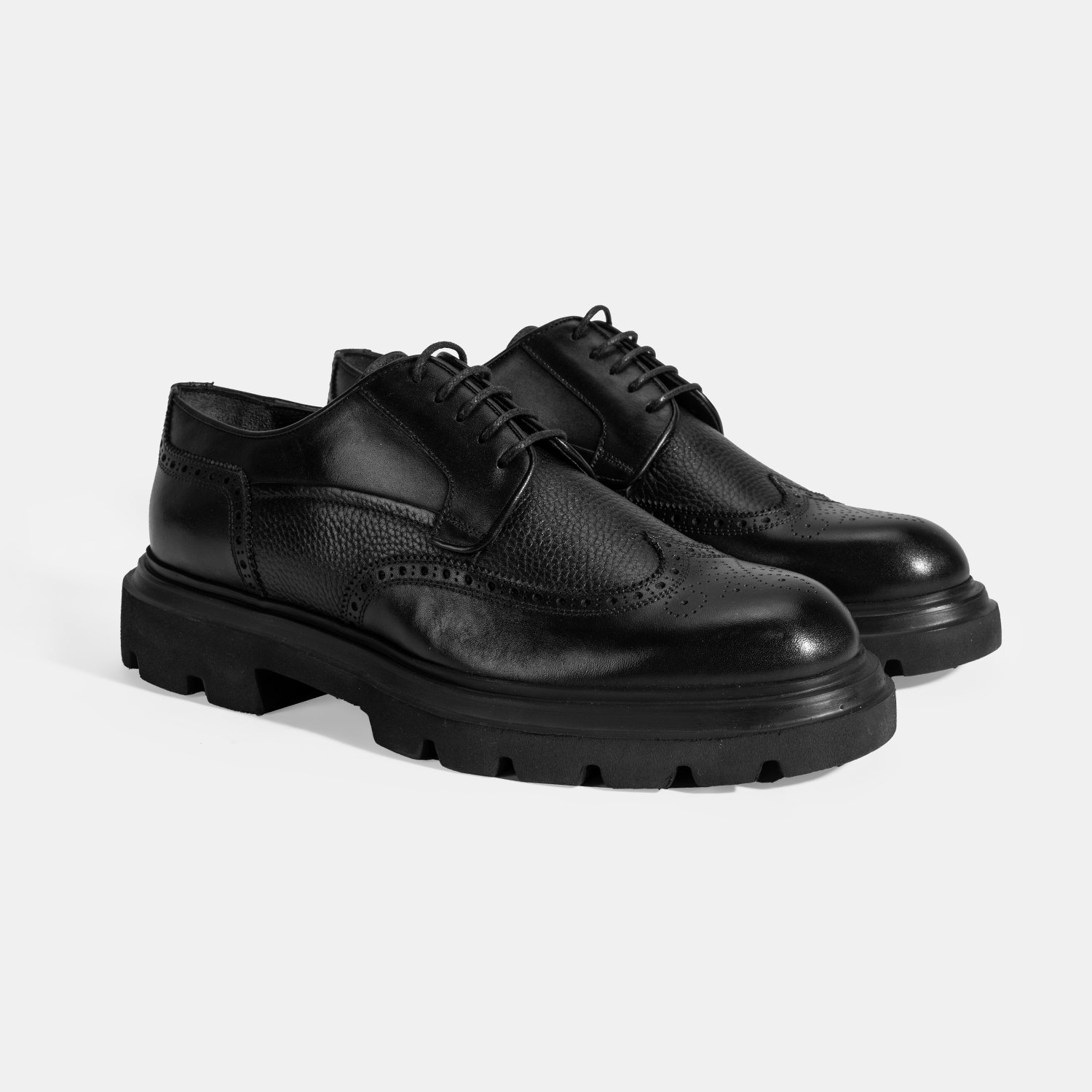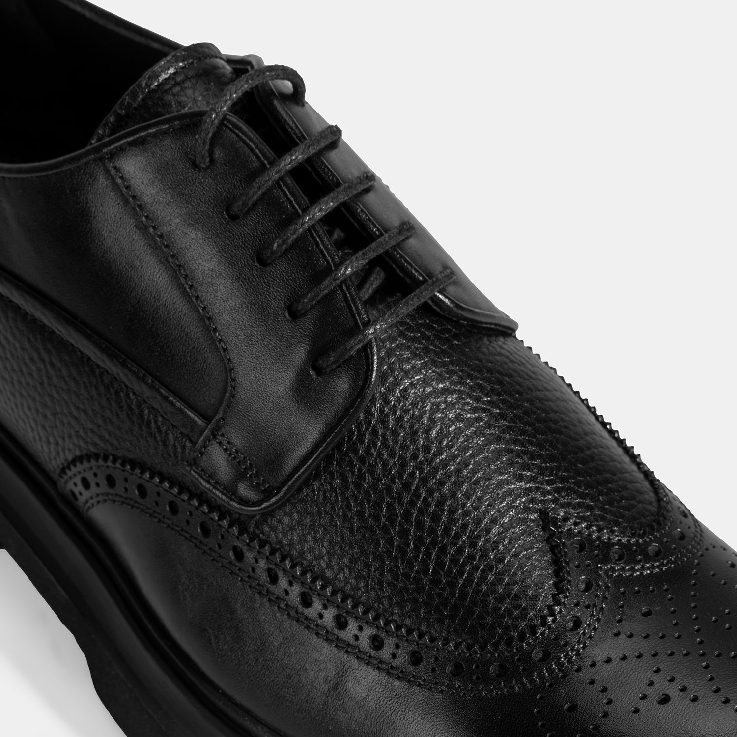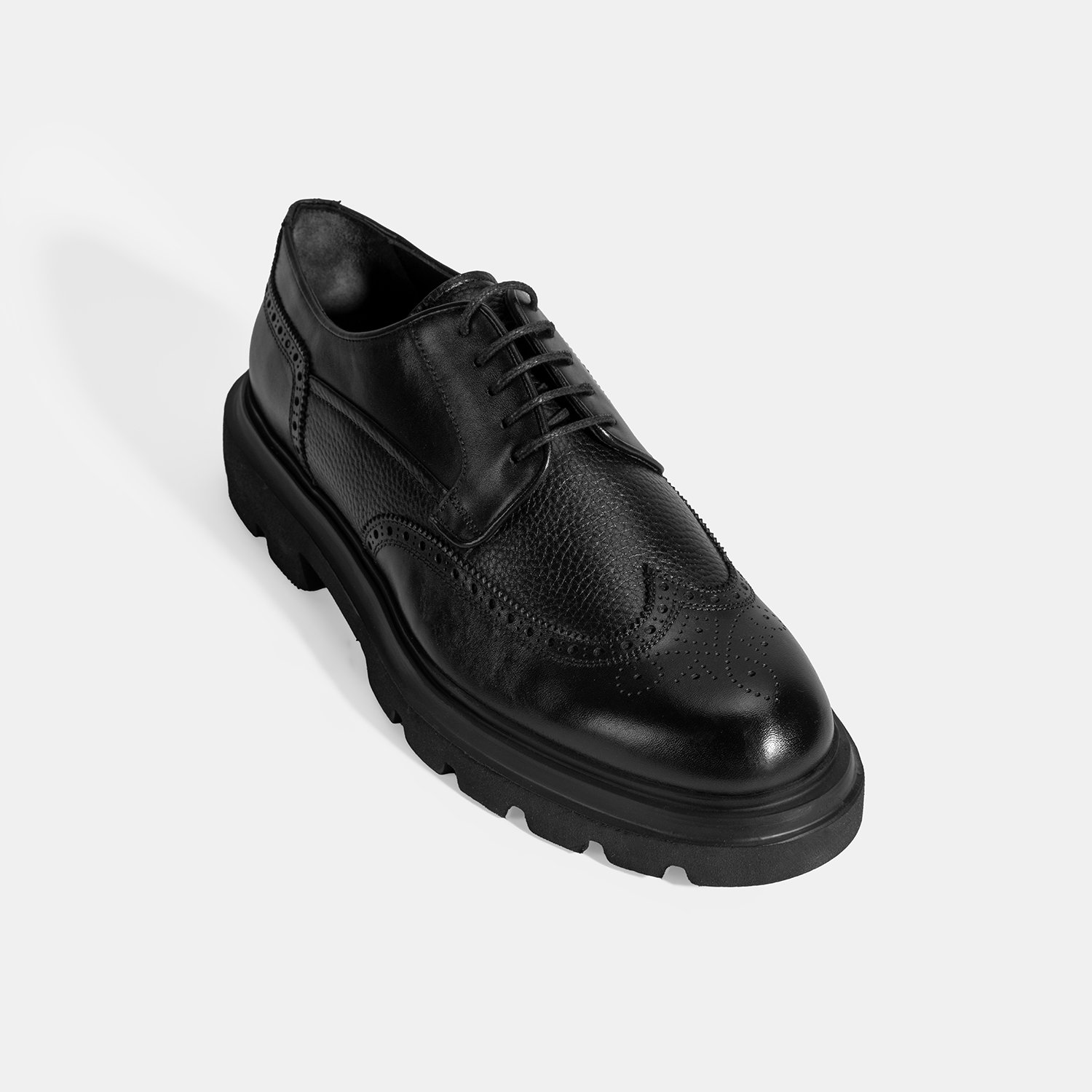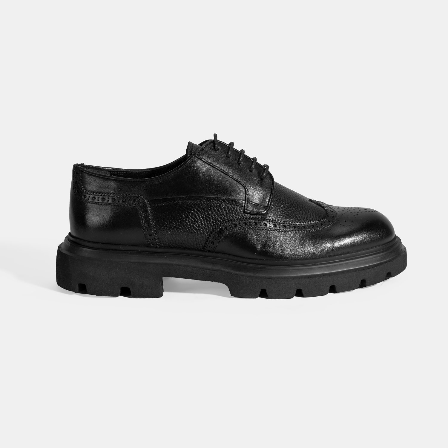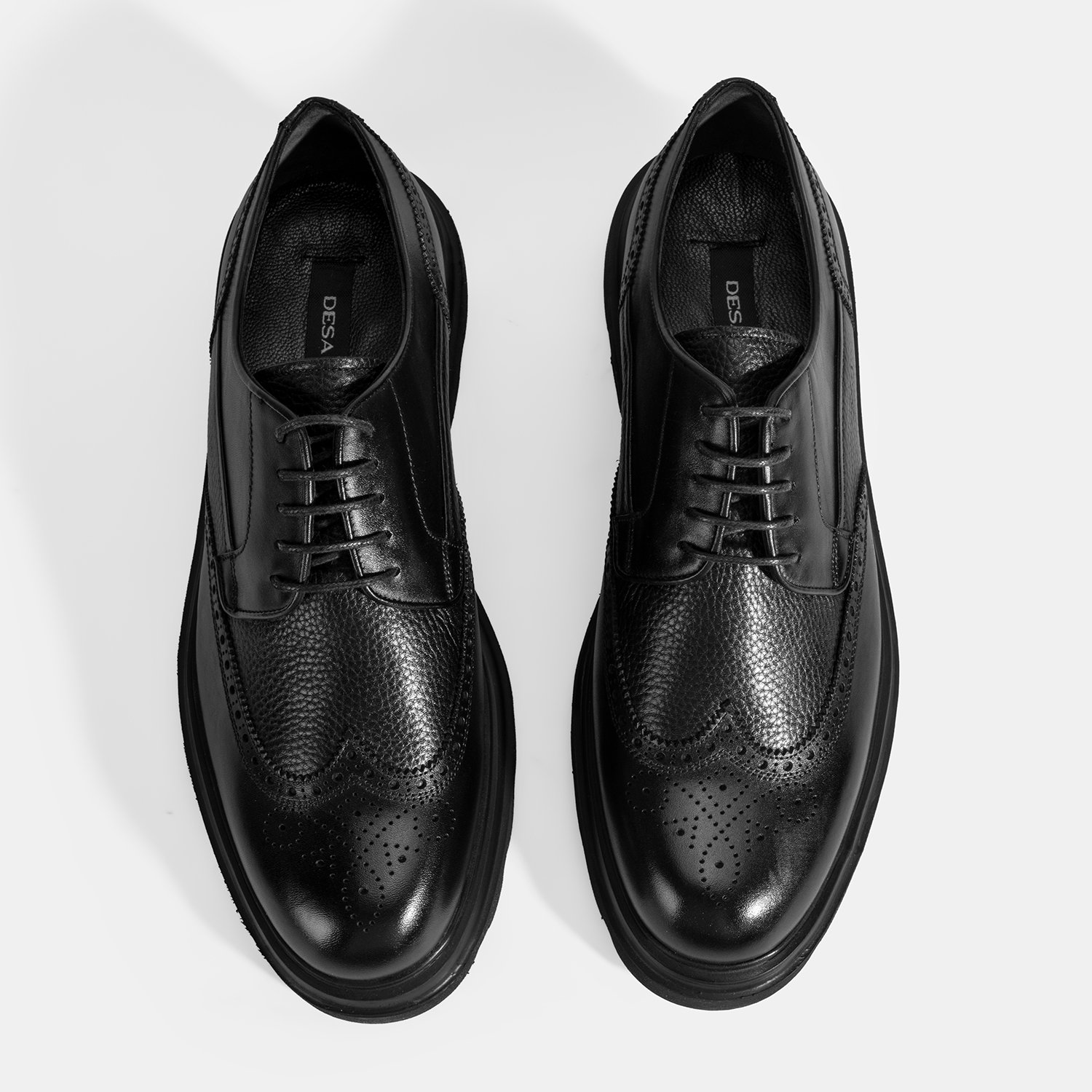 Erkek Siyah Bağcıklı Deri Günlük Ayakkabı
