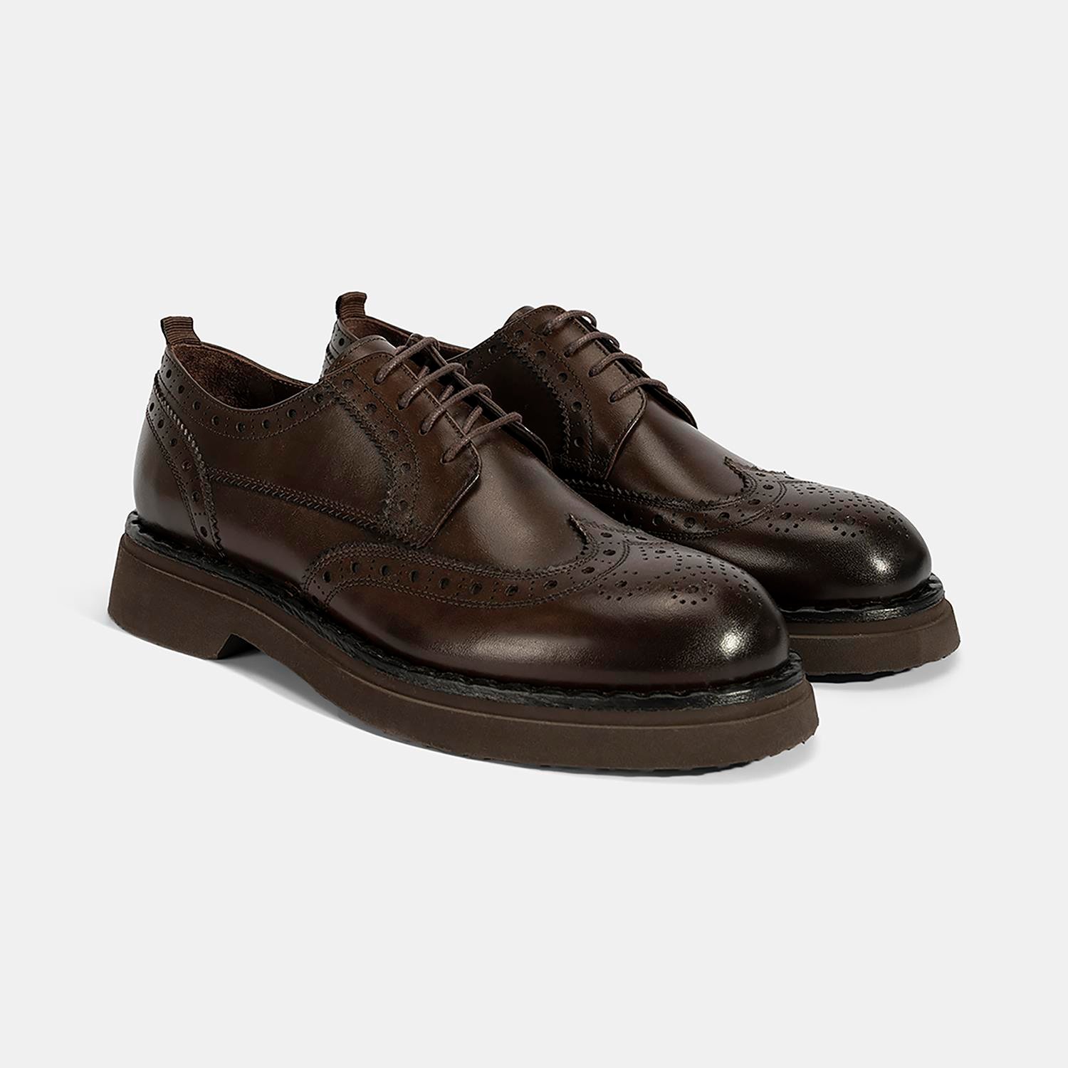 Erkek Kahve Bağcıklı Deri Klasik Ayakkabı