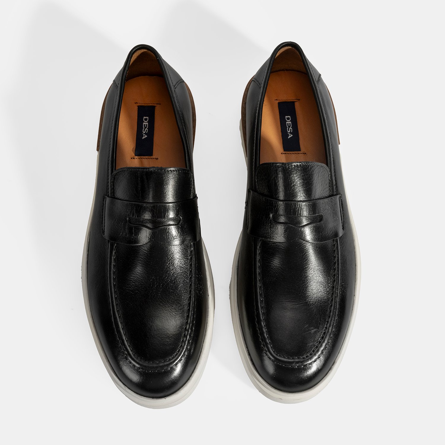 %100 deri, %100 deri astar ve mostra, bantlı, EVA tabanlı erkek loafer.