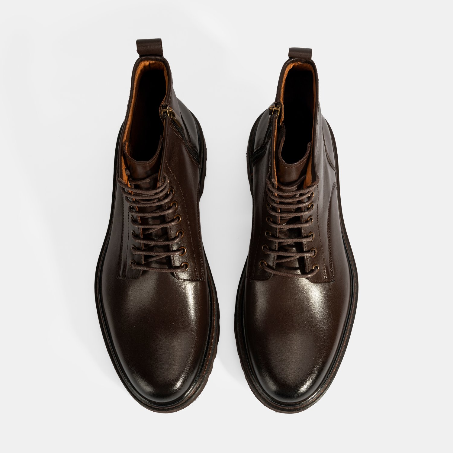 Erkek Kahve Bağcıklı Deri Postal Bot