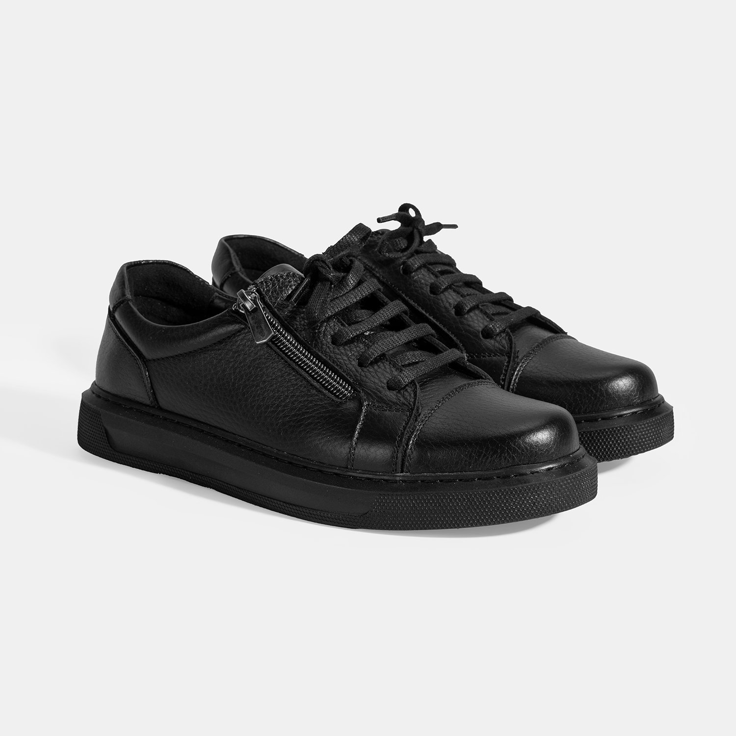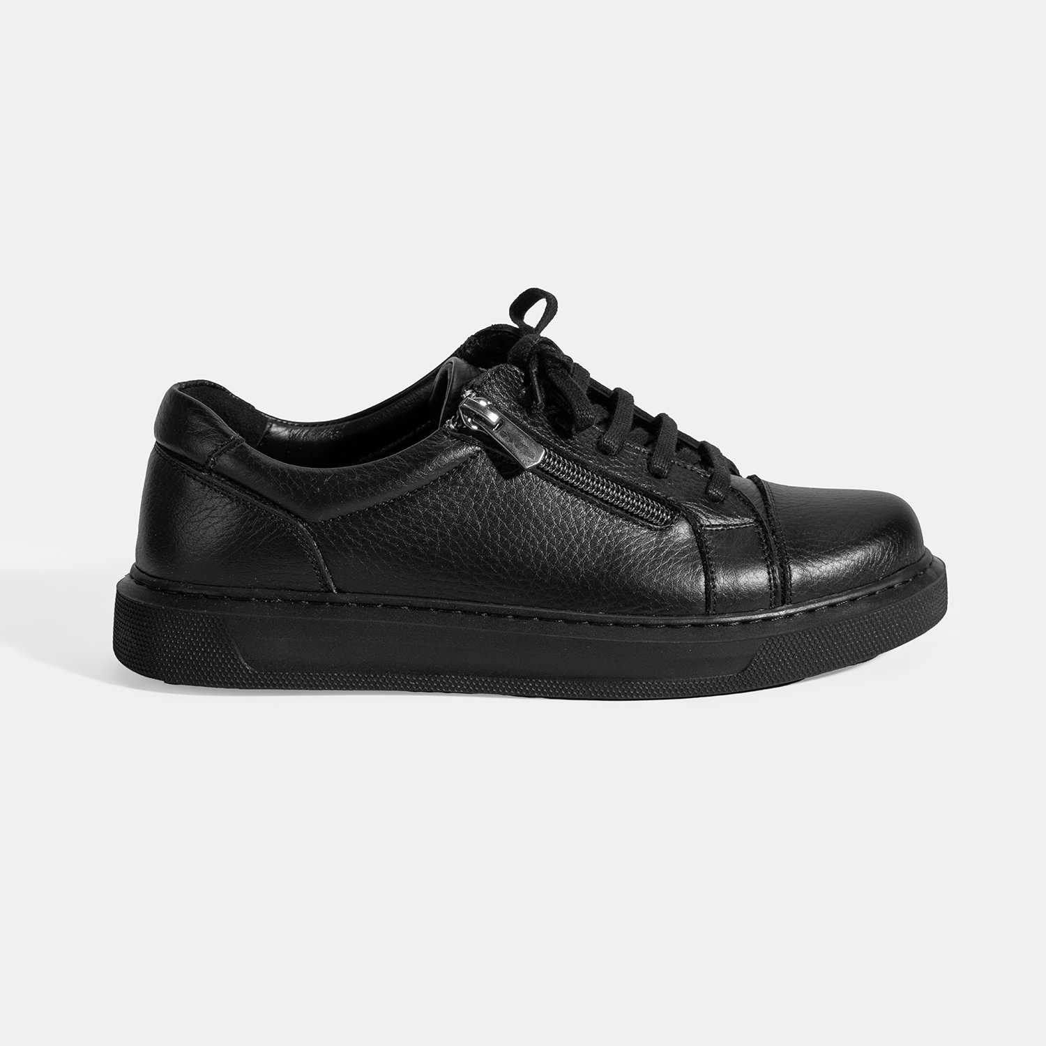 Kadın Siyah Bağcıklı Fermuar Detaylı Deri Günlük Ayakkabı