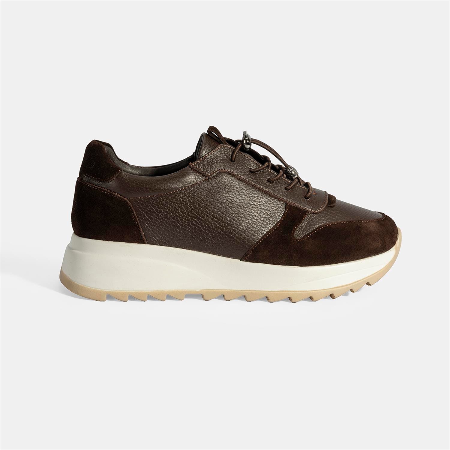 Kadın Kahve Bağcıklı Deri Spor Ayakkabı