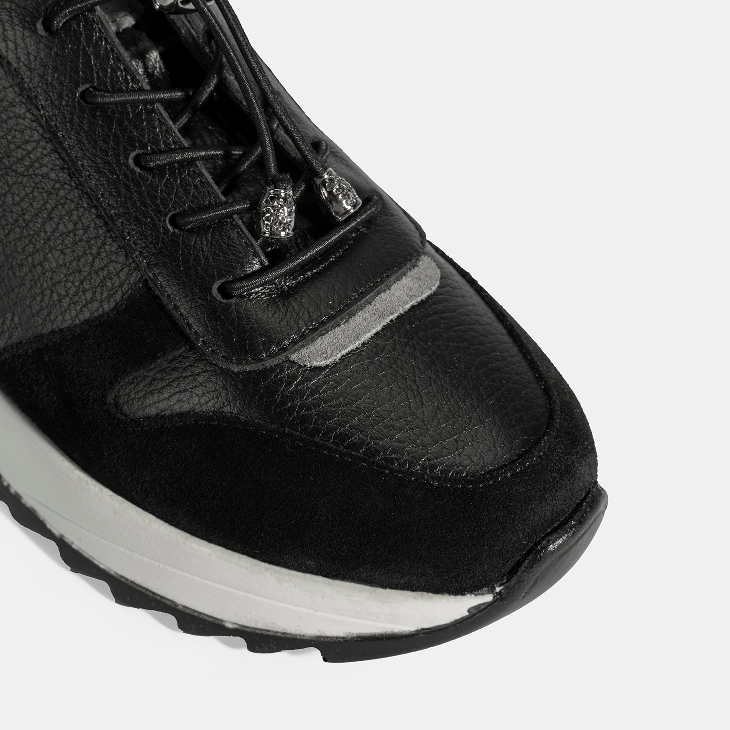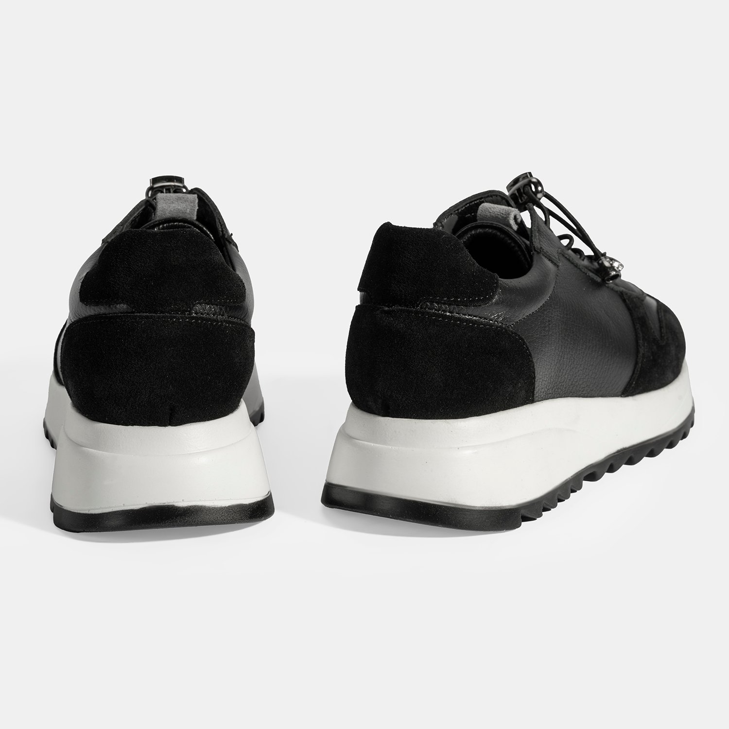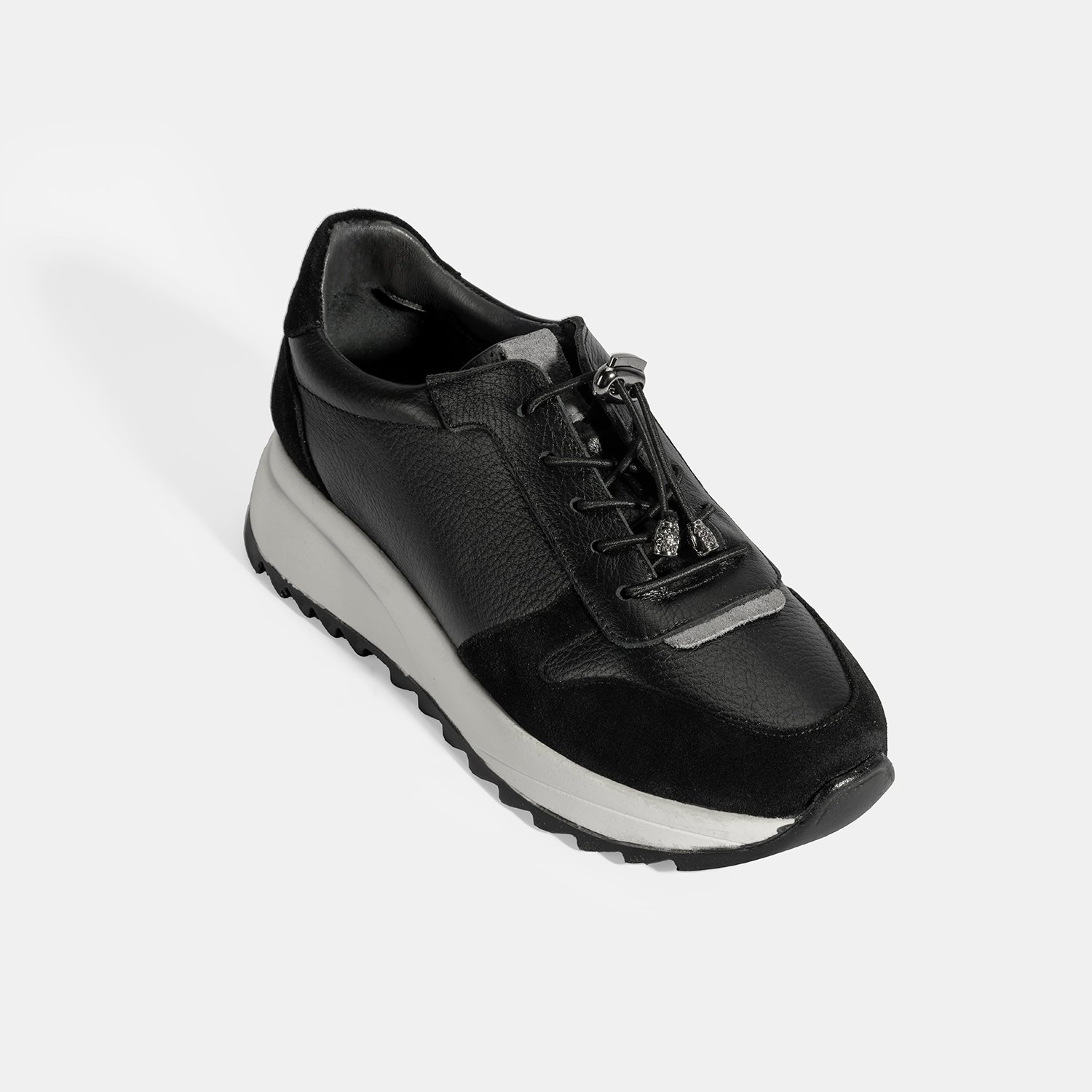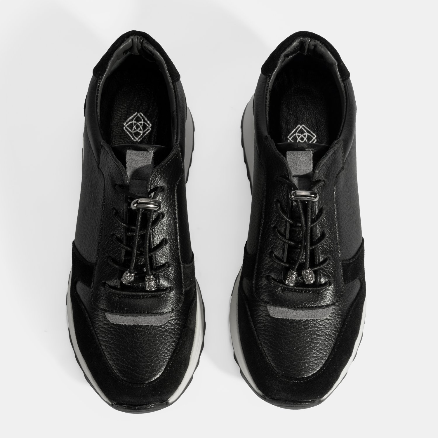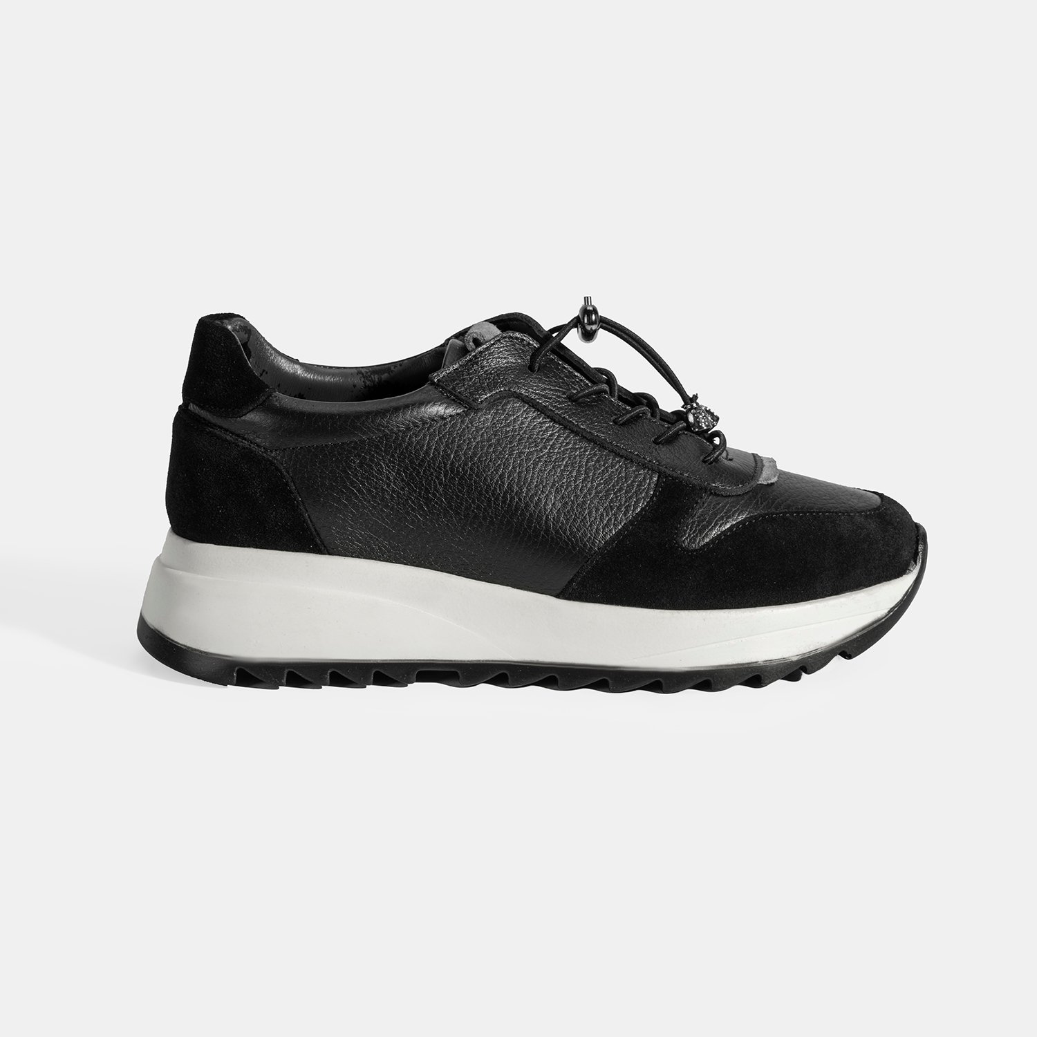 Kadın Siyah Bağcıklı Deri Spor Ayakkabı
