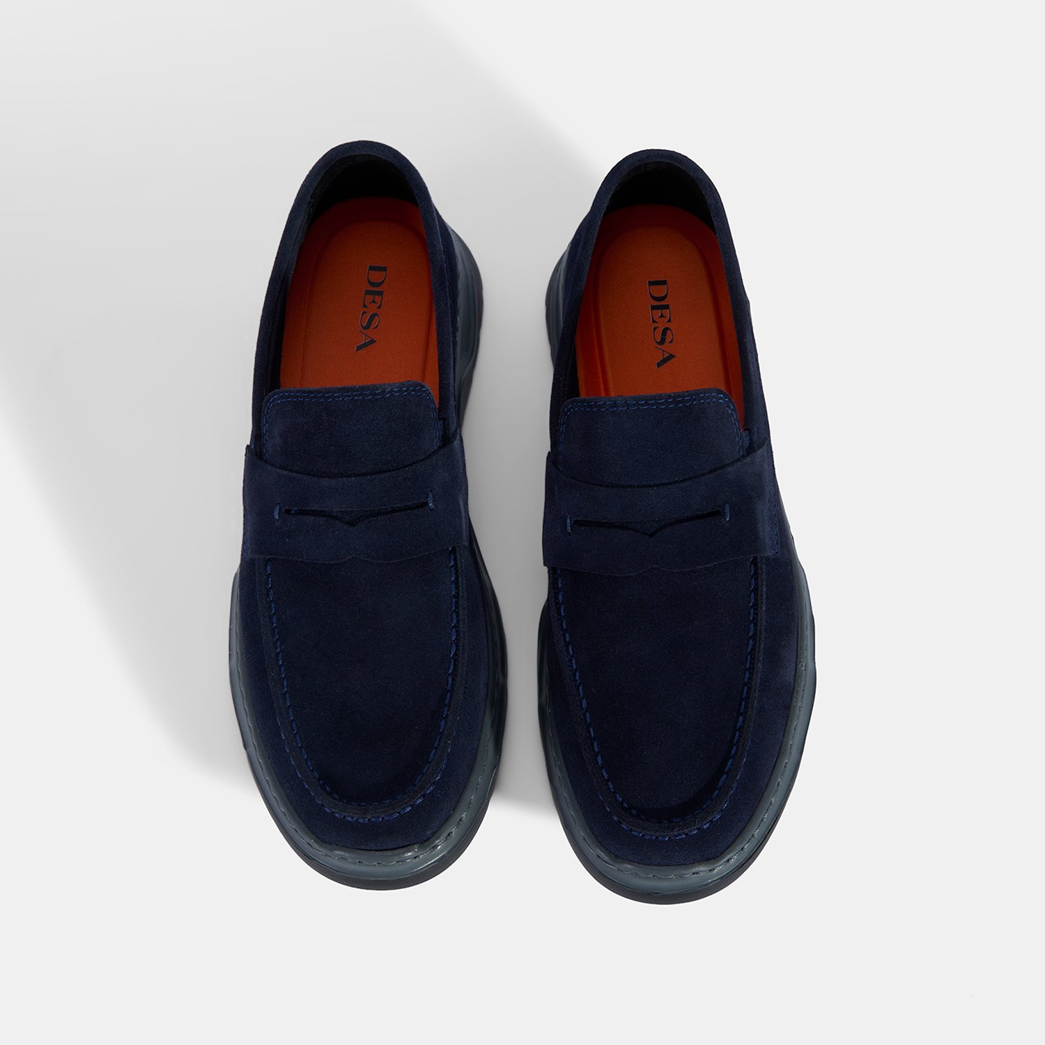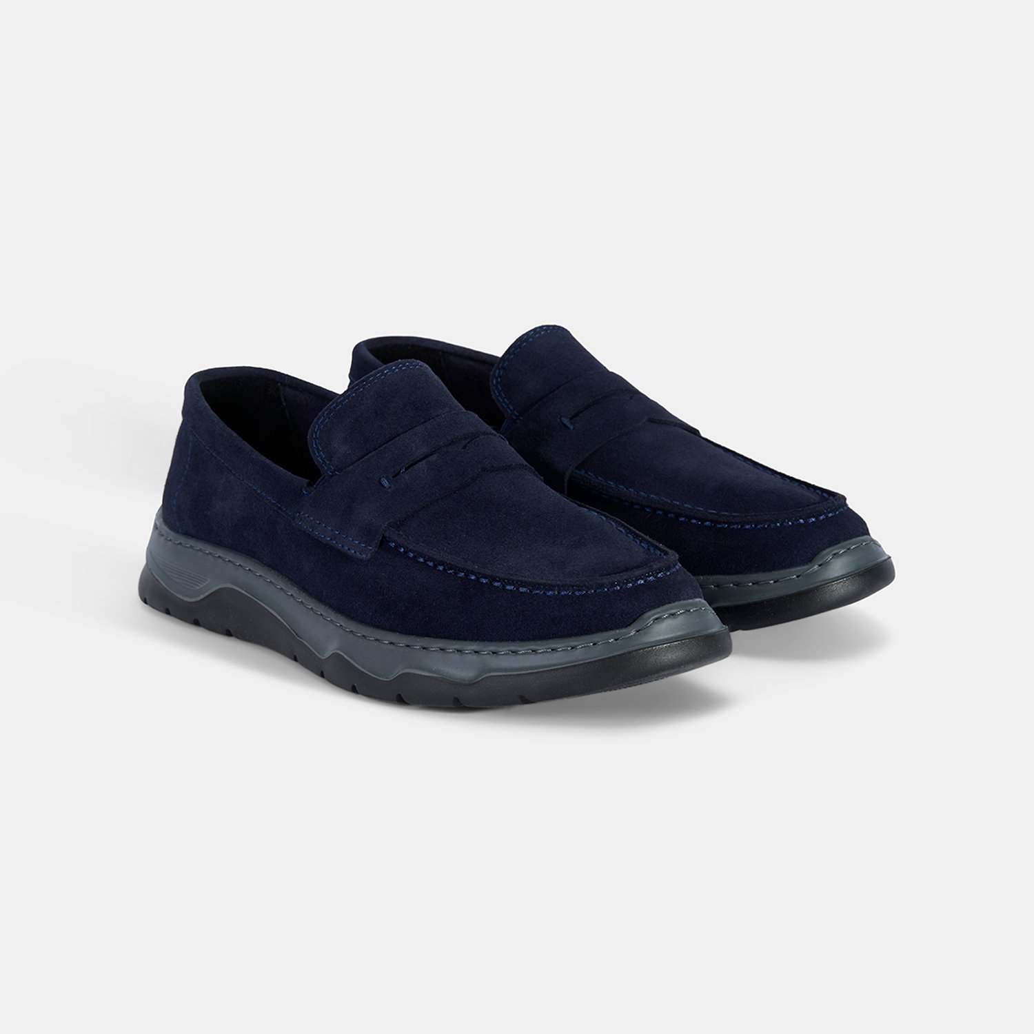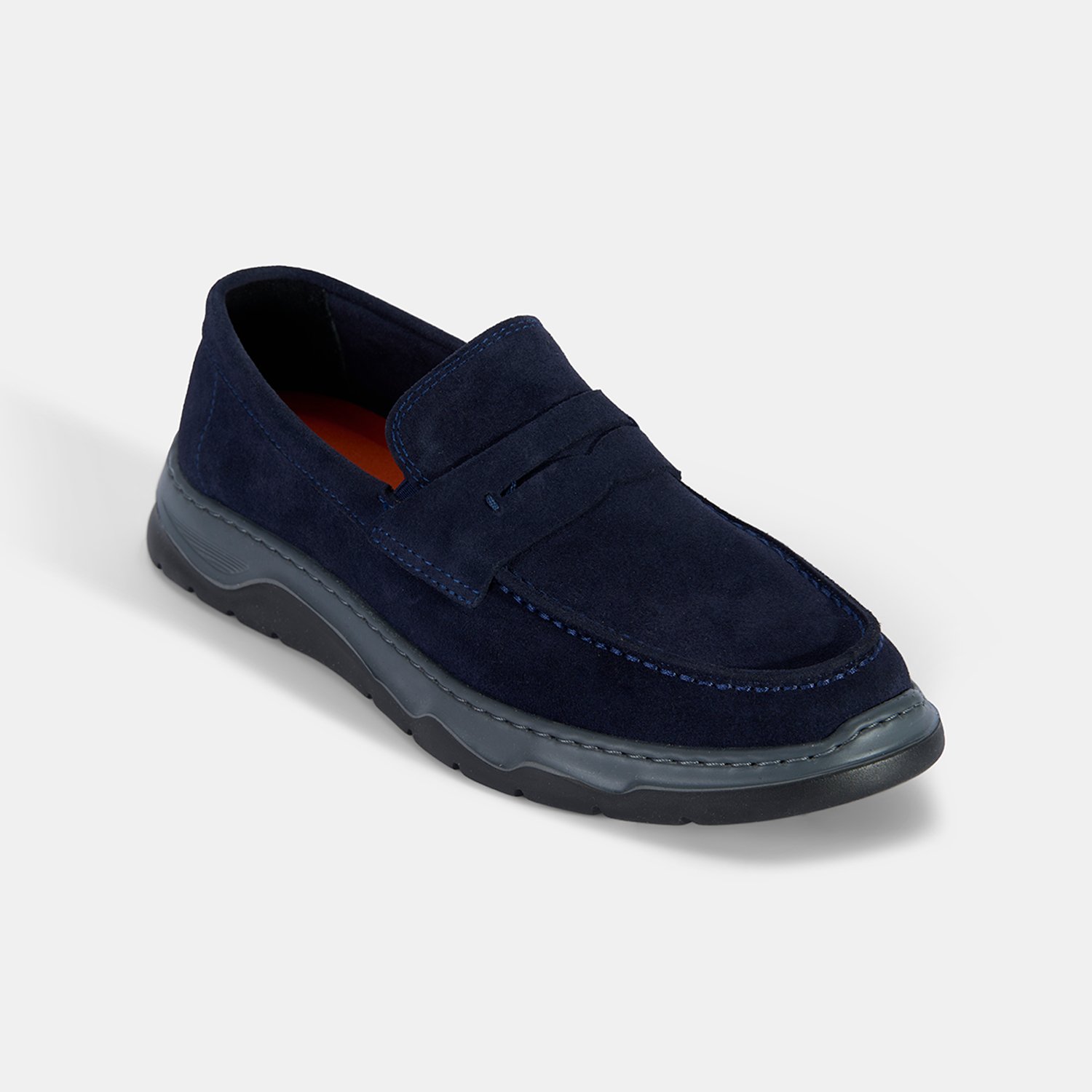 Erkek Lacivert Kalın Tabanlı Süet Deri Loafer