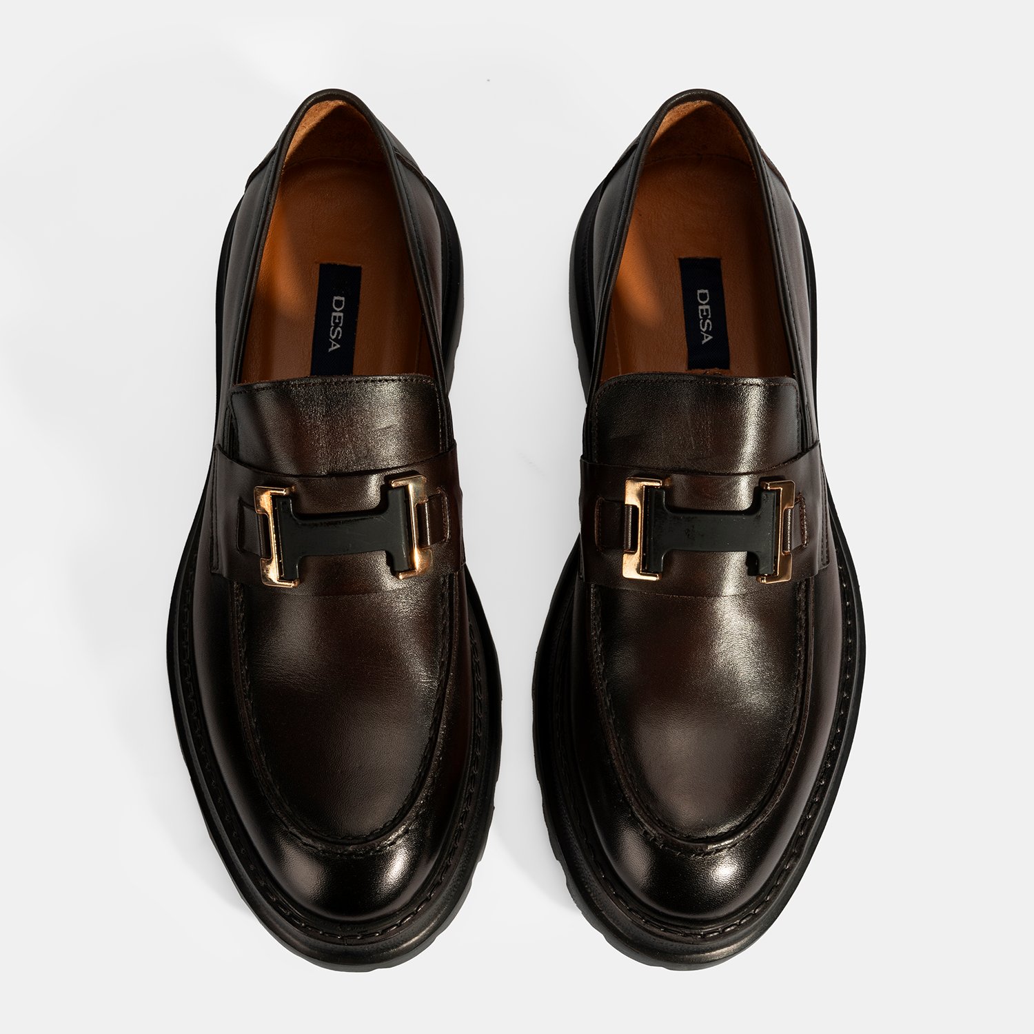 Erkek Kahve Metal Toka Detaylı Deri Loafer