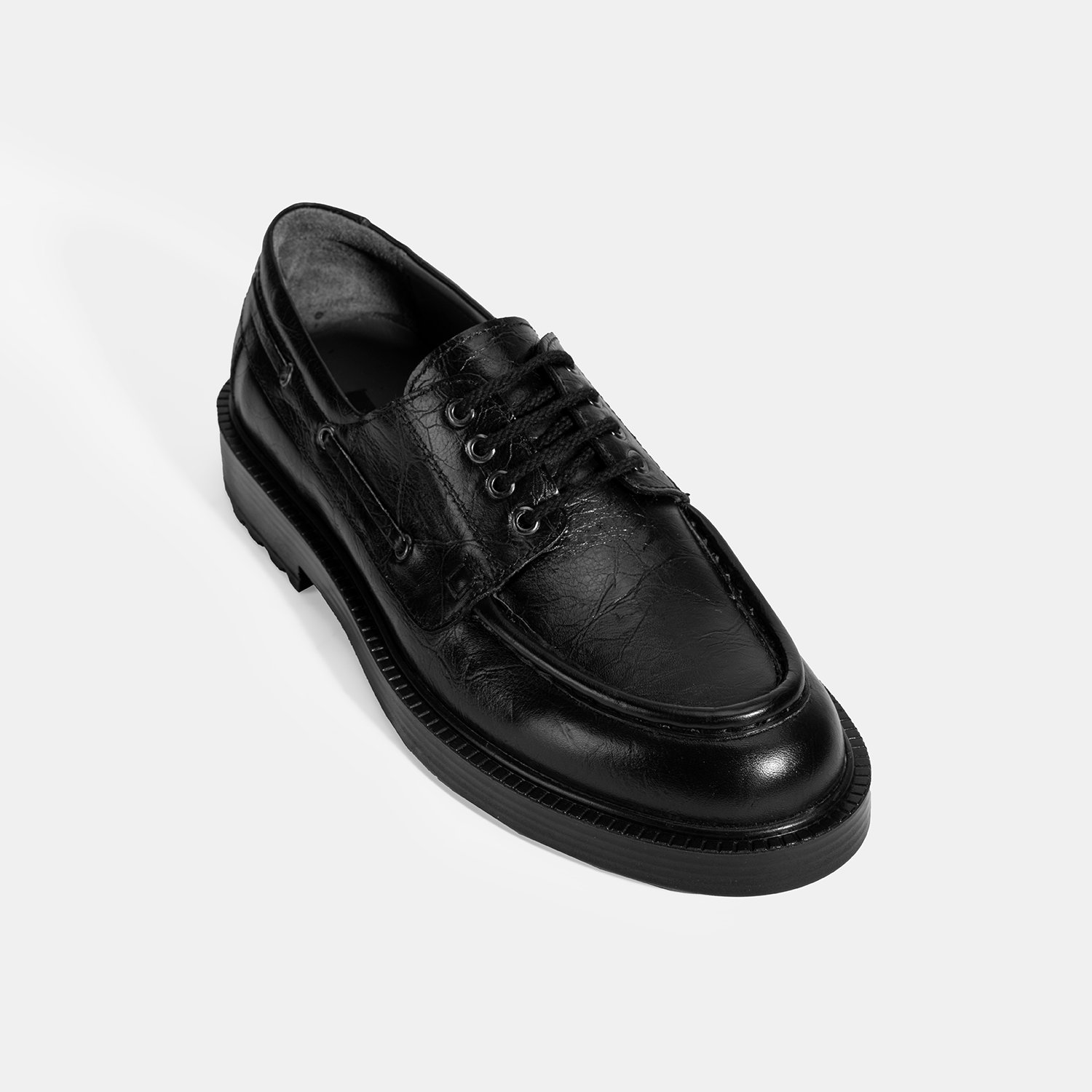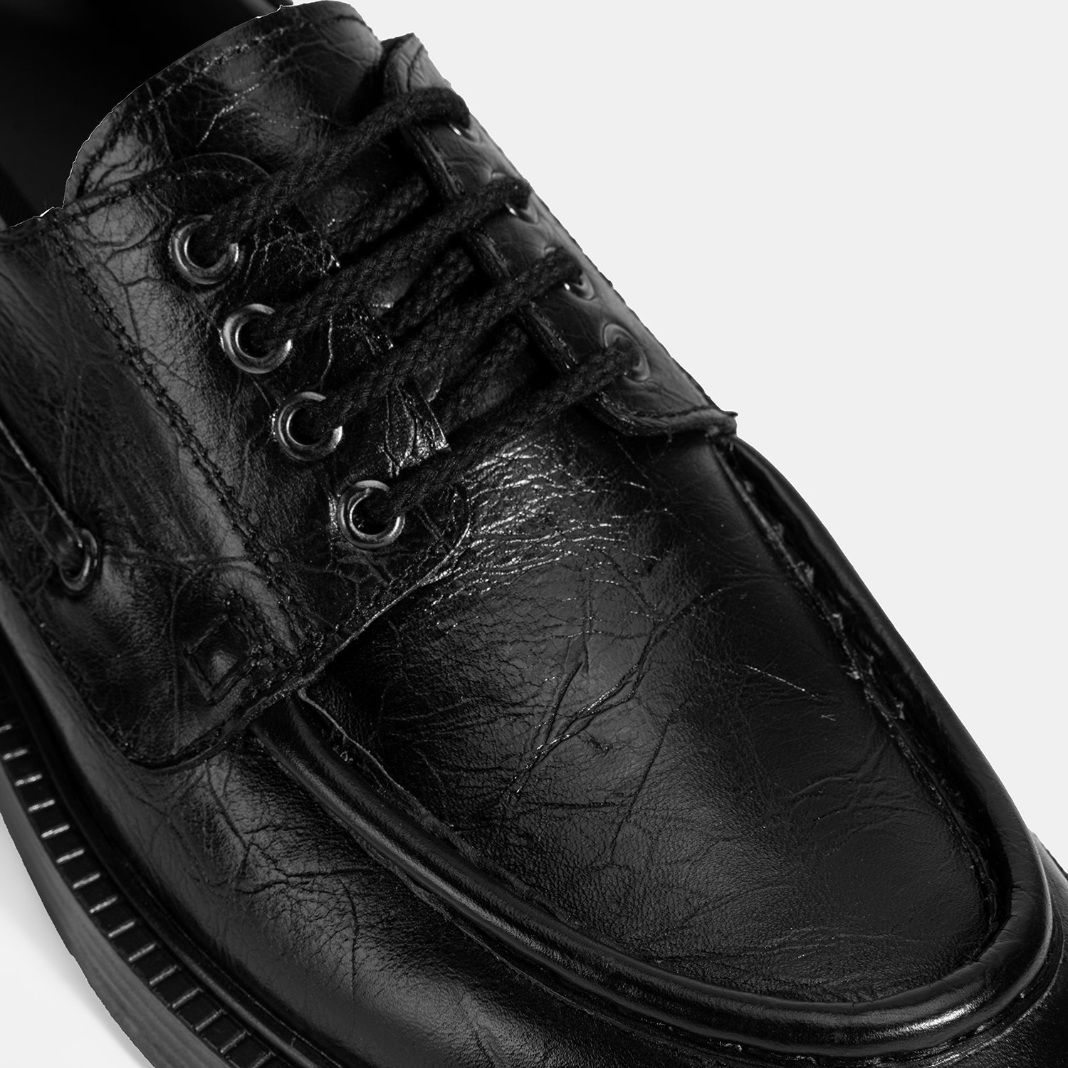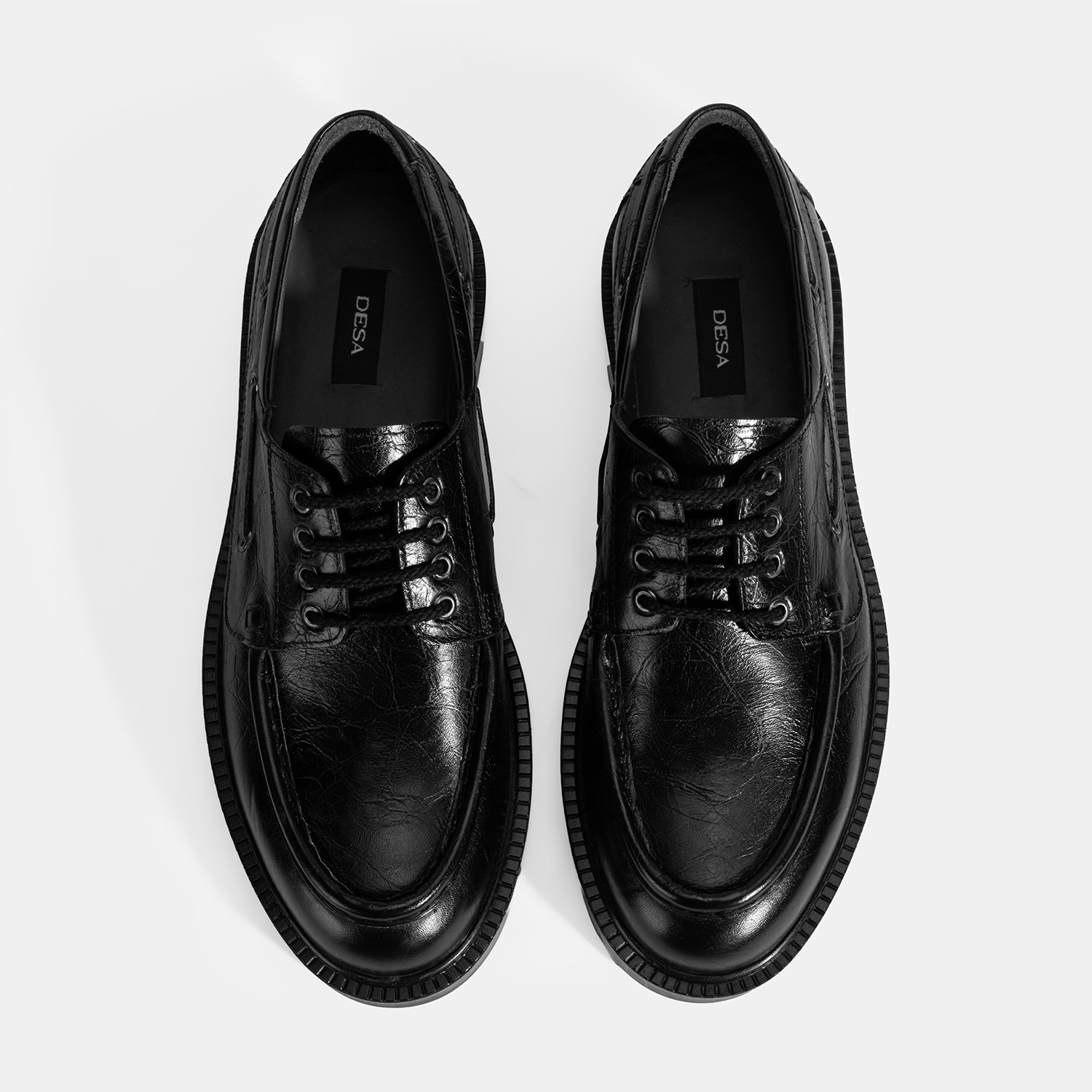 Erkek Siyah Bağcıklı Deri Günlük Ayakkabı