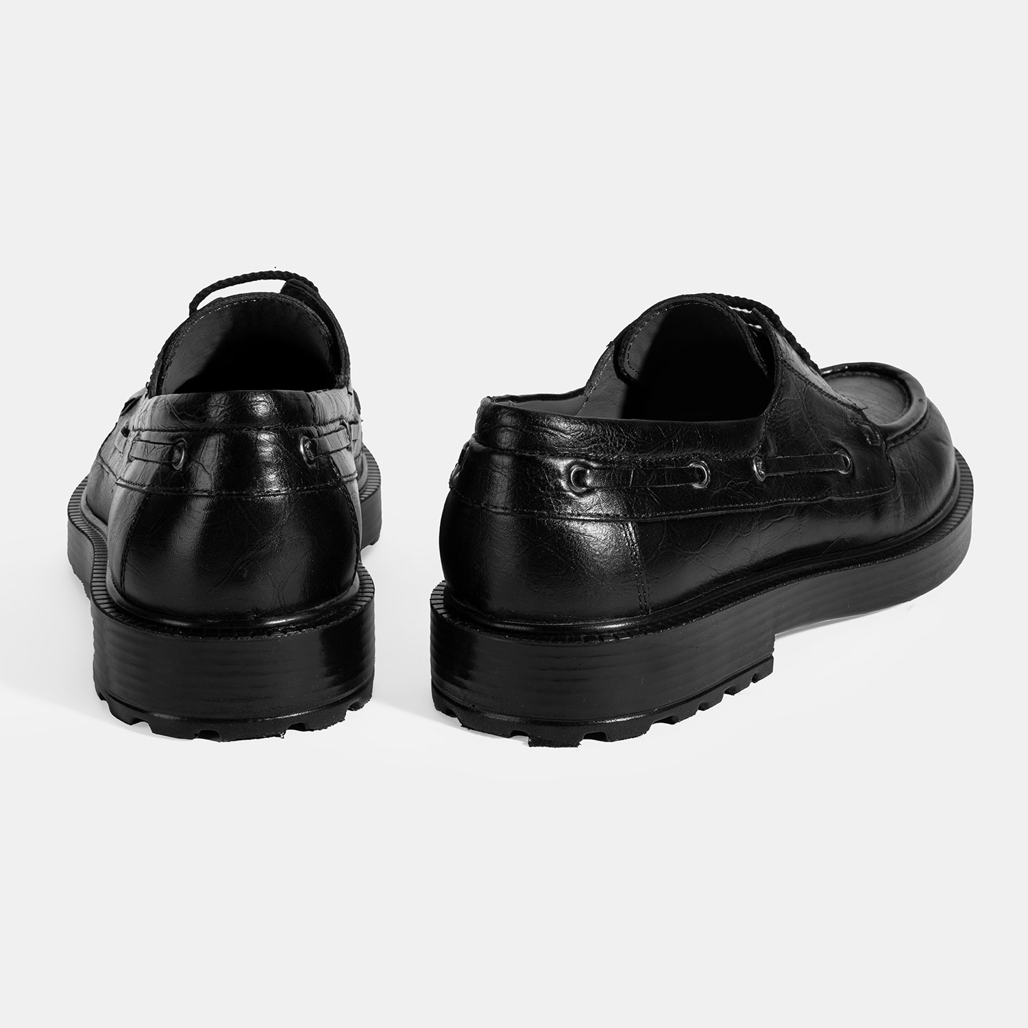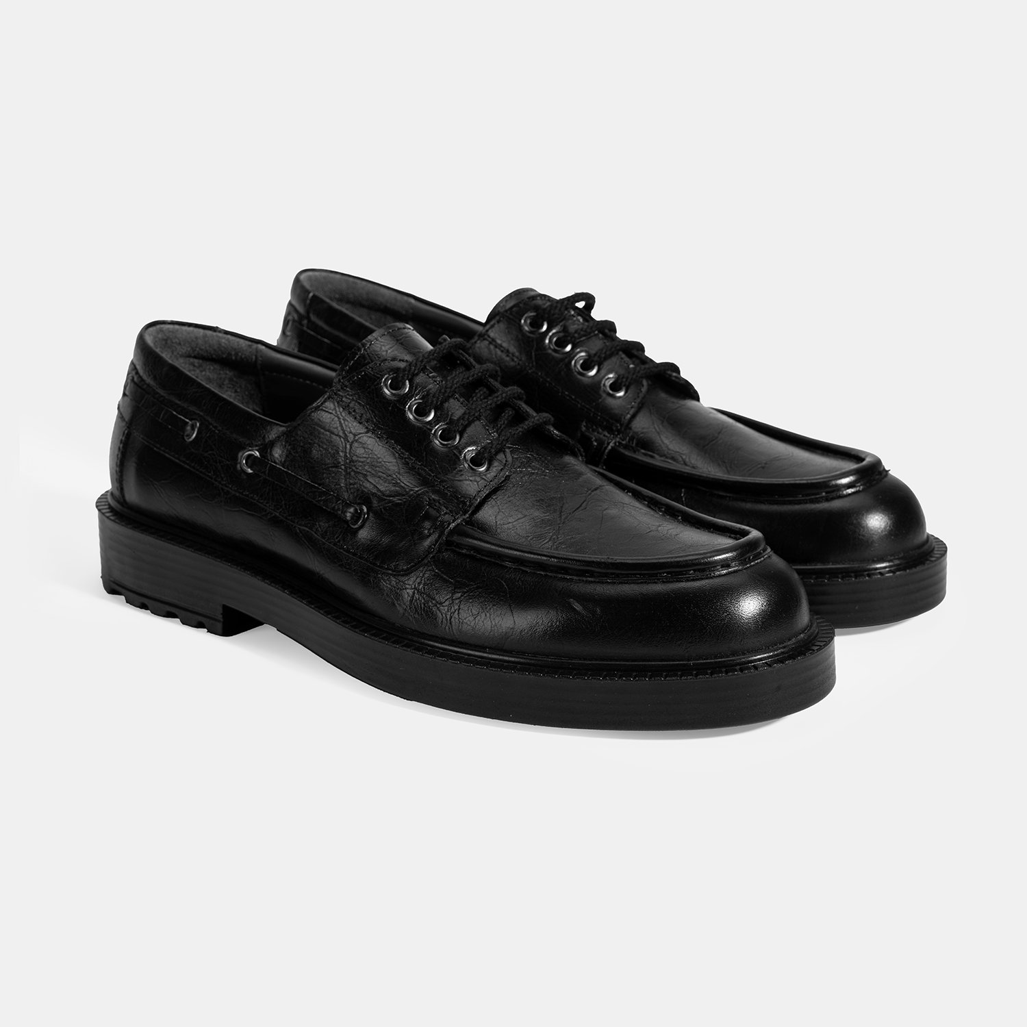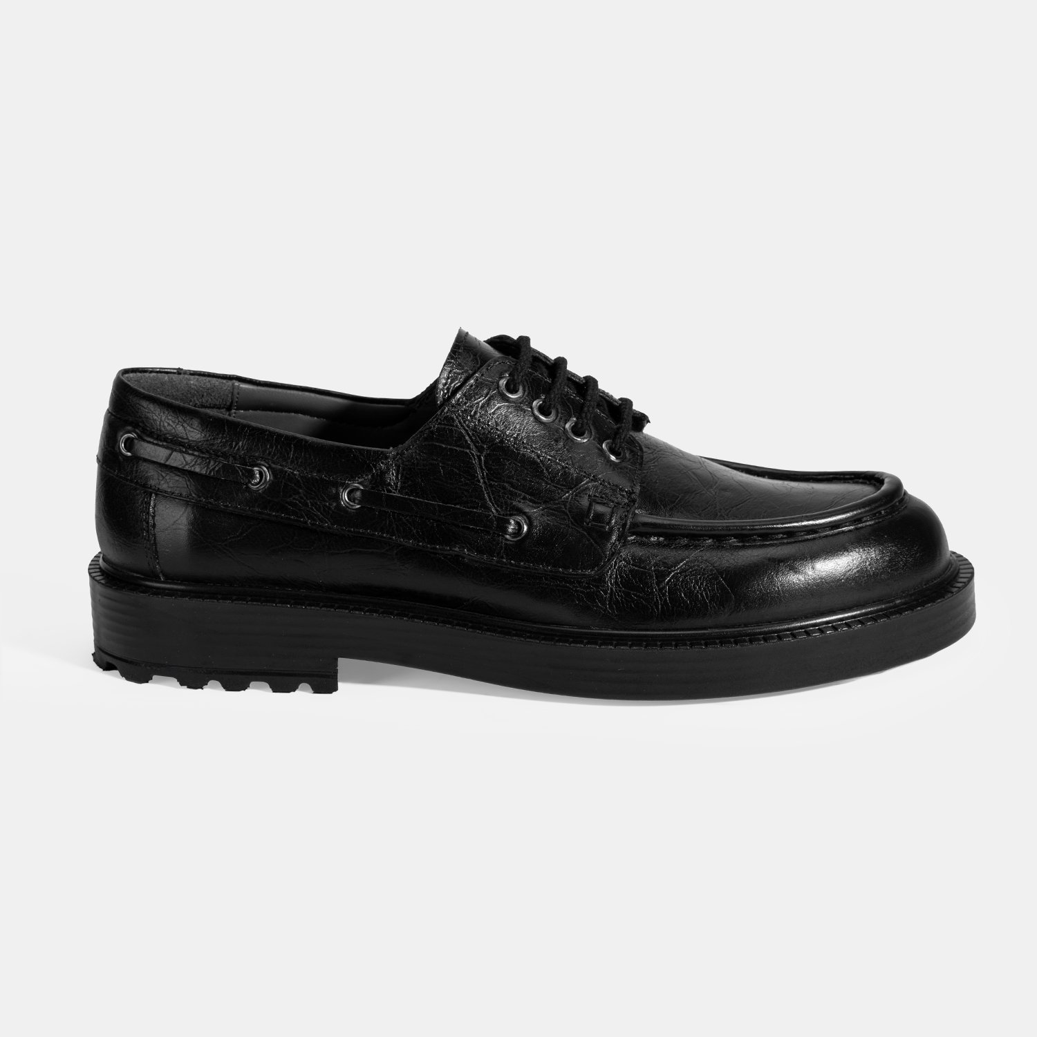 Erkek Siyah Bağcıklı Deri Günlük Ayakkabı